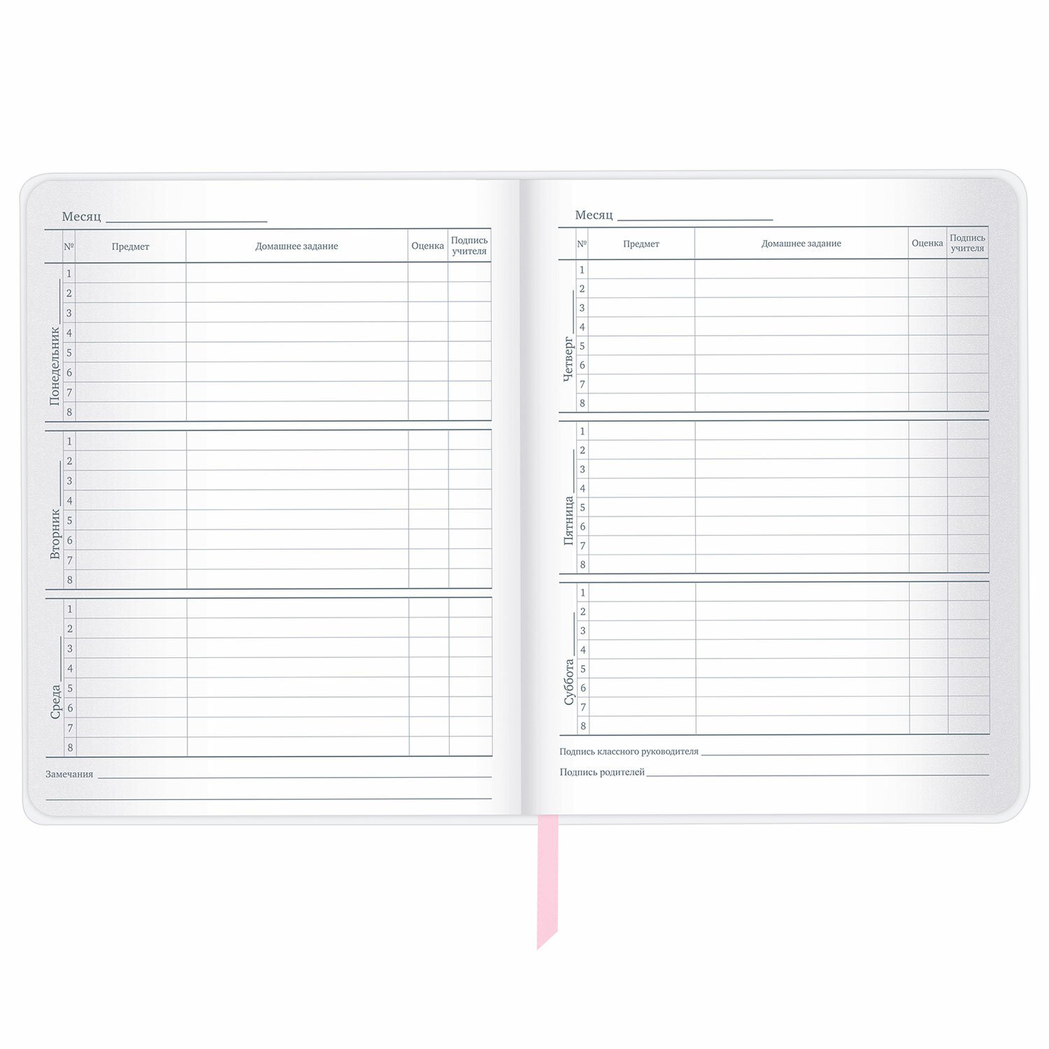 Предназначен для учащихся 1-11 классов. Твердая обложка из экокожи надежно защищает бумагу и долго сохраняет привлекательный внешний вид. Дневник снабжен фигурным магнитным клапаном, благодаря чему он не раскроется в портфеле или рюкзаке и листы не помнутся. Внутренний блок содержит 48 листов и состоит из офсетной белой бумаги плотностью 70 г/м2. В справочном материале собраны основные подсказки для учащихся. Для удобства пользования дневник снабжен закладкой-ляссе.
