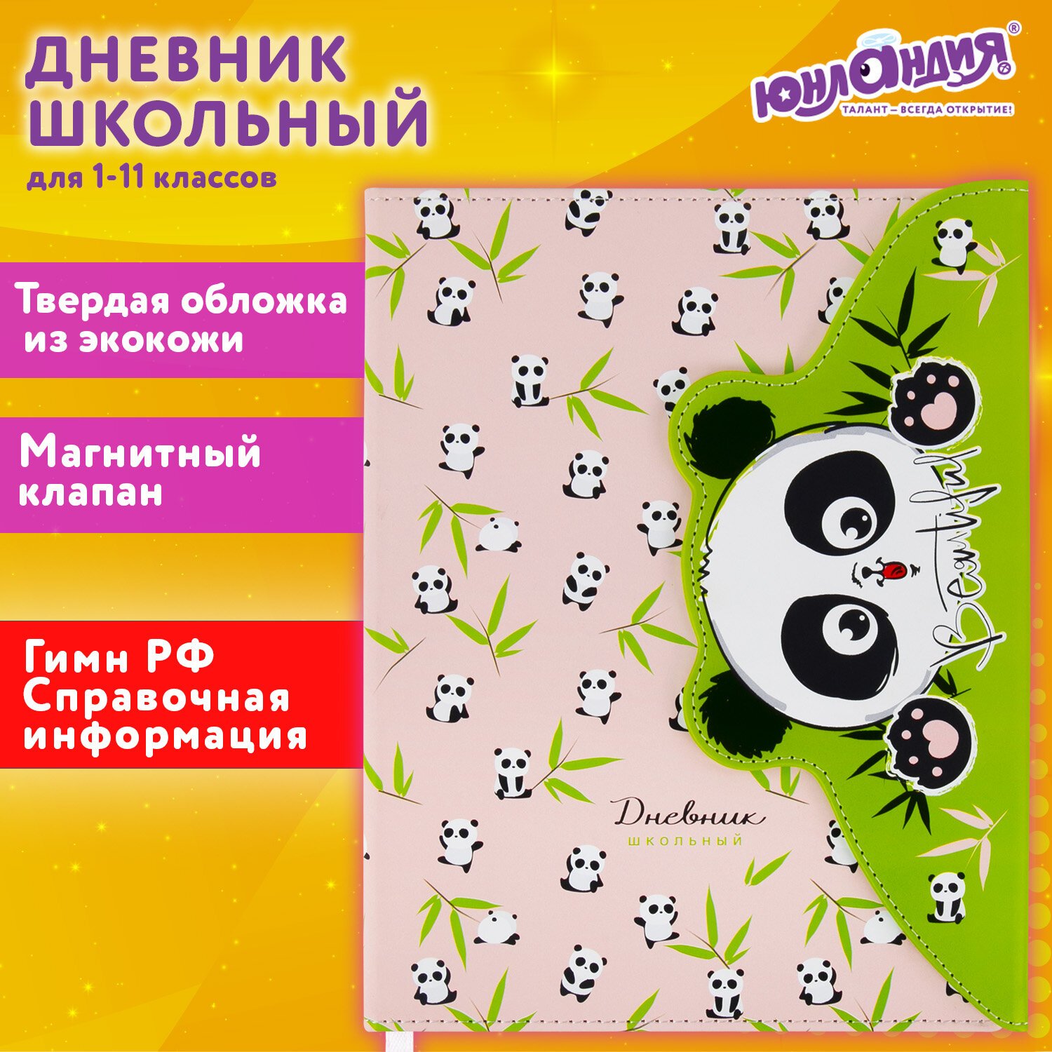Дневник 1-11 класс 48 л., кожзам (твердая), магнитный клапан, ЮНЛАНДИЯ, "Панда", 106563