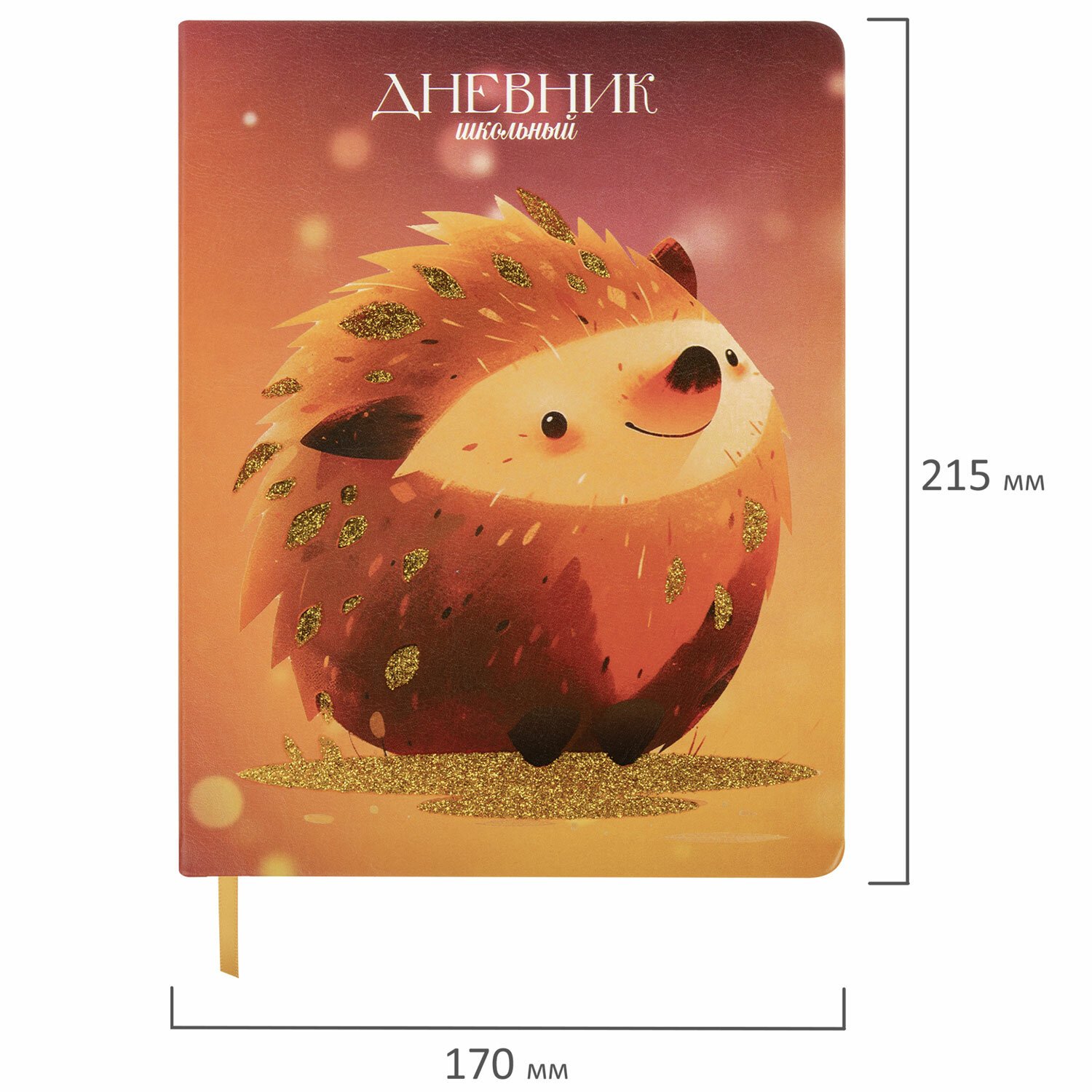 Дневник 1-11 класс 48 л., кожзам (твердая), печать, глиттер, ЮНЛАНДИЯ, "Ежик", 106927