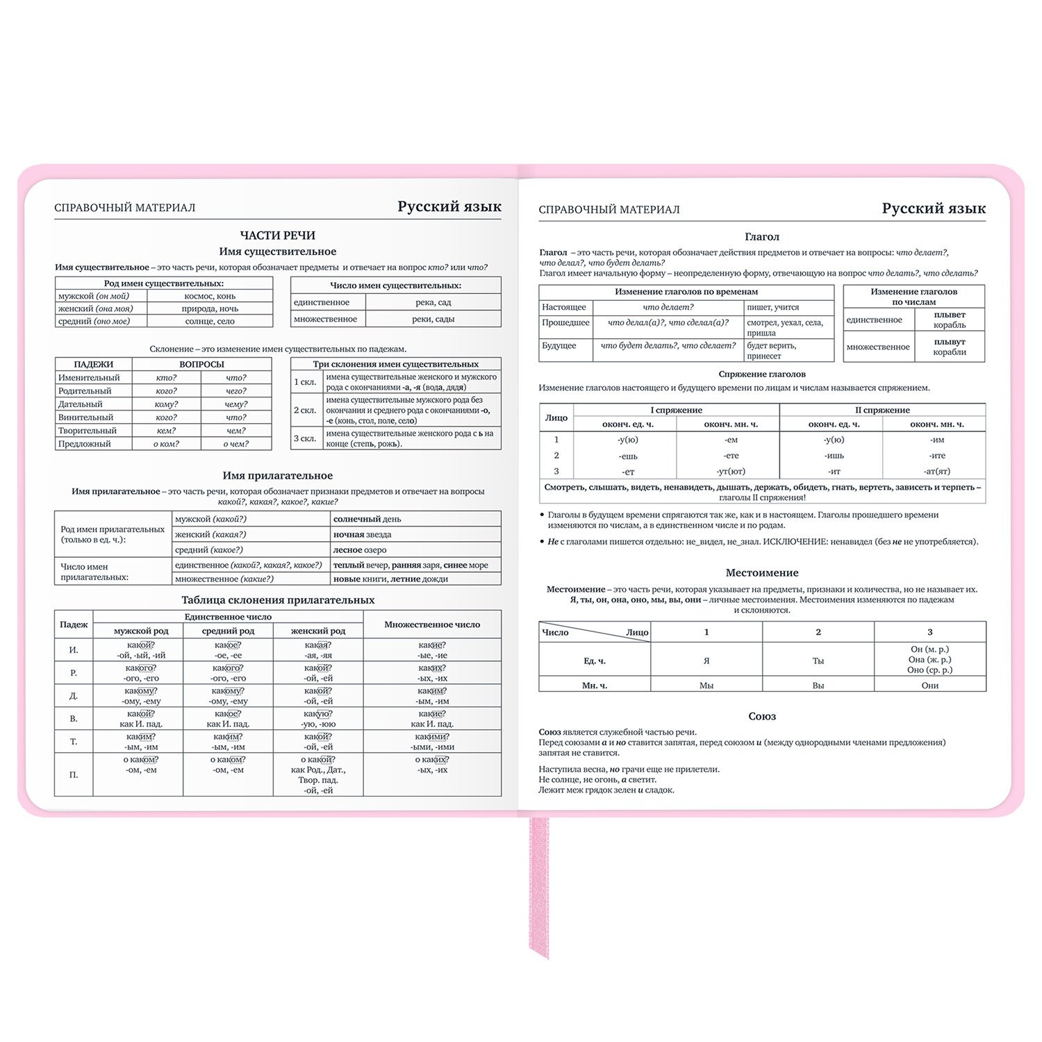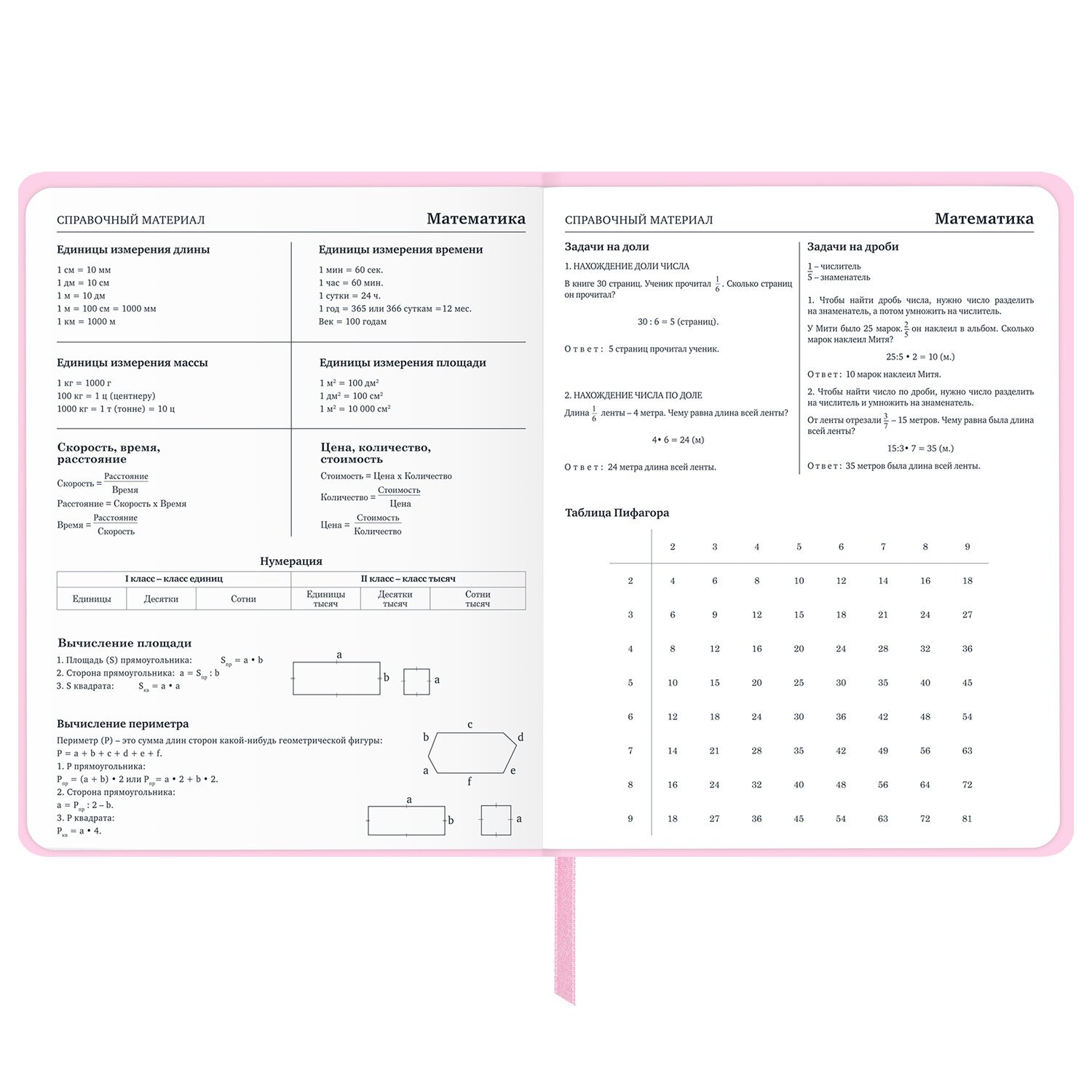 Предназначен для учащихся 1-11 классов. Твердая обложка надежно защищает бумагу и долго сохраняет привлекательный внешний вид. Благодаря современным технологиям печати на материале из экокожи, краски на изображении становятся более яркими и насыщенными, исключается возможное истирание рисунка. Внутренний блок состоит из офсетной белой бумаги плотностью 70 г/м2. 48 листов. В справочном материале собраны основные подсказки для учащихся.