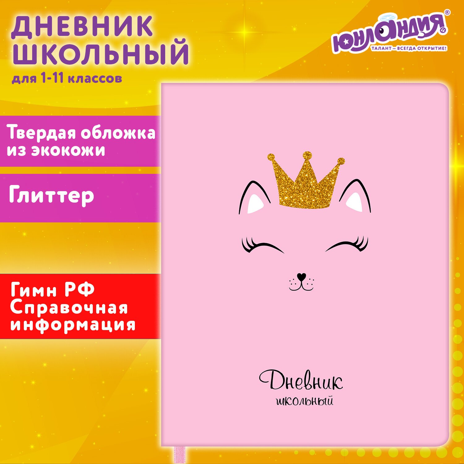 Дневник 1-11 класс 48 л., кожзам (твердая), печать, глиттер, ЮНЛАНДИЯ, "КОШЕЧКА", 105940