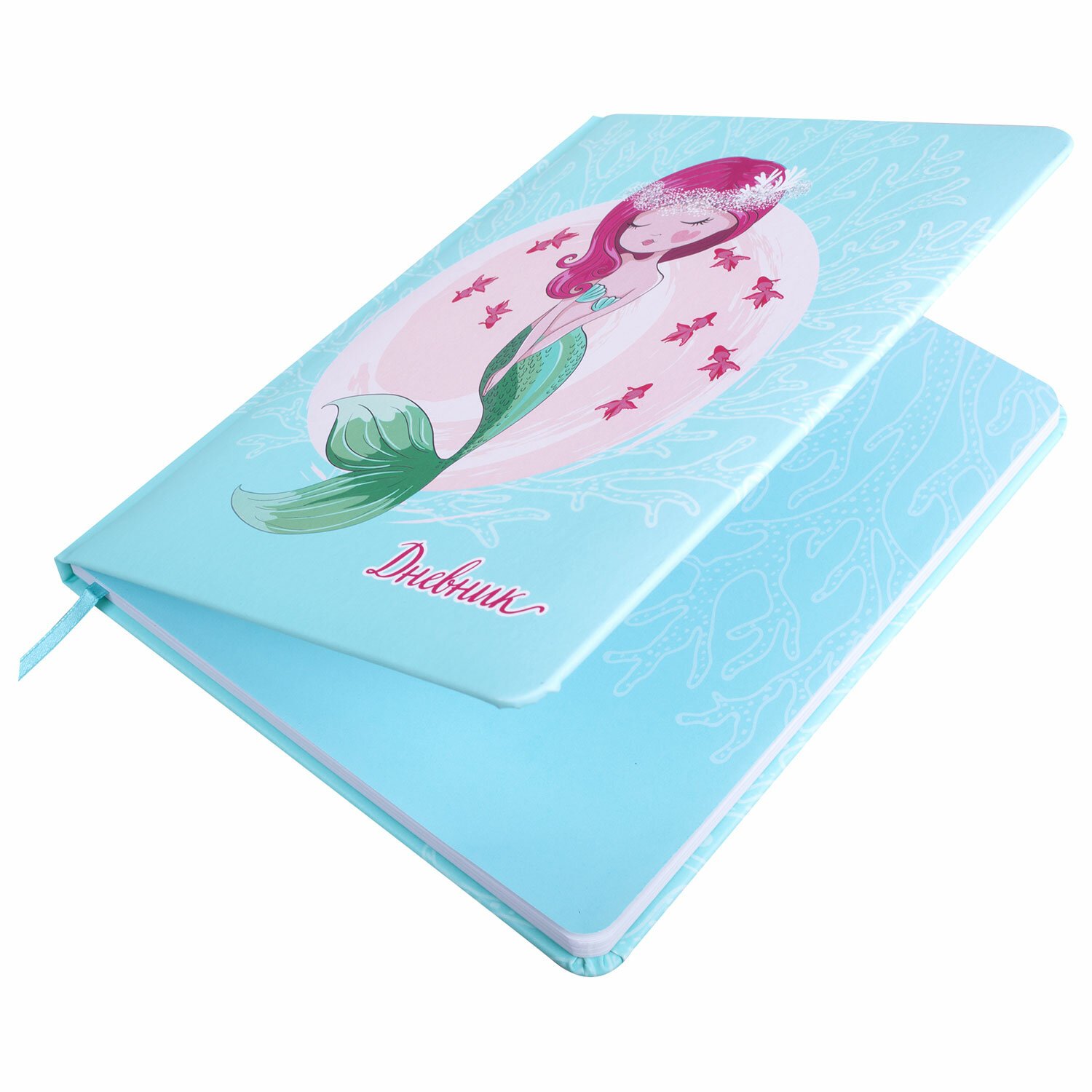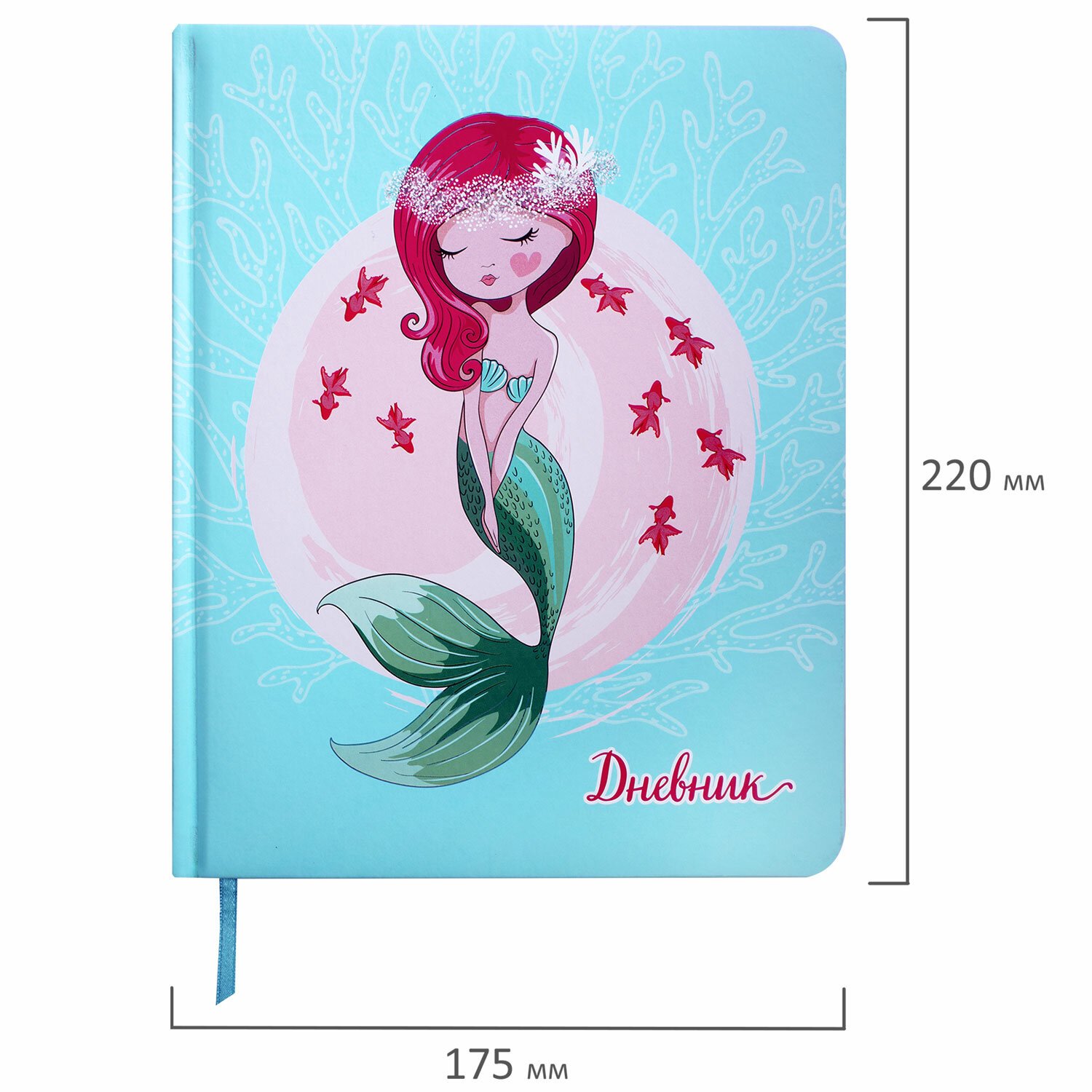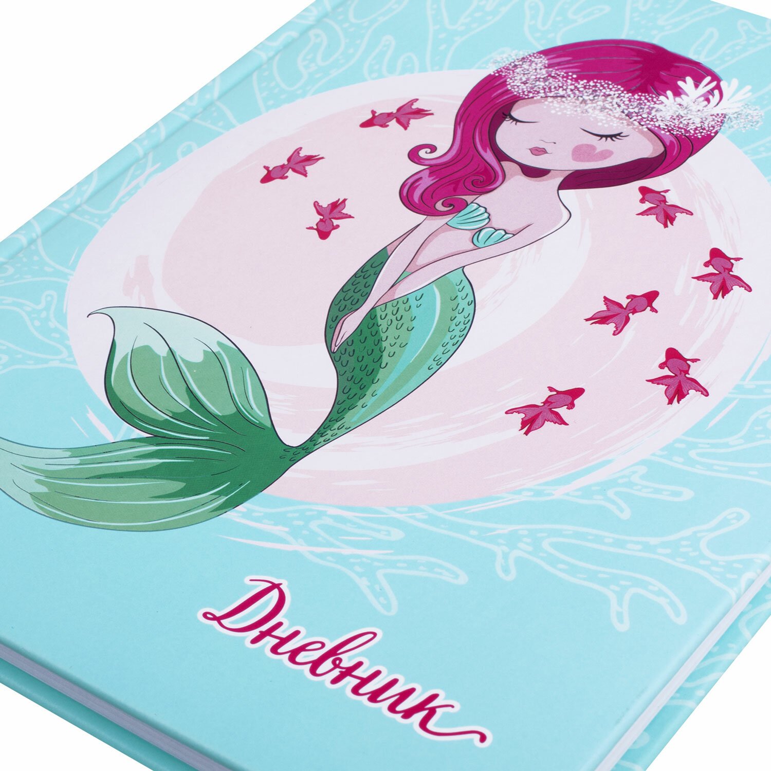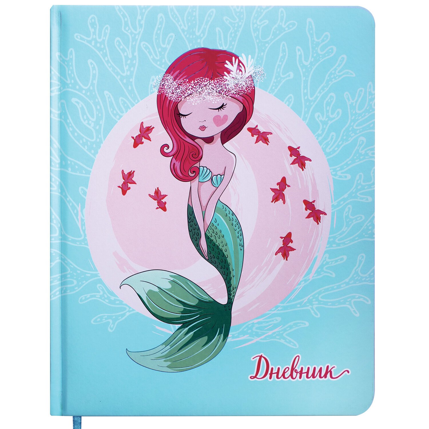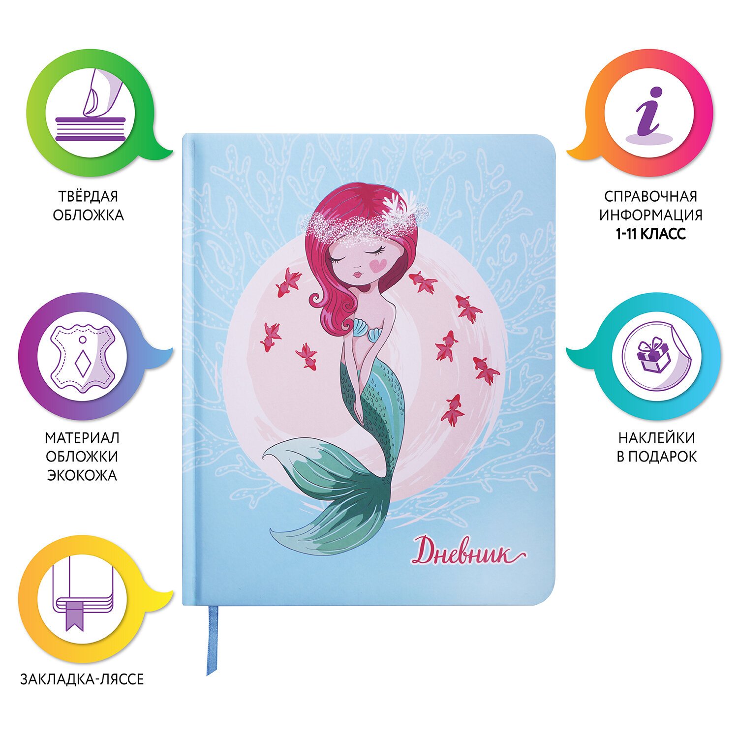Дневник 1-11 класс 48 л., кожзам (твердая с поролоном), печать, наклейки, ЮНЛАНДИЯ, "Русалочка", 106187