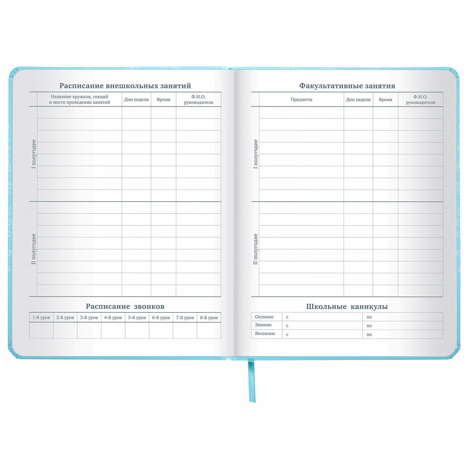 Предназначен для учащихся 1-11 классов. Твердая обложка из экокожи надежно защищает бумагу и долго сохраняет привлекательный внешний вид. Внутренний блок содержит 48 листов и состоит из офсетной белой бумаги плотностью 70 г/м2. В справочном материале собраны основные подсказки для учащихся. Для удобства пользования дневник снабжен закладкой-ляссе.