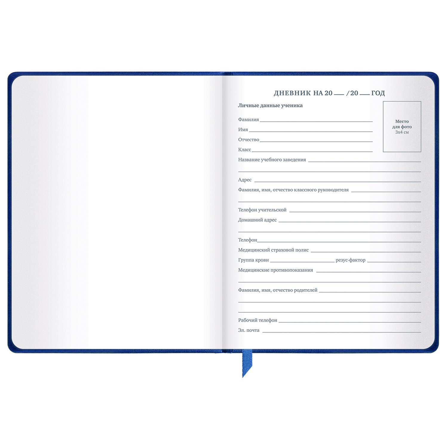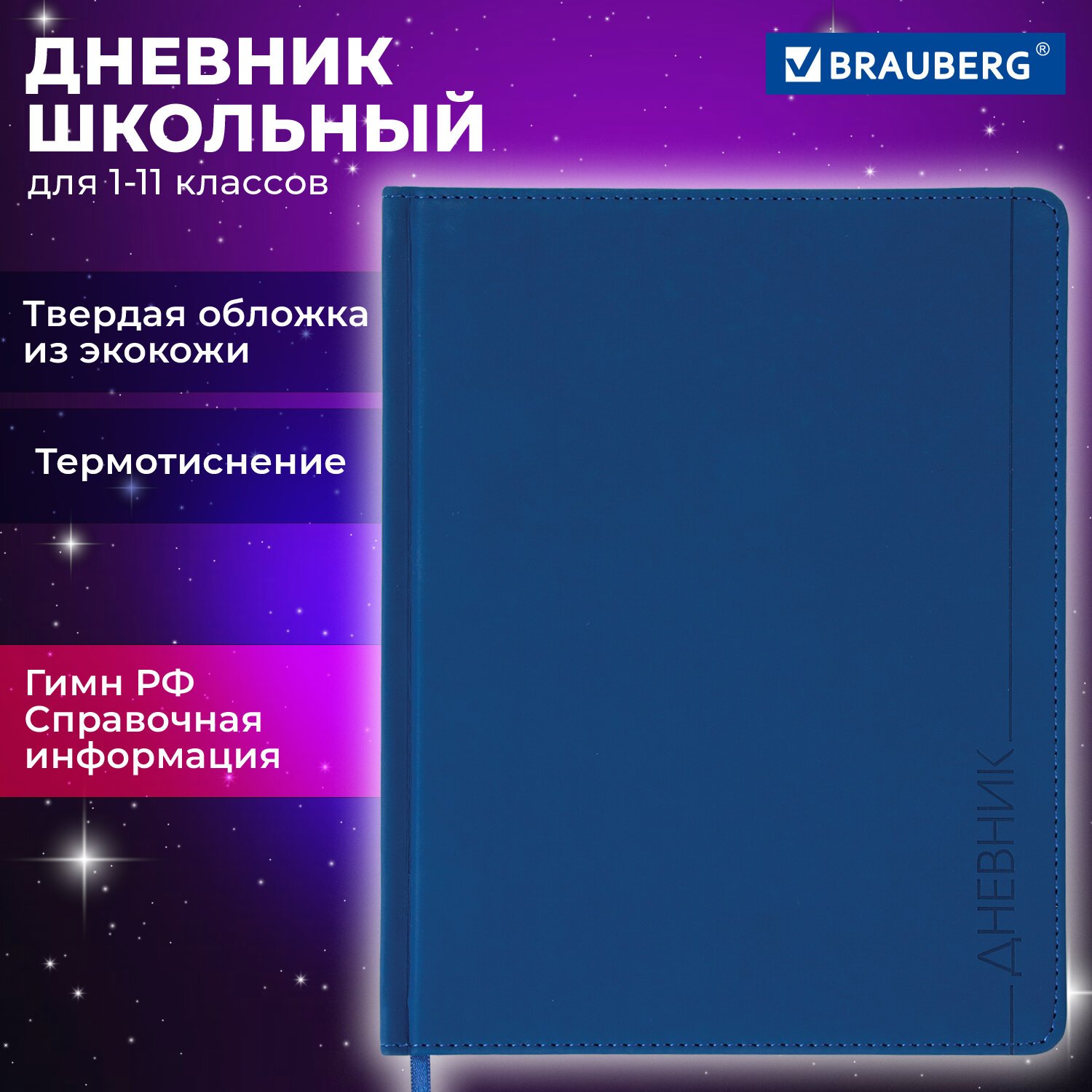 Дневник 1-11 класс 48 л., кожзам (твердая), термотиснение, BRAUBERG "VIENNA", синий, 105961
