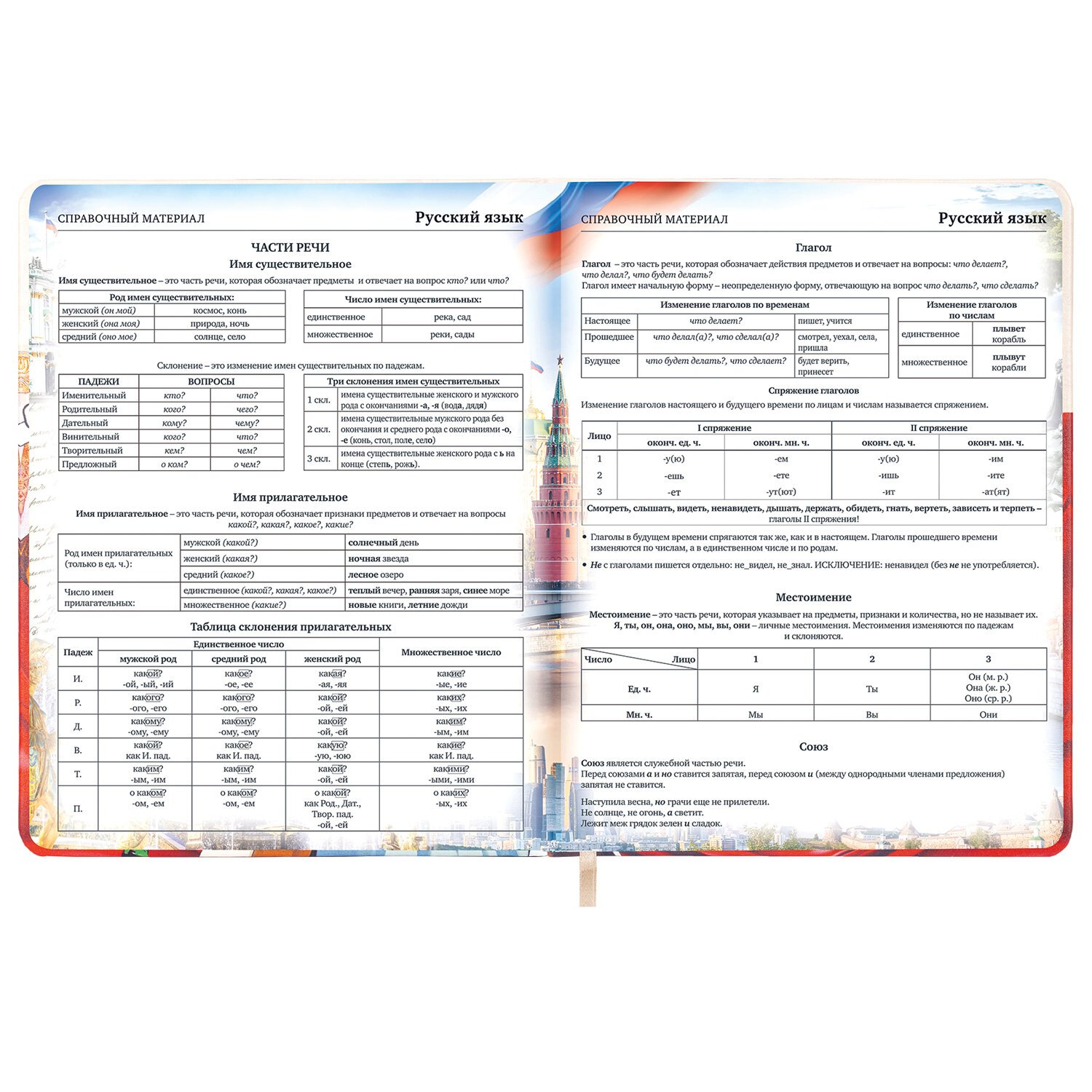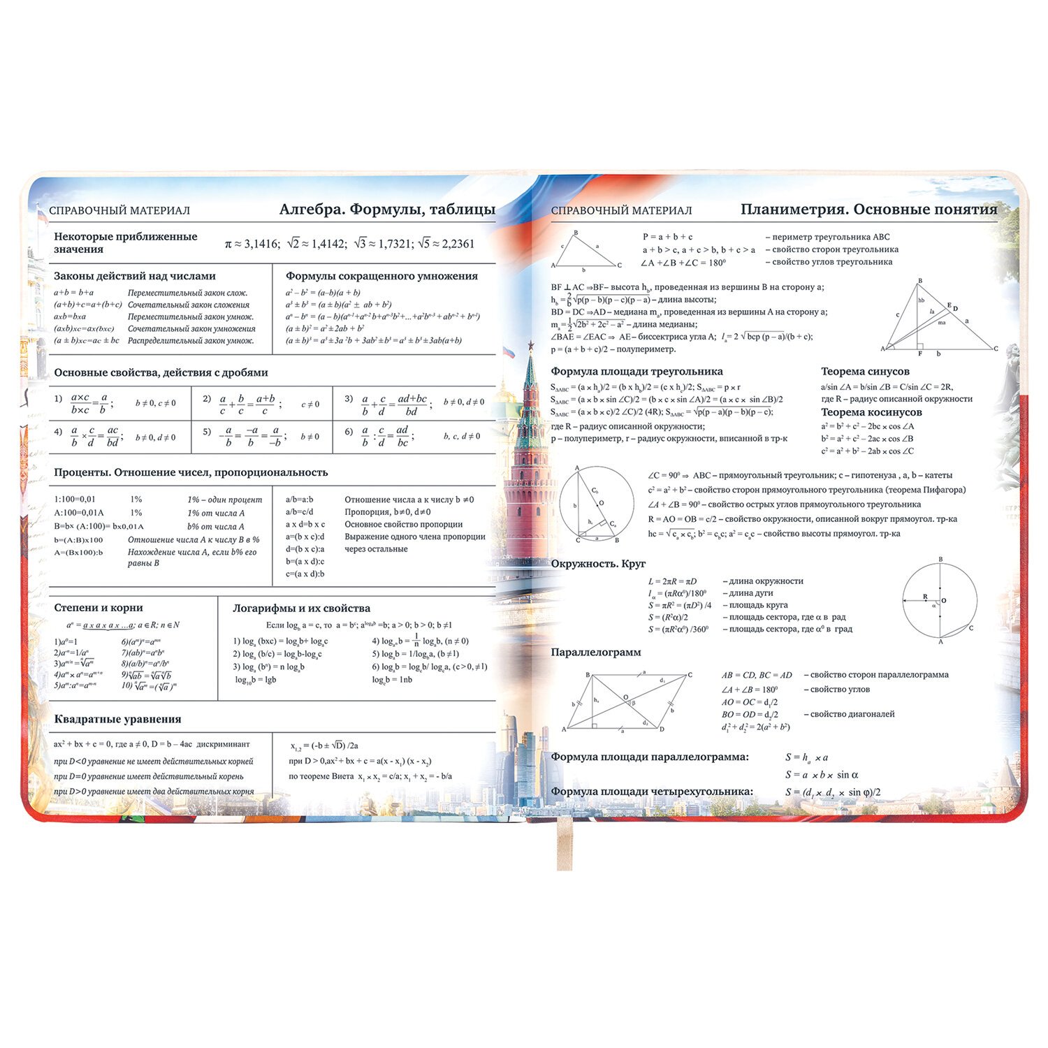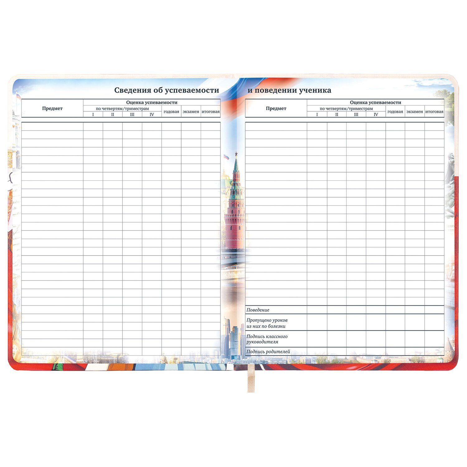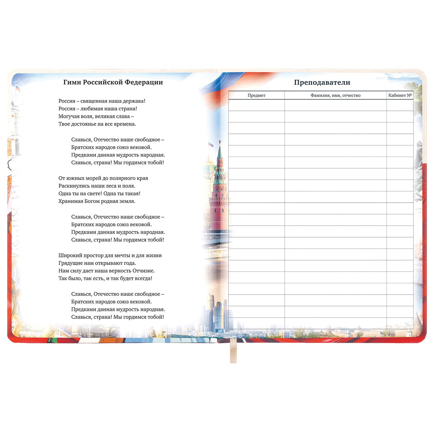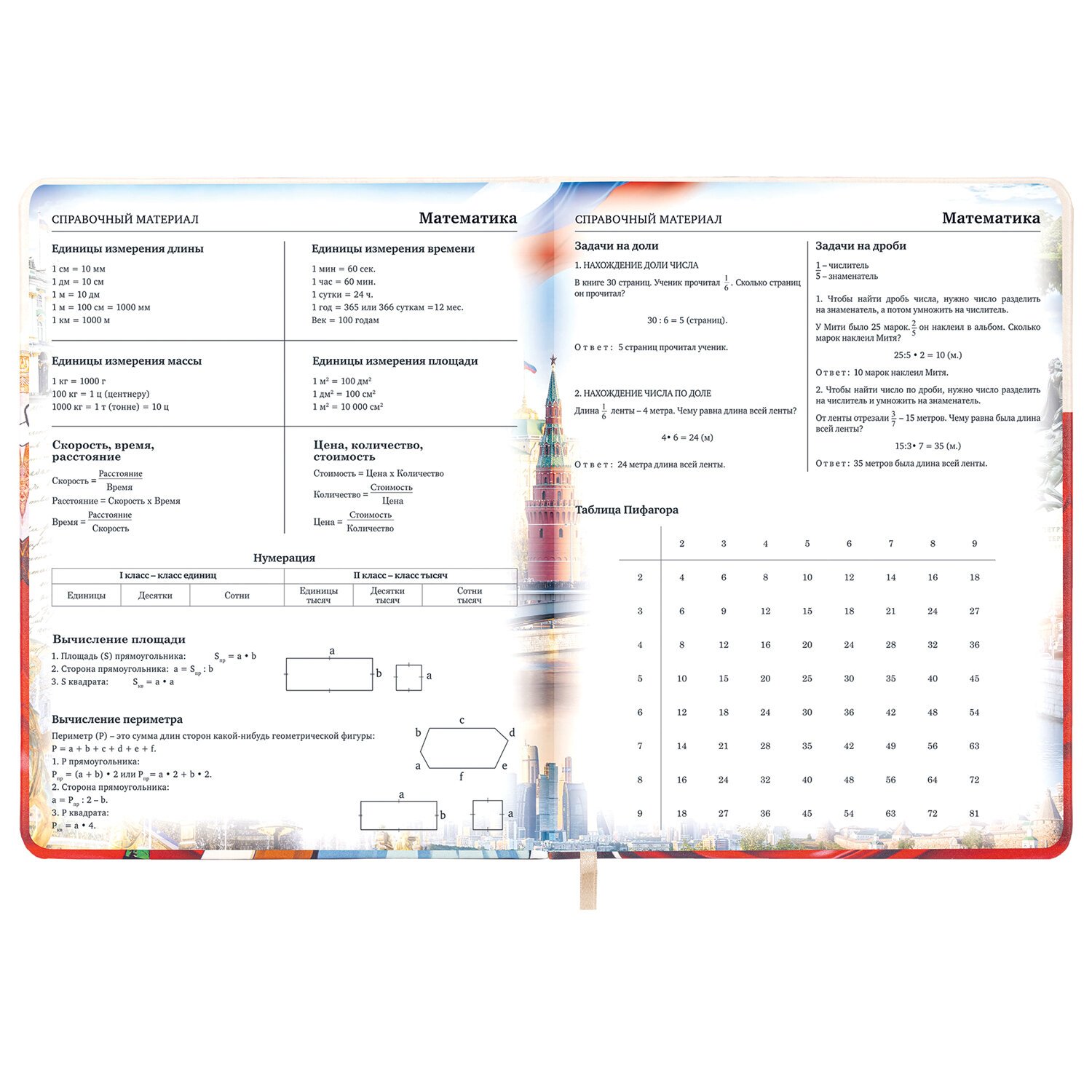 Предназначен для учащихся 1-11 классов и снабжен справочными материалами (в том числе историческими сведениями на каждом листе внутреннего блока). Твердая обложка из экокожи надежно защищает бумагу и долго сохраняет привлекательный внешний вид. Внутренний блок содержит 48 листов и состоит из офсетной бумаги плотностью 70 г/м2 с полноцветной печатью. Для удобства использования дневник снабжен закладкой-ляссе.
