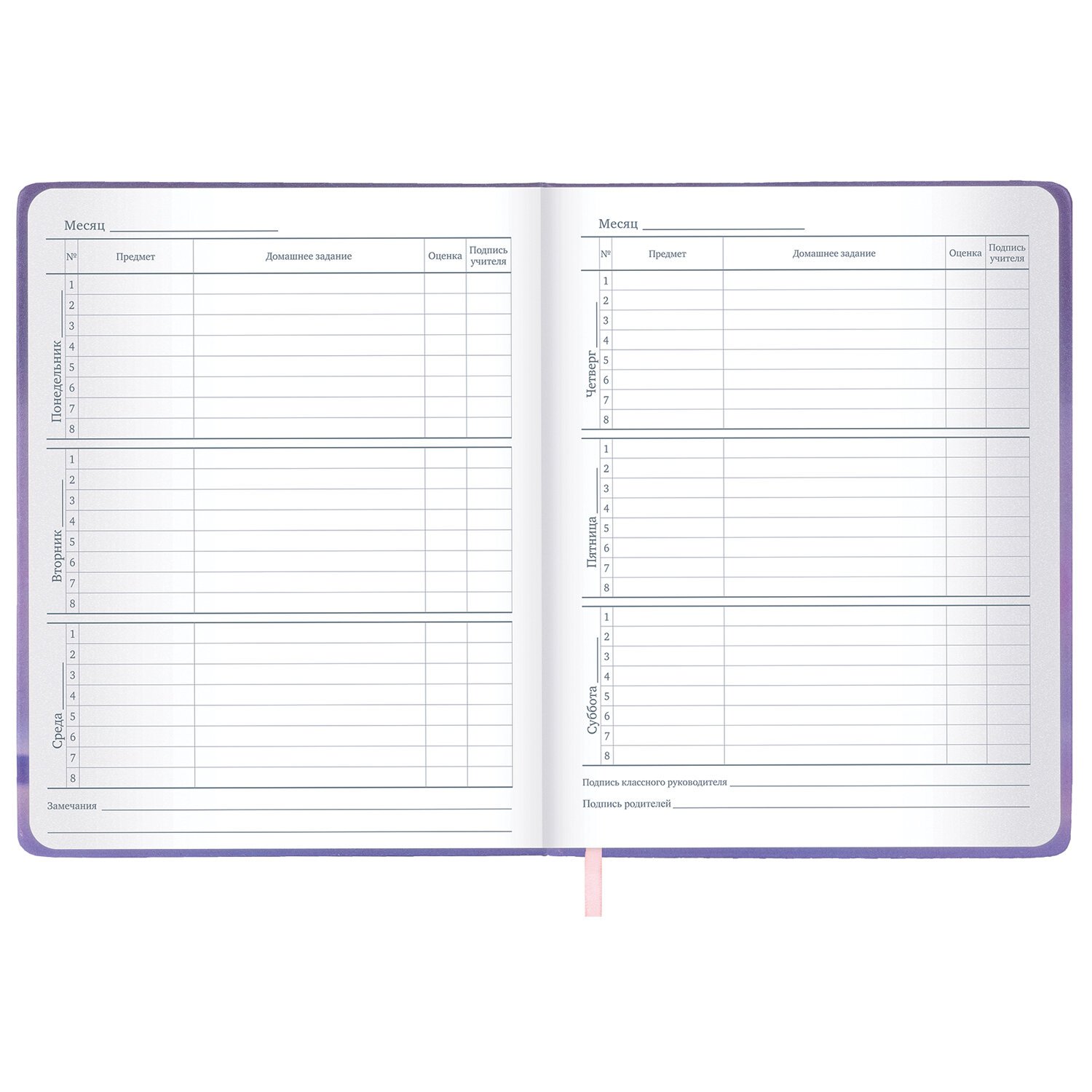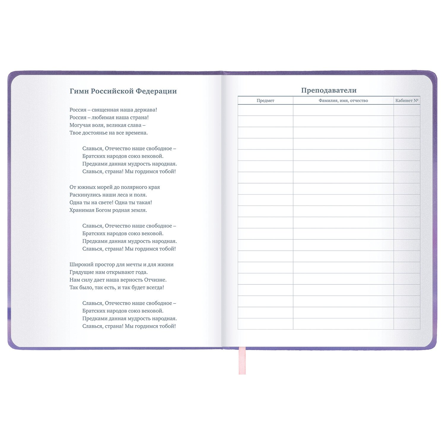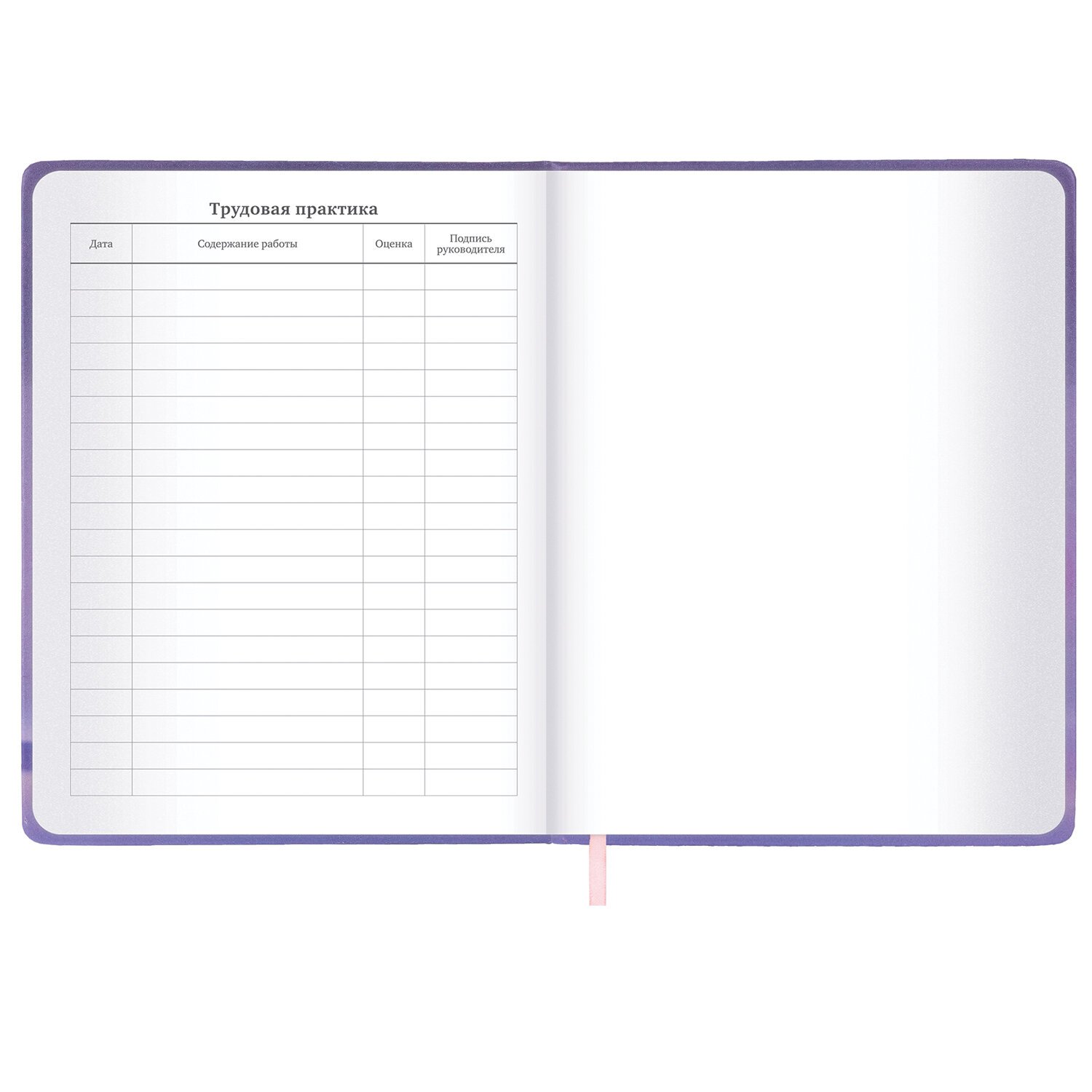 Твердая обложка из экокожи надежно защищает бумагу и долго сохраняет привлекательный внешний вид. Внутренний блок содержит 48 листов и состоит из офсетной белой бумаги плотностью 70 г/м2. Для удобства использования дневник снабжен закладкой-ляссе.