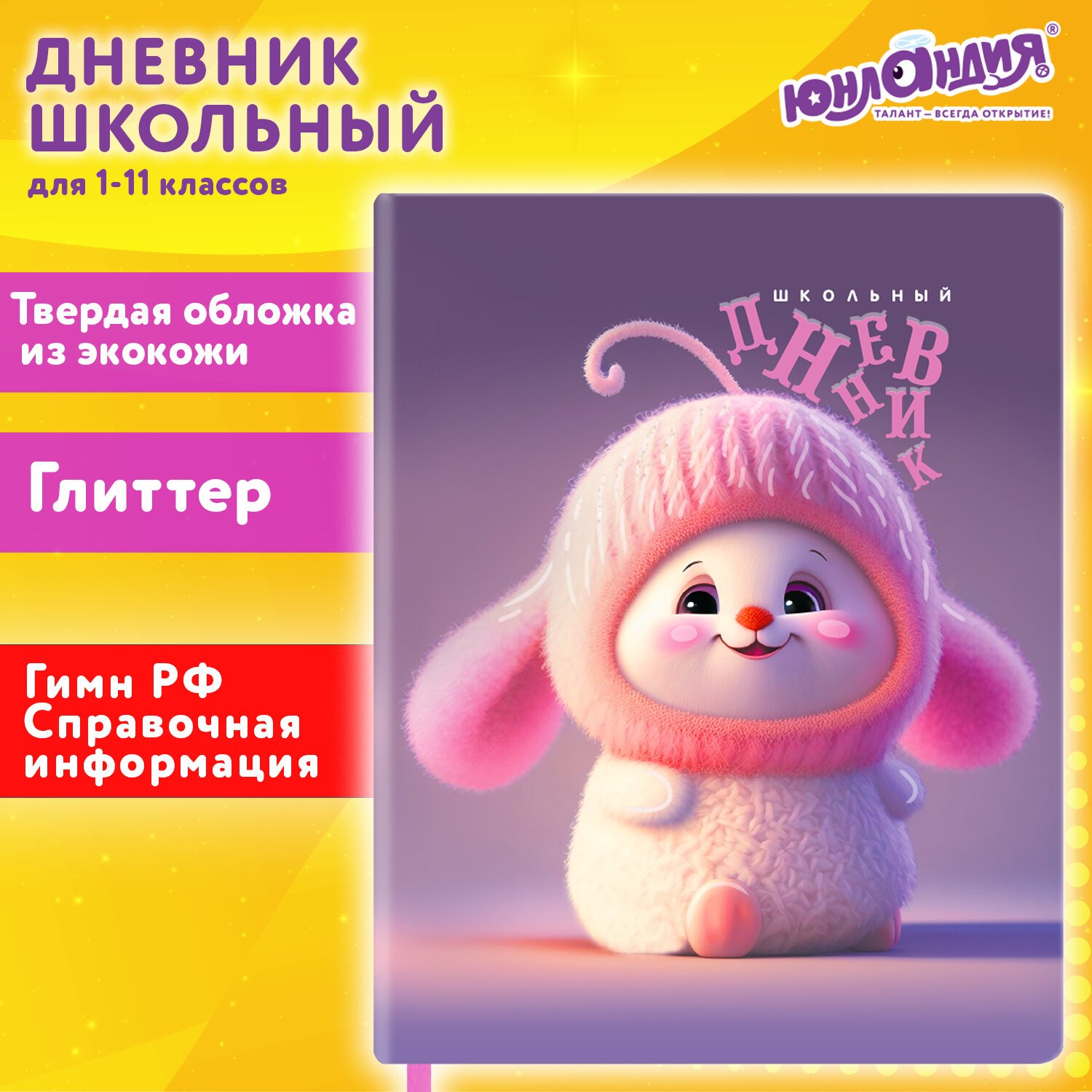 Дневник 1-11 класс 48л, кожзам (твердая), печать, глиттер, ЮНЛАНДИЯ, Пушистик, 107218