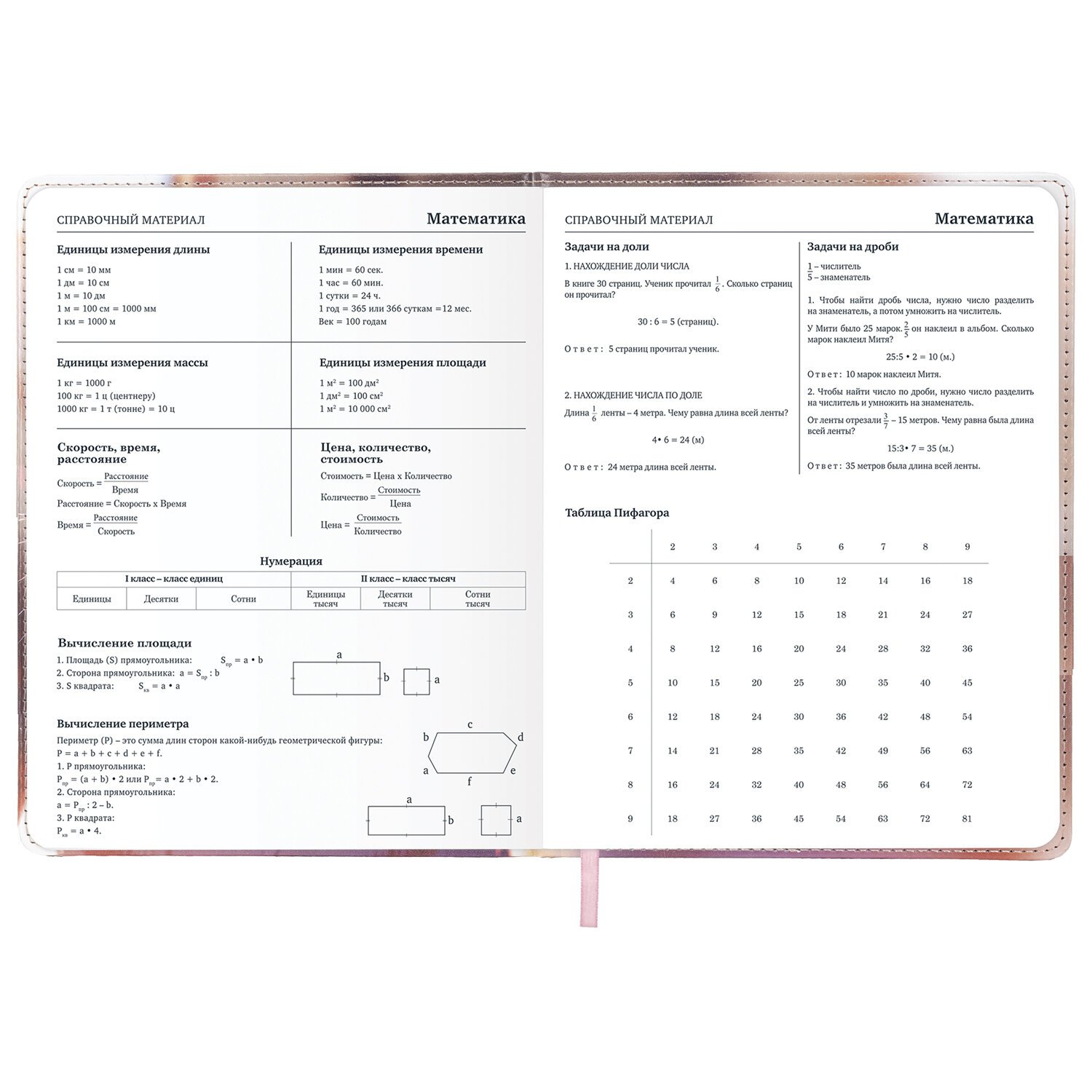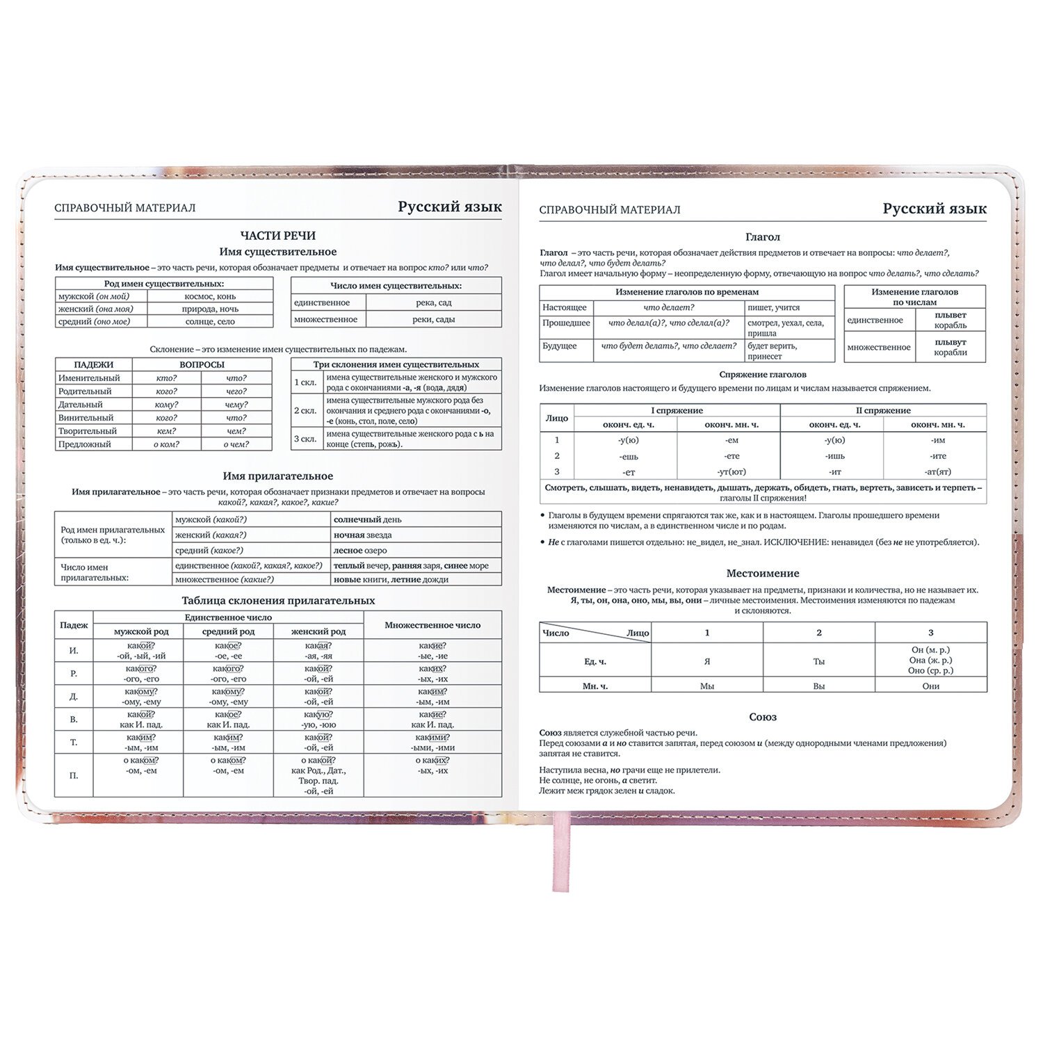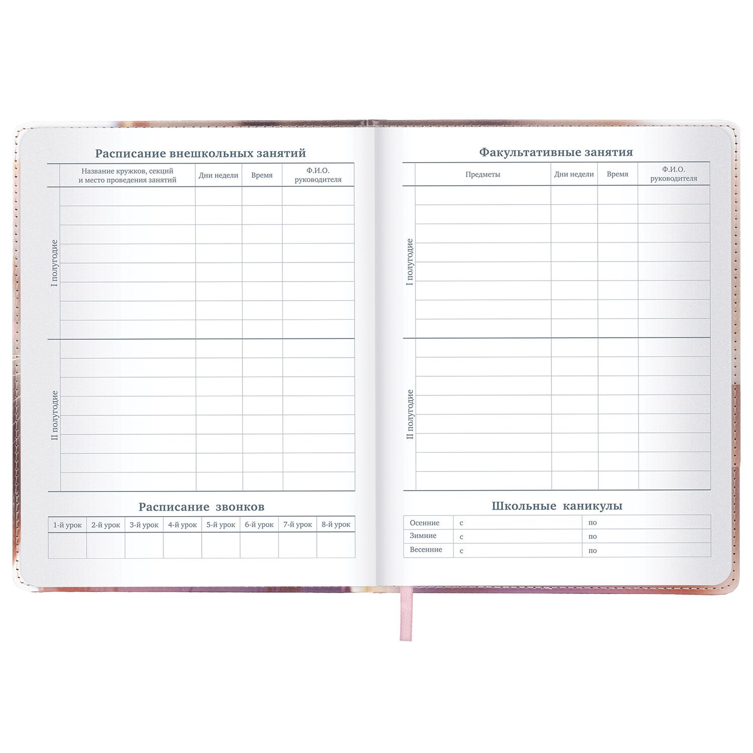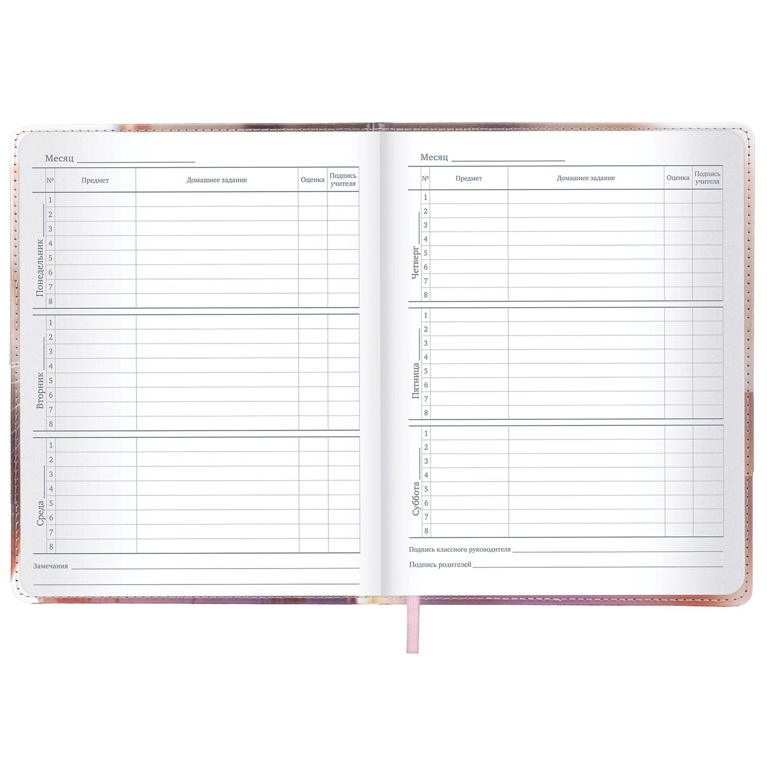 Предназначен для учащихся 1-11 классов. Твердая обложка из экокожи надежно защищает бумагу и долго сохраняет привлекательный внешний вид. Магнитная застежка не даст дневнику раскрыться в портфеле и убережет листы от замятия. Внутренний блок содержит 48 листов и состоит из офсетной белой бумаги плотностью 70 г/м2. В справочном материале собраны основные подсказки для учащихся. Для удобства пользования дневник снабжен закладкой-ляссе.