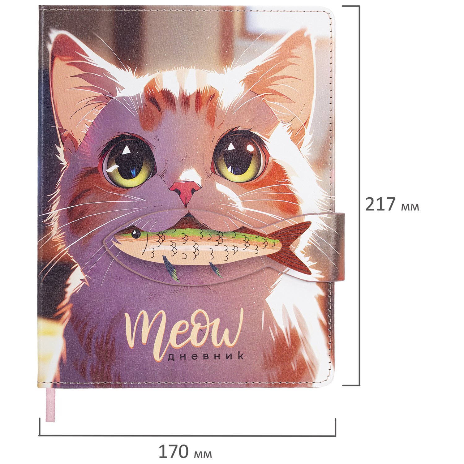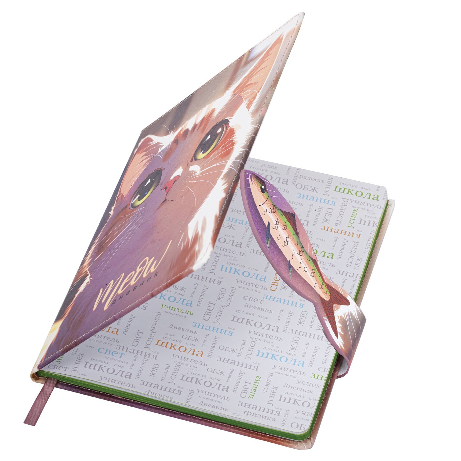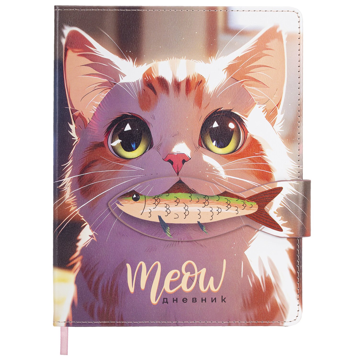 Дневник 1-11 класс 48л, кожзам (твердая), застежка, FUNSTER, Котик с рыбкой, 107229