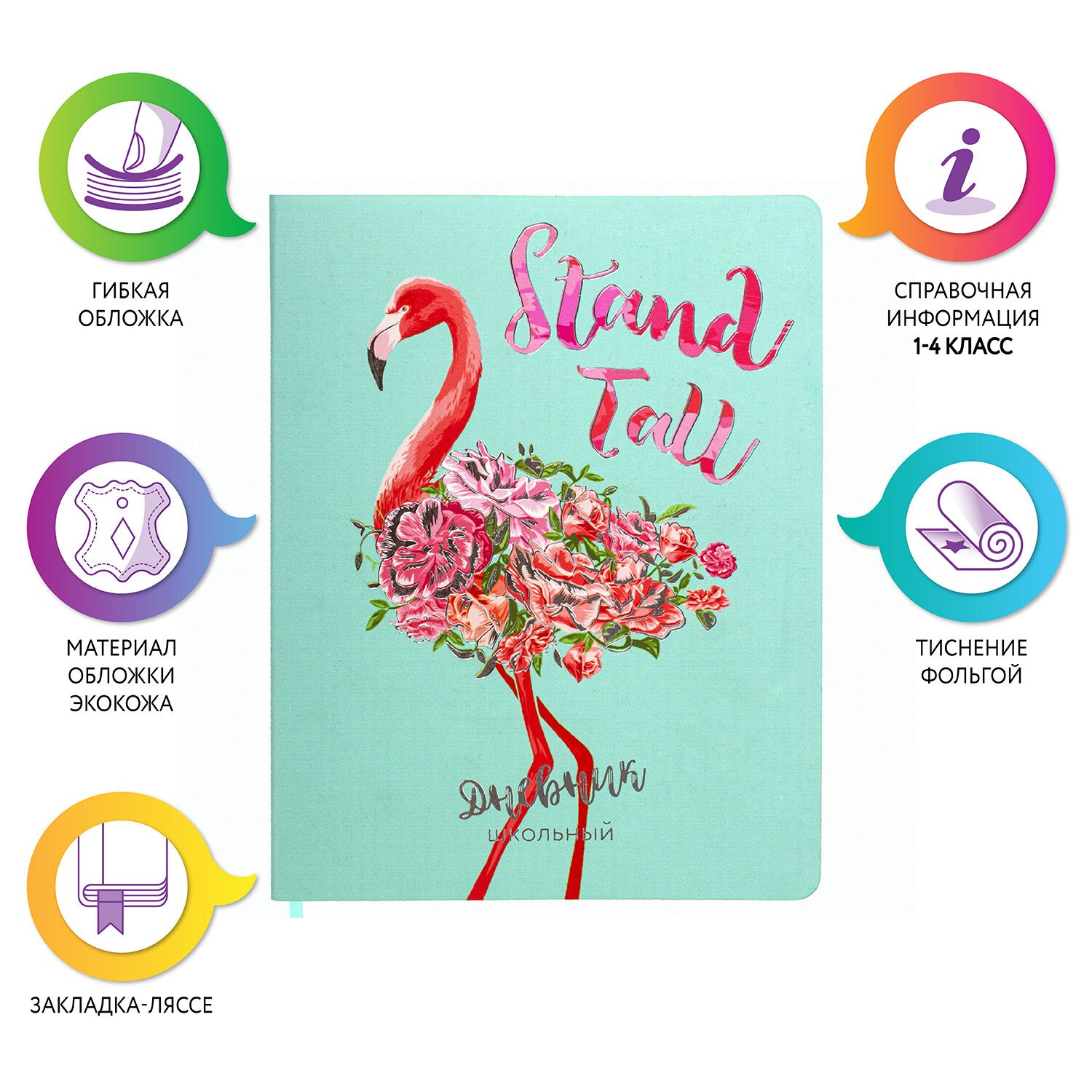 Дневник 1-4 класс 48 л., кожзам (гибкая), печать, фольга, ЮНЛАНДИЯ, "ФЛАМИНГО", 105932