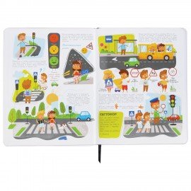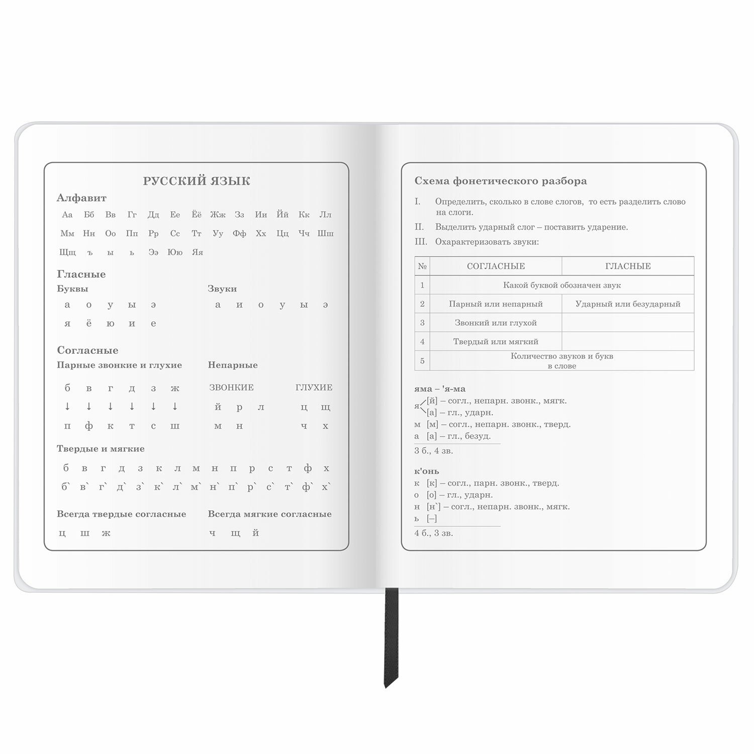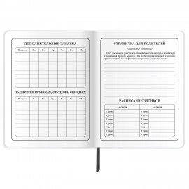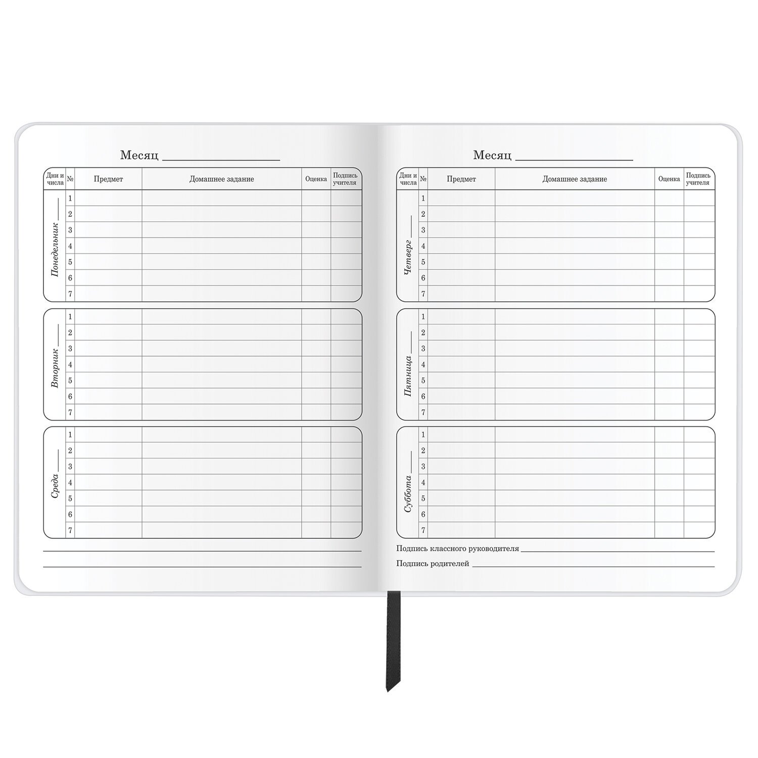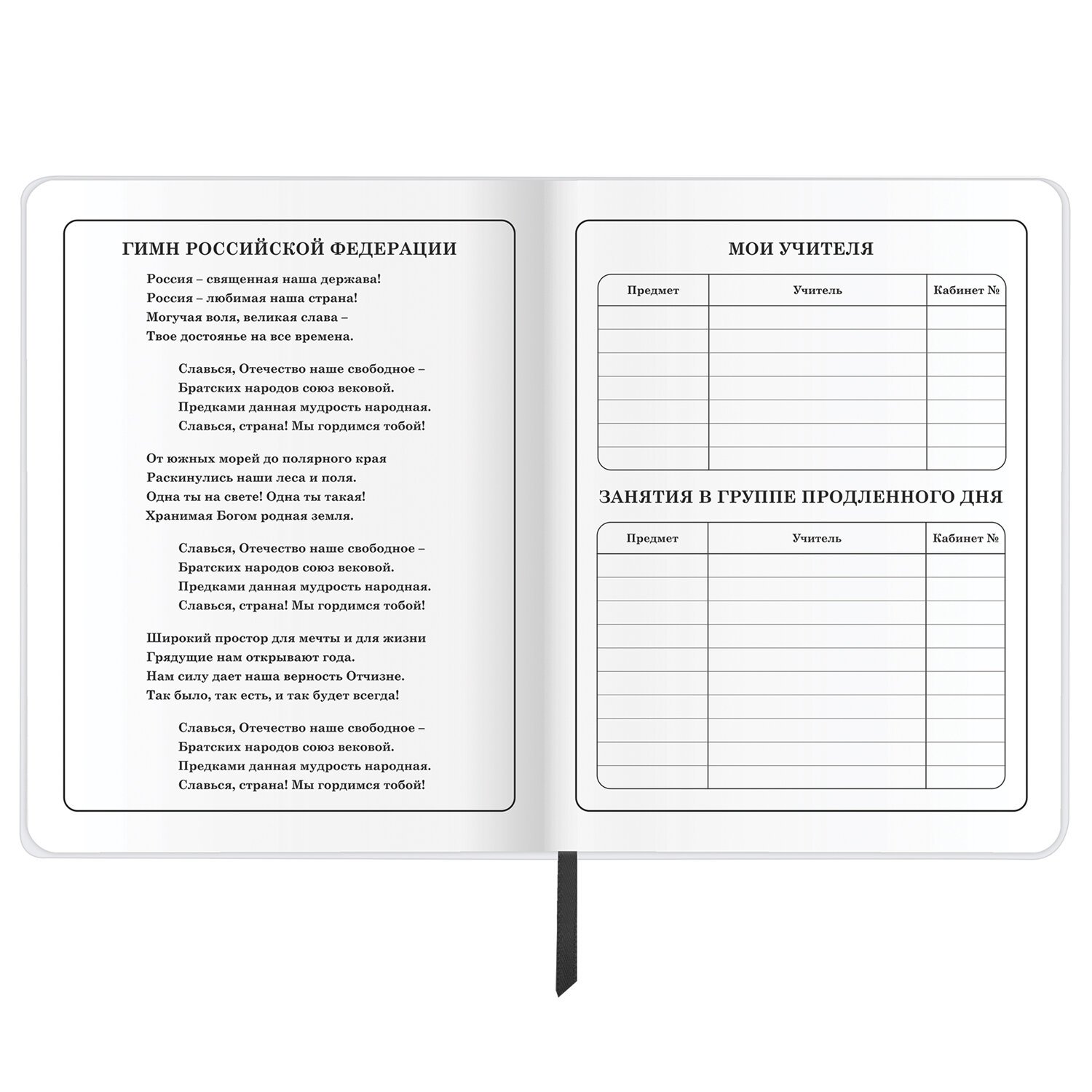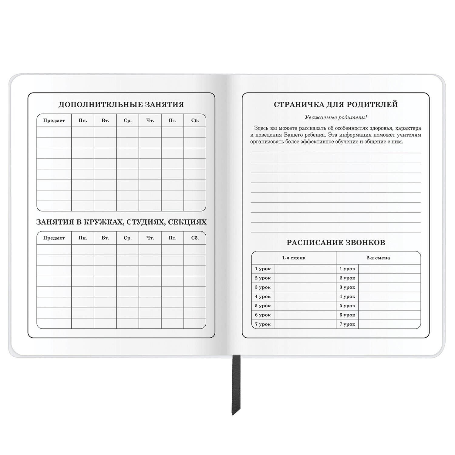 Предназначен для учащихся начальных классов. Интегральная обложка из экокожи надежно защищает бумагу и долго сохраняет привлекательный внешний вид, а тиснение фольгой придает изделию оригинальность. Внутренний блок содержит 48 листов и состоит из офсетной белой бумаги плотностью 70 г/м2. В справочном материале собраны основные подсказки для учащихся. Для удобства пользования дневник снабжен закладкой-ляссе.