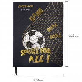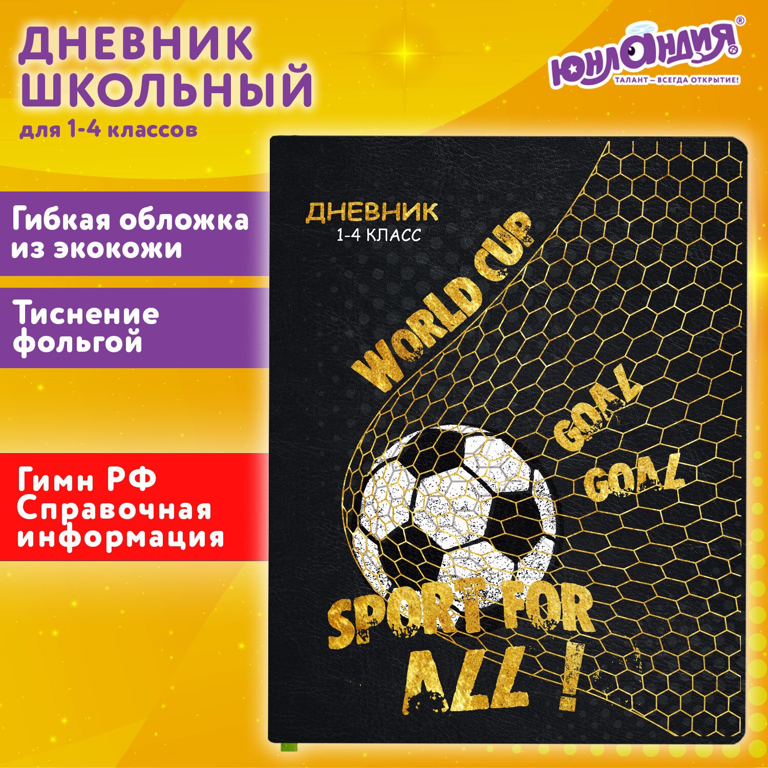 Дневник 1-4 класс 48 л., кожзам (гибкая), печать, фольга, ЮНЛАНДИЯ, "Football", 106159