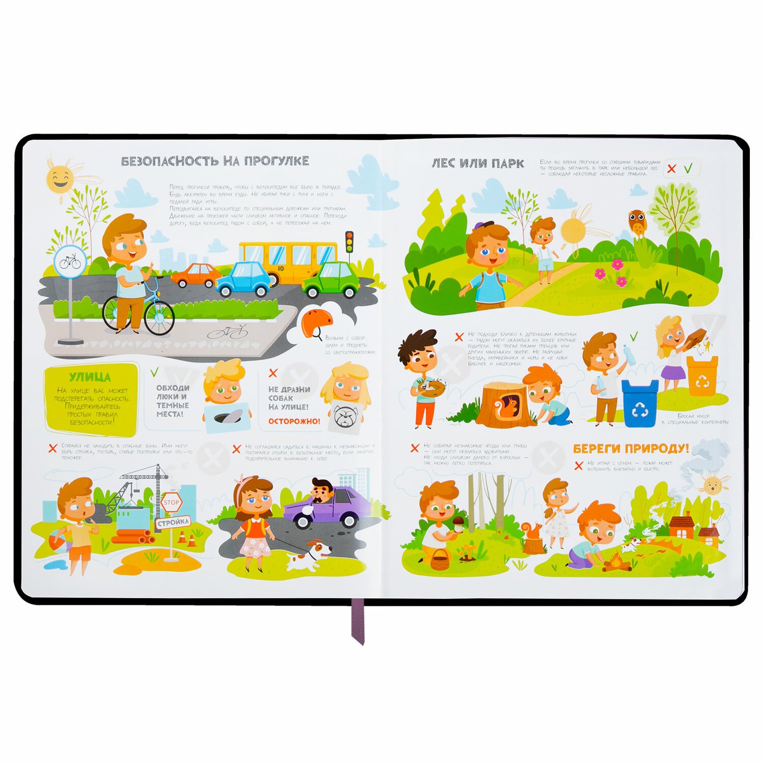 Внутренний блок содержит 48 листов и состоит из офсетной белой бумаги плотностью 70 г/м2. Для удобства использования дневник снабжен закладкой-ляссе.