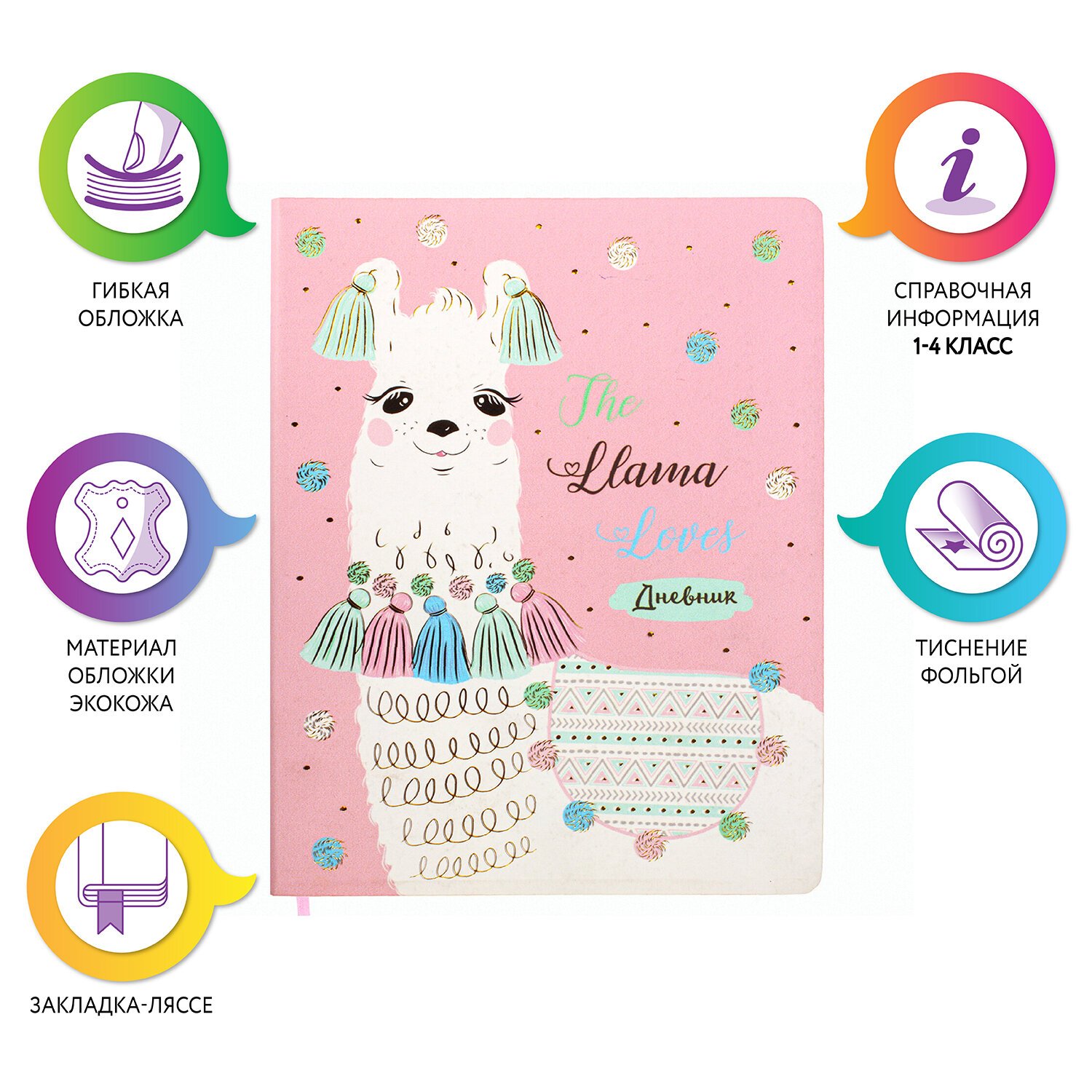 Дневник 1-4 класс 48 л., кожзам (гибкая), печать, фольга, ЮНЛАНДИЯ, "ЛАМА", 105931