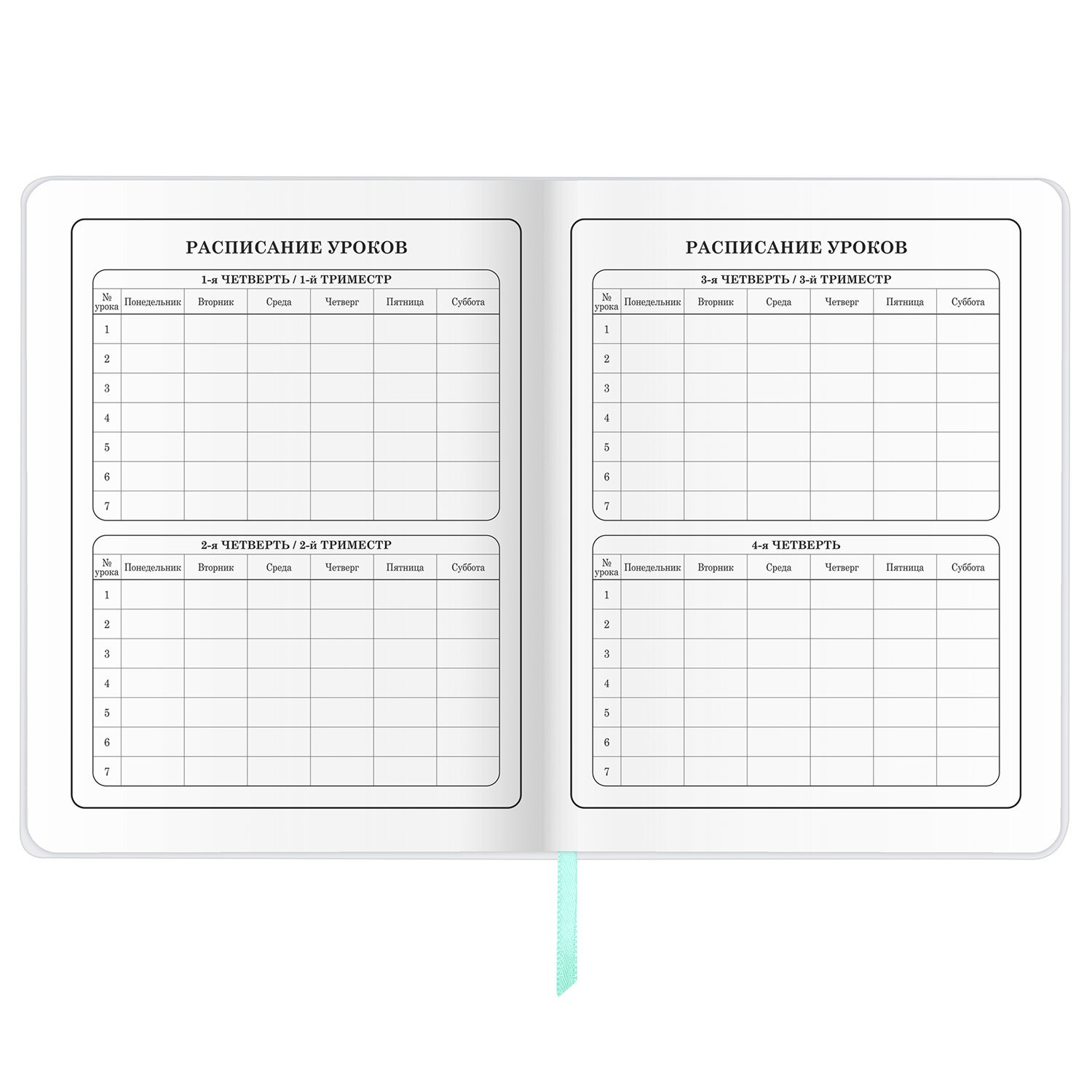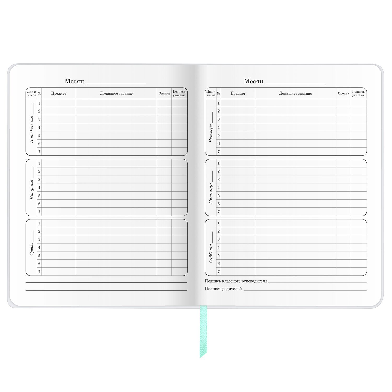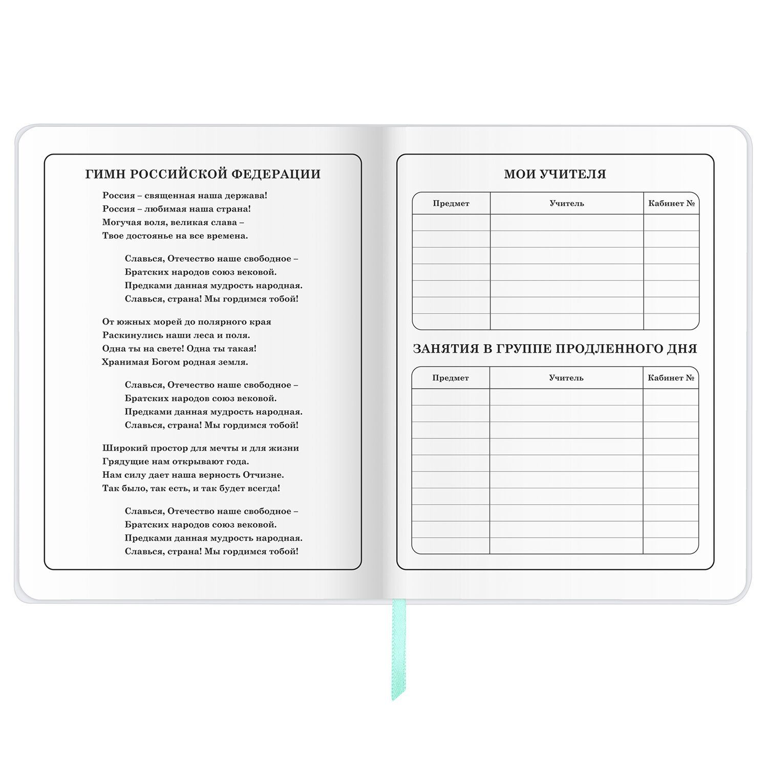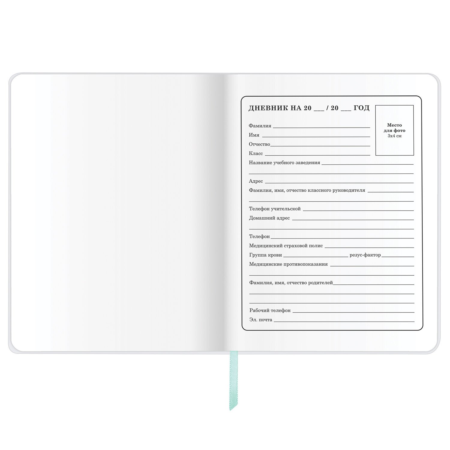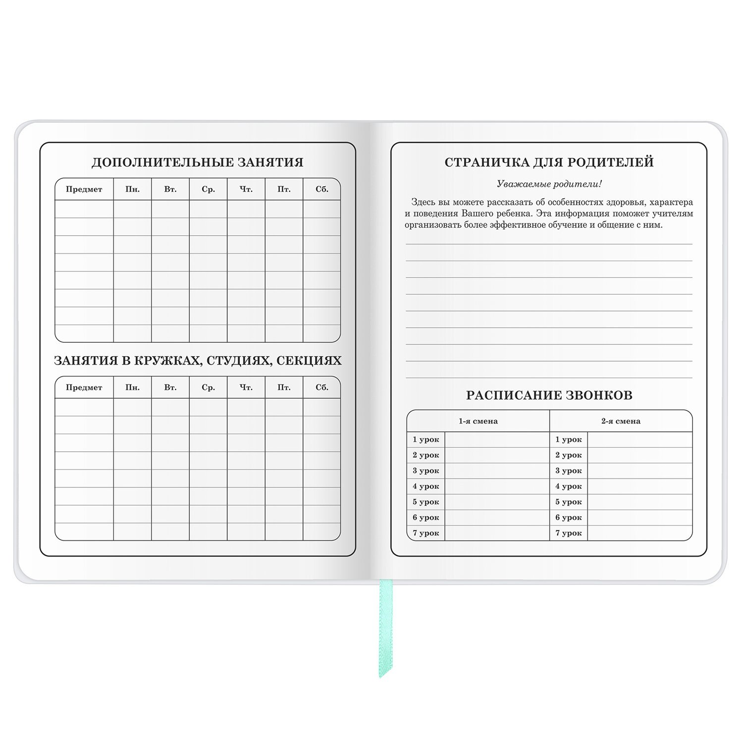 Предназначен для учащихся начальных классов. Интегральная обложка из экокожи надежно защищает бумагу и долго сохраняет привлекательный внешний вид, а тиснение фольгой придает изделию оригинальность. Внутренний блок содержит 48 листов и состоит из офсетной белой бумаги плотностью 70 г/м2. В справочном материале собраны основные подсказки для учащихся. Для удобства пользования дневник снабжен закладкой-ляссе.