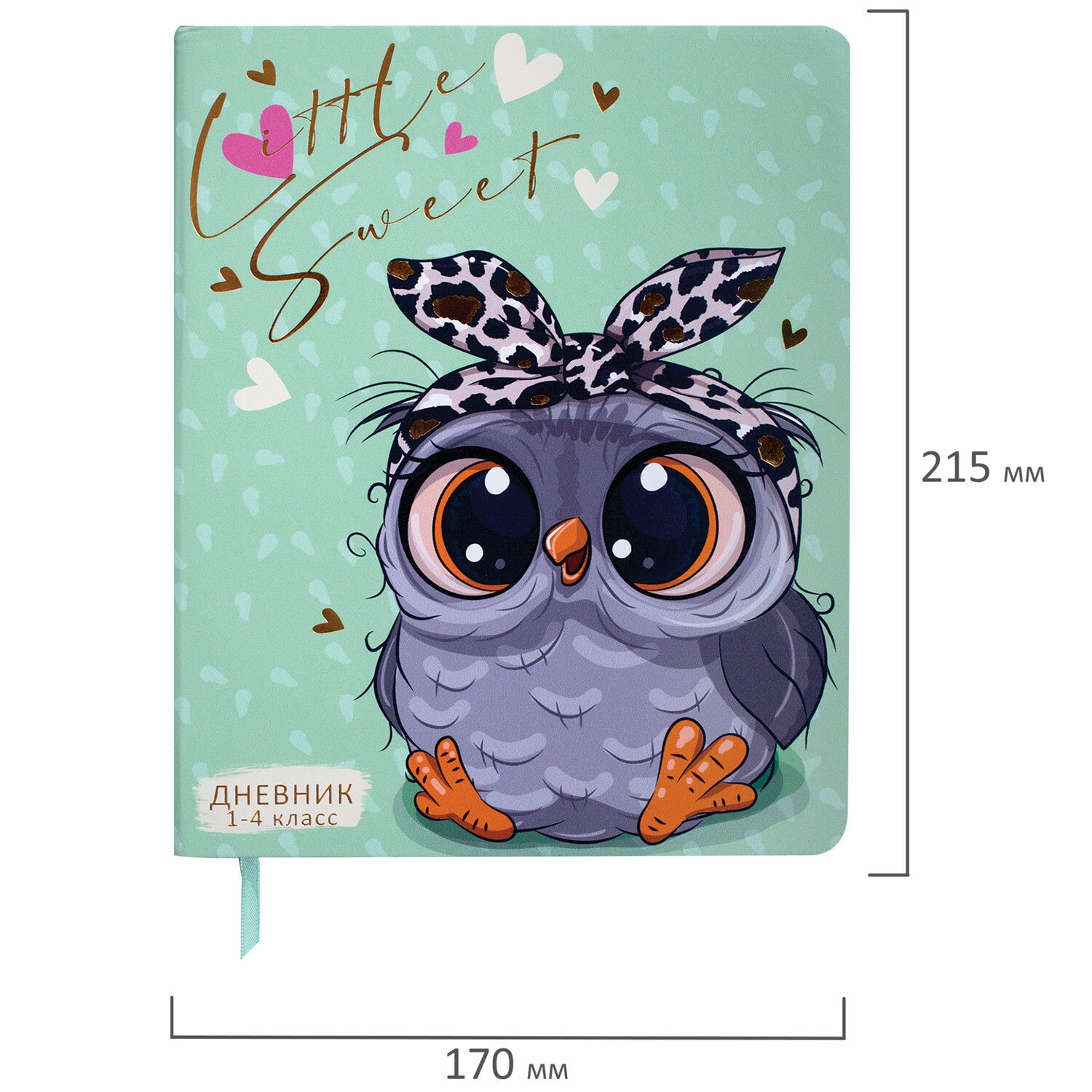 Дневник 1-4 класс 48 л., кожзам (гибкая), печать, фольга, ЮНЛАНДИЯ, "Совушка", 106158
