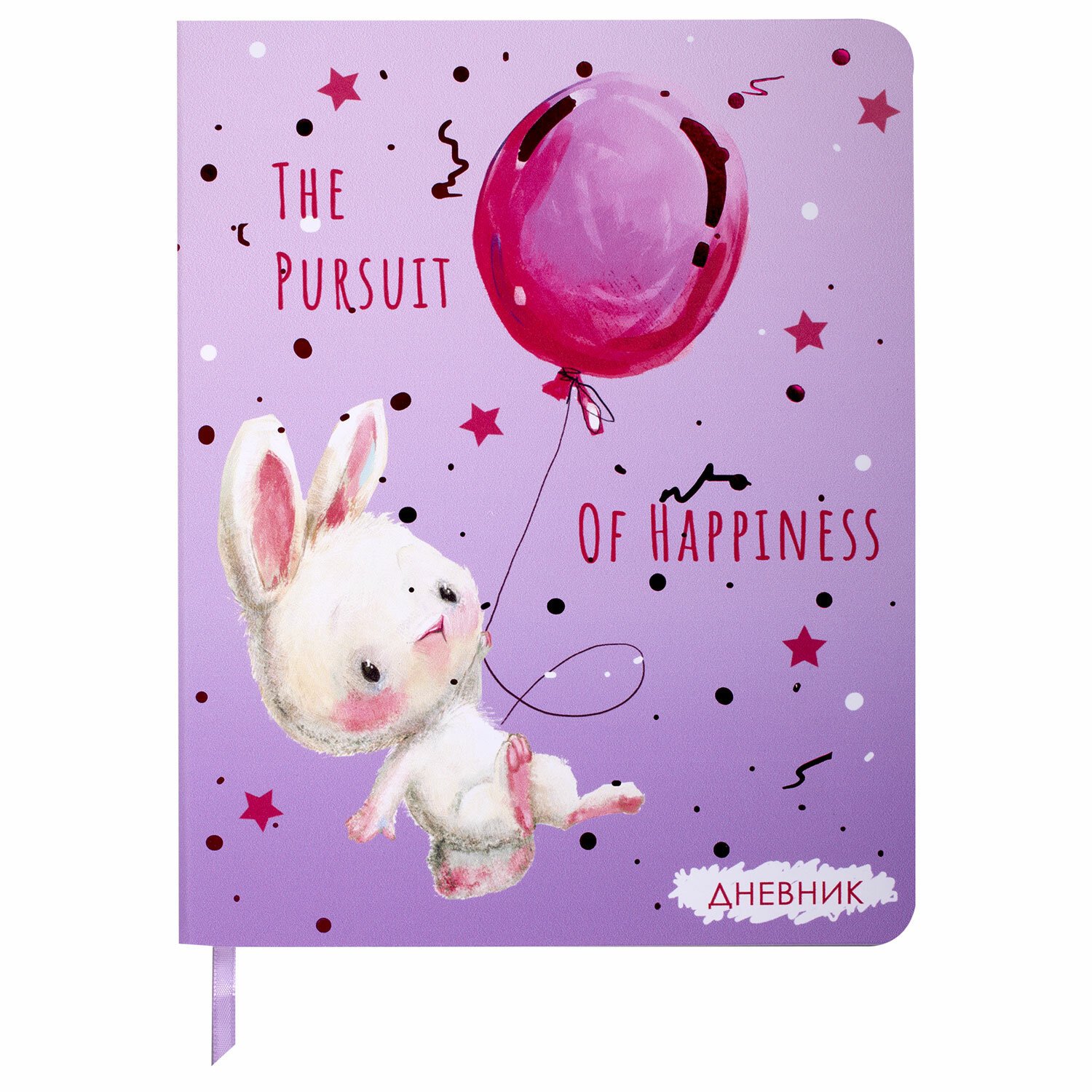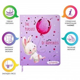 Дневник 1-4 класс 48 л., кожзам (гибкая), печать, фольга, ЮНЛАНДИЯ, "Зайчик", 106160