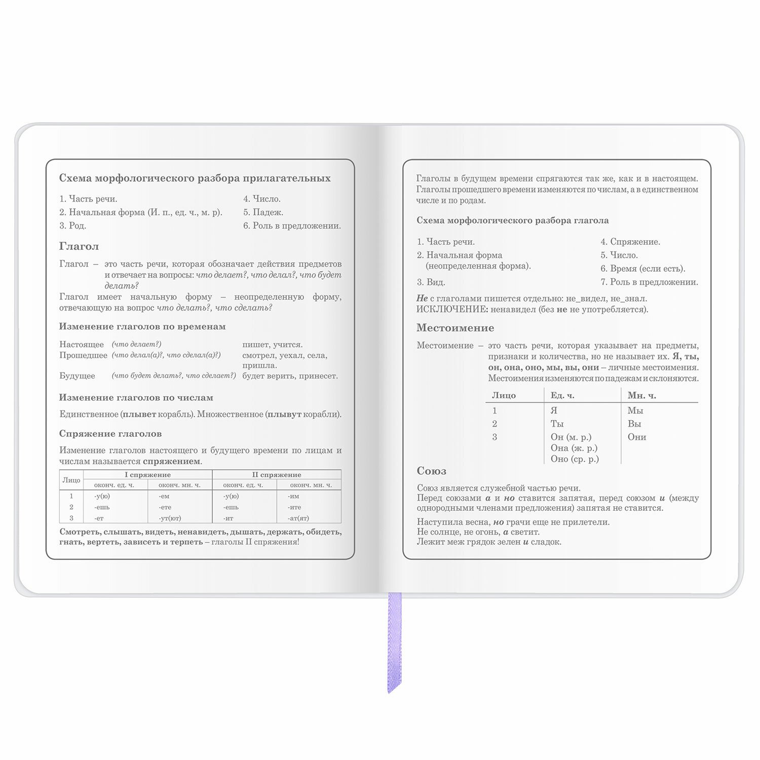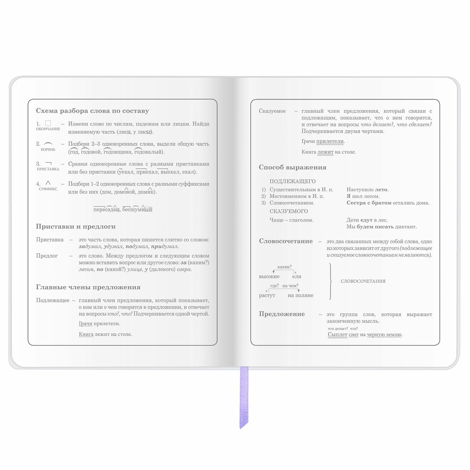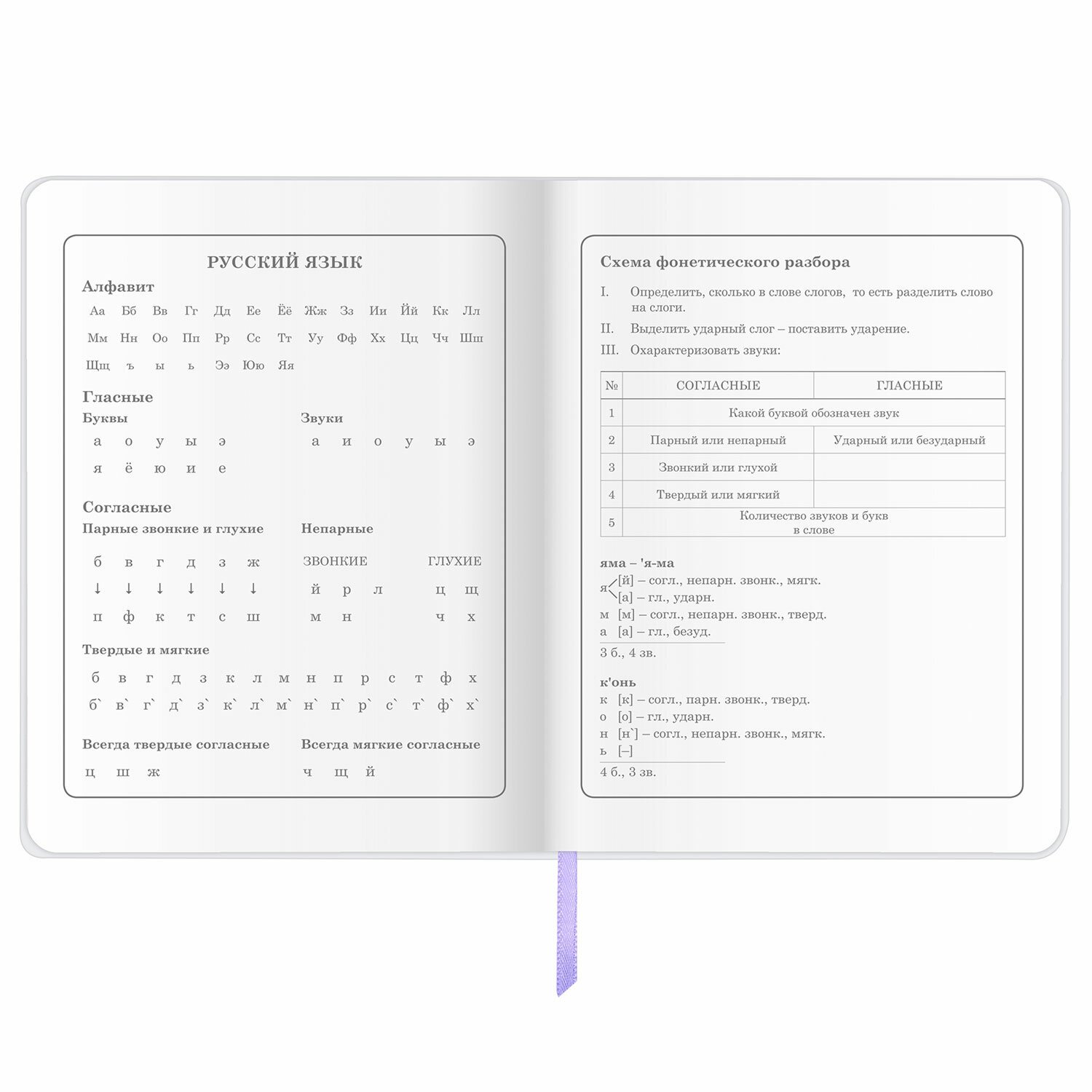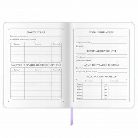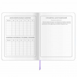 Предназначен для учащихся начальных классов. Интегральная обложка из экокожи надежно защищает бумагу и долго сохраняет привлекательный внешний вид, а тиснение фольгой придает изделию оригинальность. Внутренний блок содержит 48 листов и состоит из офсетной белой бумаги плотностью 70 г/м2. В справочном материале собраны основные подсказки для учащихся. Для удобства пользования дневник снабжен закладкой-ляссе.