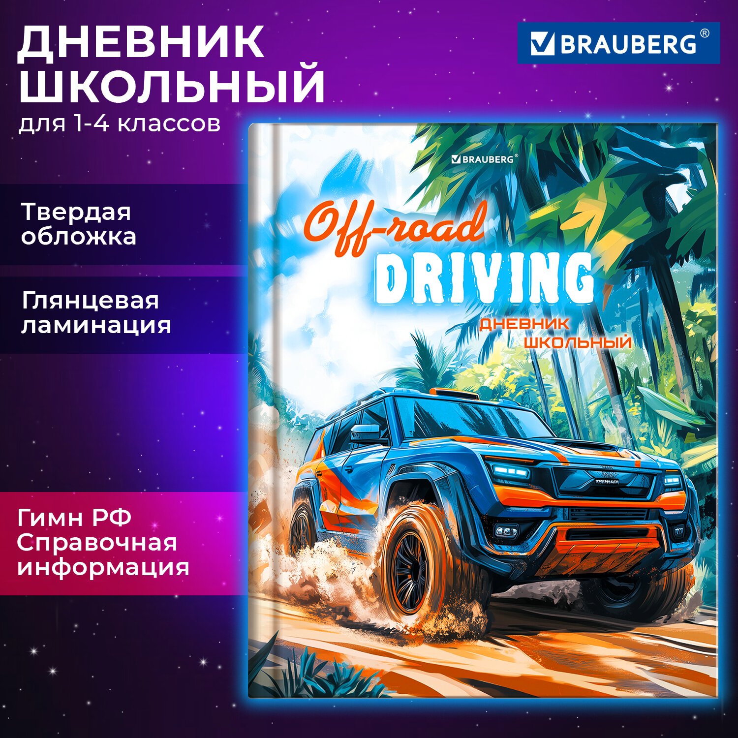 Дневник 1-4 класс 48 л., твердый, BRAUBERG, глянцевая ламинация, с подсказом, "Джип", 107152
