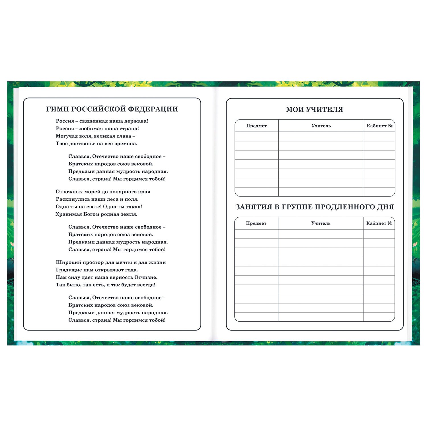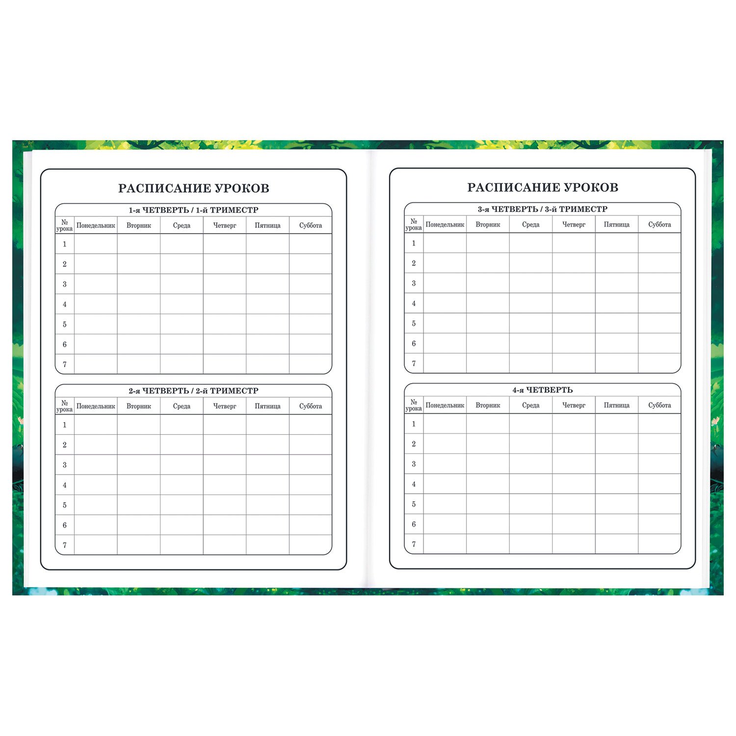 Внутренний блок содержит 48 листов офсетной белой бумаги плотностью 60 г/м2. Дневник снабжен полезным справочным материалом для учащихся.