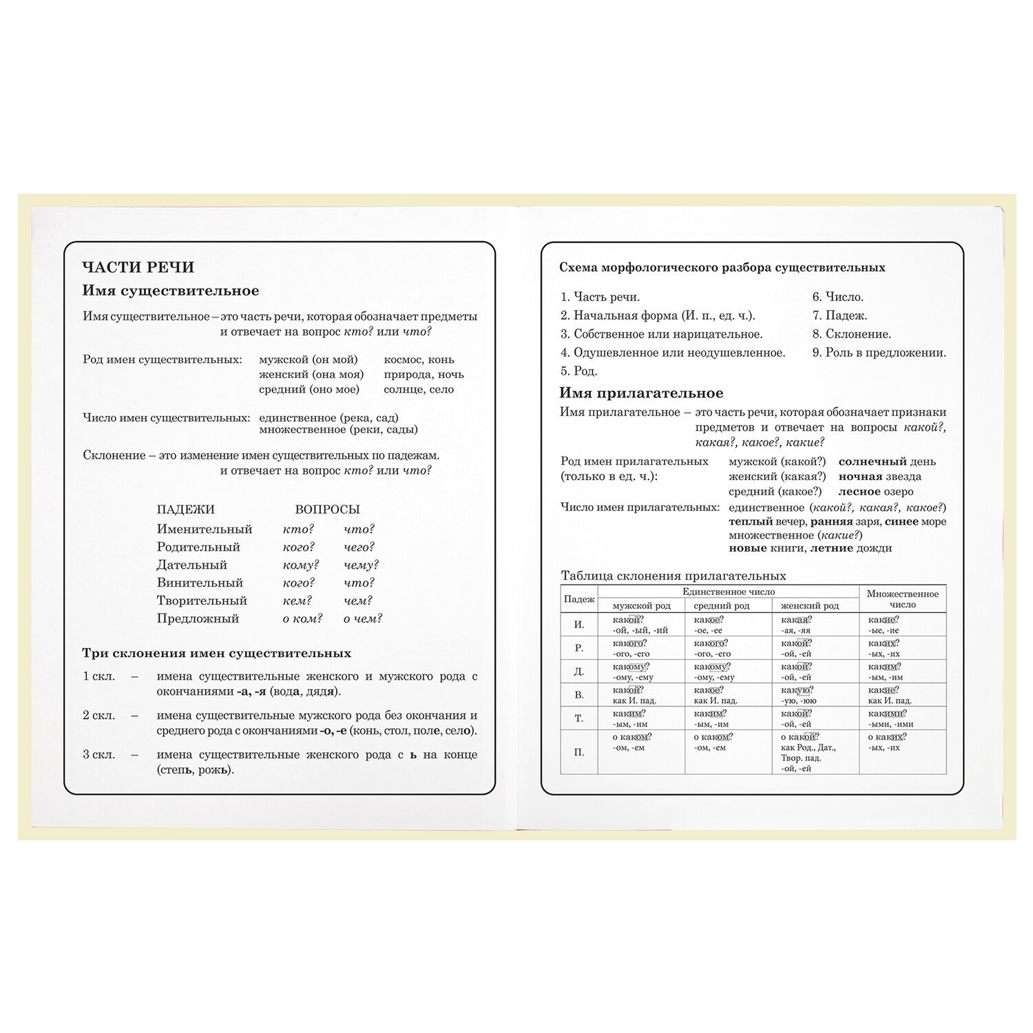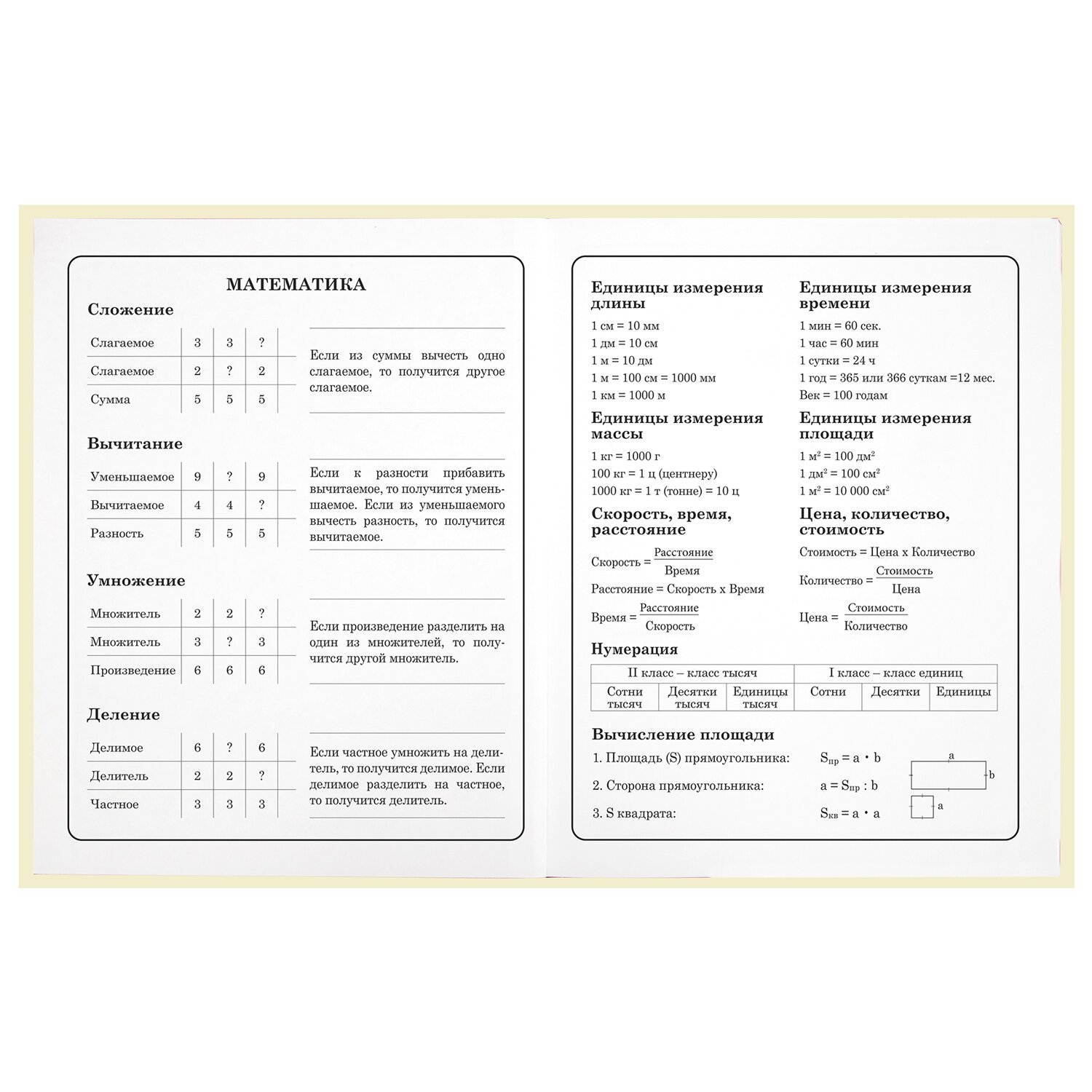 Предназначен для учащихся начальных классов. Твердая обложка надежно защищает бумагу и долго сохраняет привлекательный внешний вид. Спецэффект "матовая ламинация с блестками" придает глубину изображению, не позволяет образовываться бликам на изделии. Внутренний блок содержит 48 листов и состоит из офсетной белой бумаги плотностью 60 г/м2. В справочном материале собраны основные подсказки для учащихся.