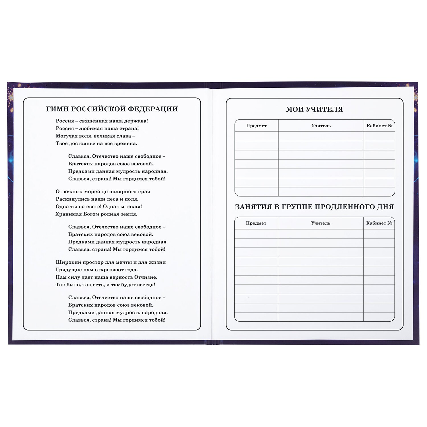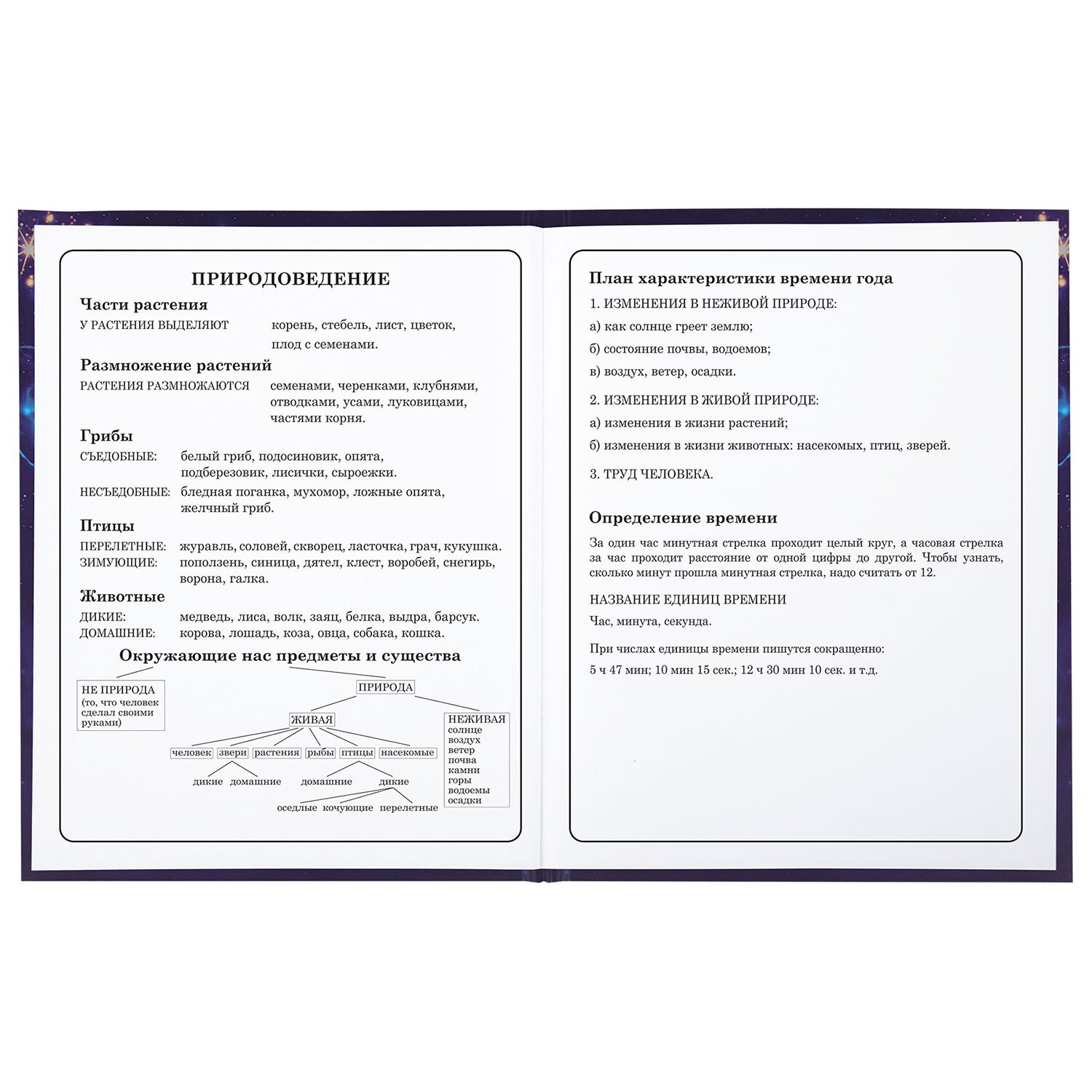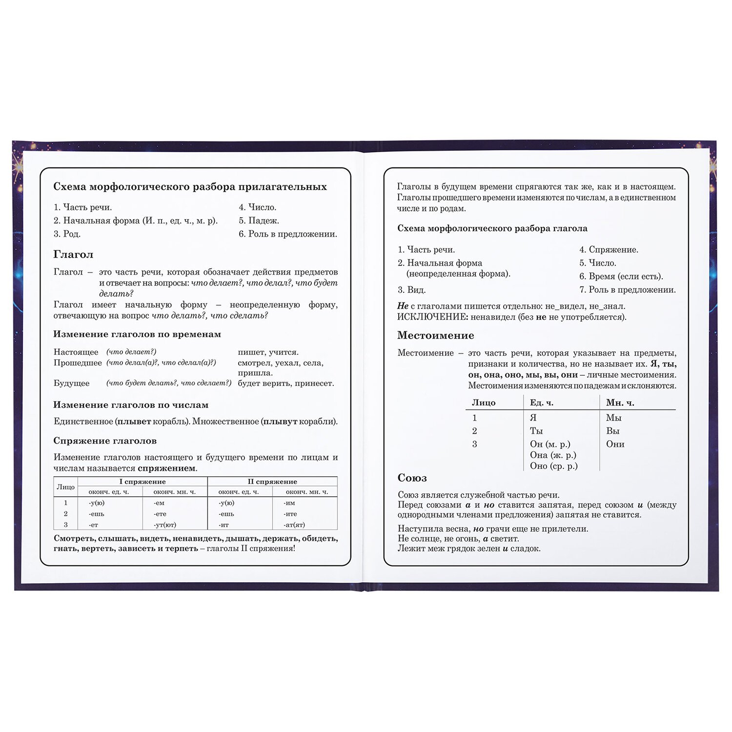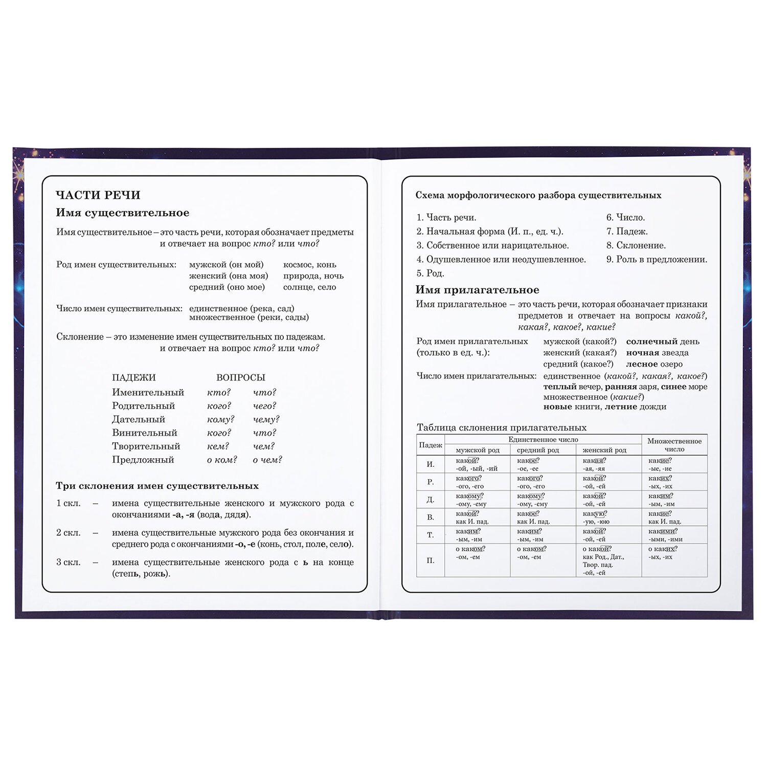 Предназначен для учащихся начальных классов. Твердая обложка надежно защищает бумагу и долго сохраняет привлекательный внешний вид. Спецэффект "матовая ламинация с блестками" придает глубину изображению, не позволяет образовываться бликам на изделии. Внутренний блок содержит 48 листов и состоит из офсетной белой бумаги плотностью 60 г/м2. В справочном материале собраны основные подсказки для учащихся.