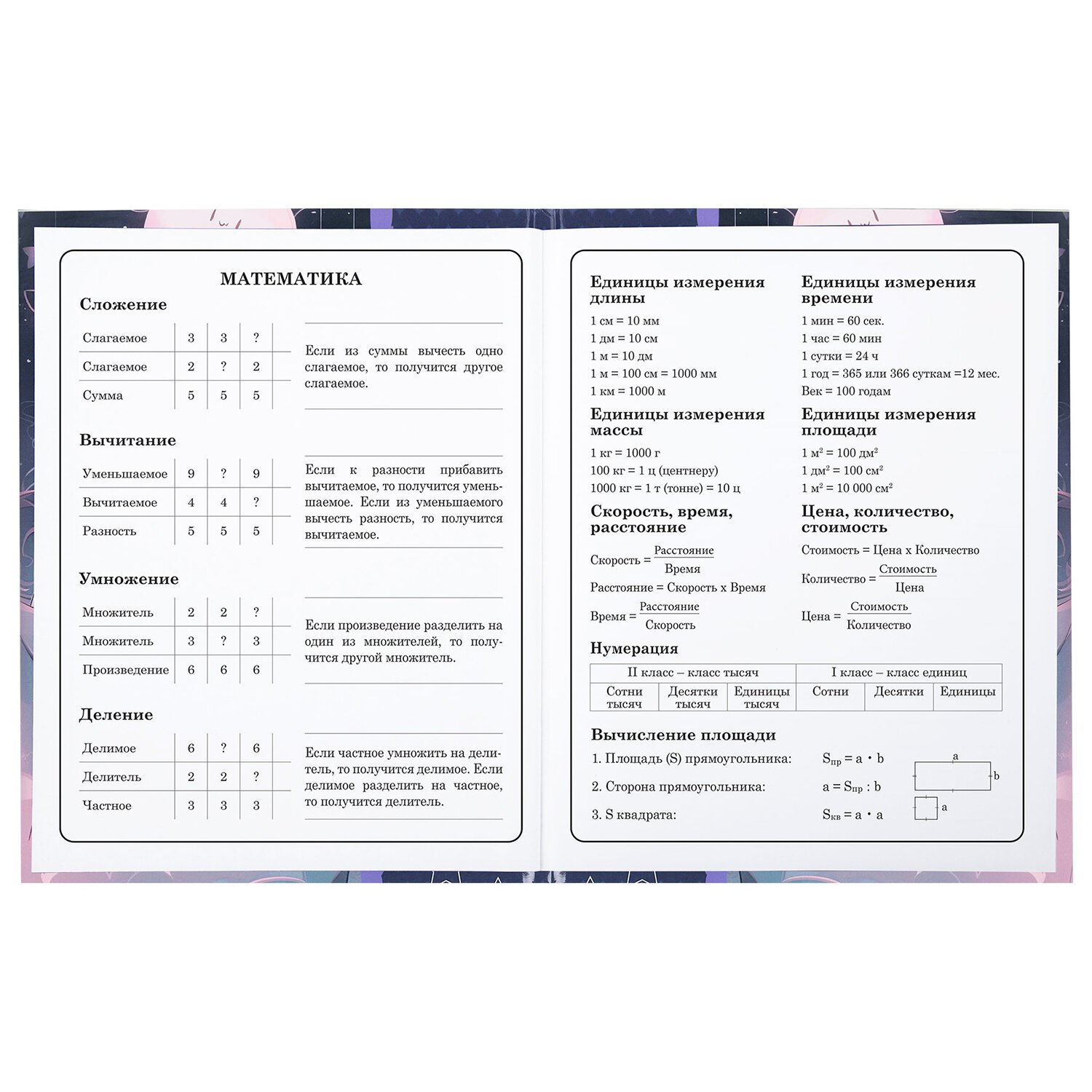 Предназначен для учащихся начальных классов. Твердая обложка надежно защищает бумагу и долго сохраняет привлекательный внешний вид. Изображения с помощью спецэффекта "глянцевая ламинация" становятся более яркими и насыщенными, исключается возможное истирание рисунка. Внутренний блок содержит 48 листов и состоит из офсетной белой бумаги плотностью 60 г/м2. В справочном материале собраны основные подсказки для учащихся.