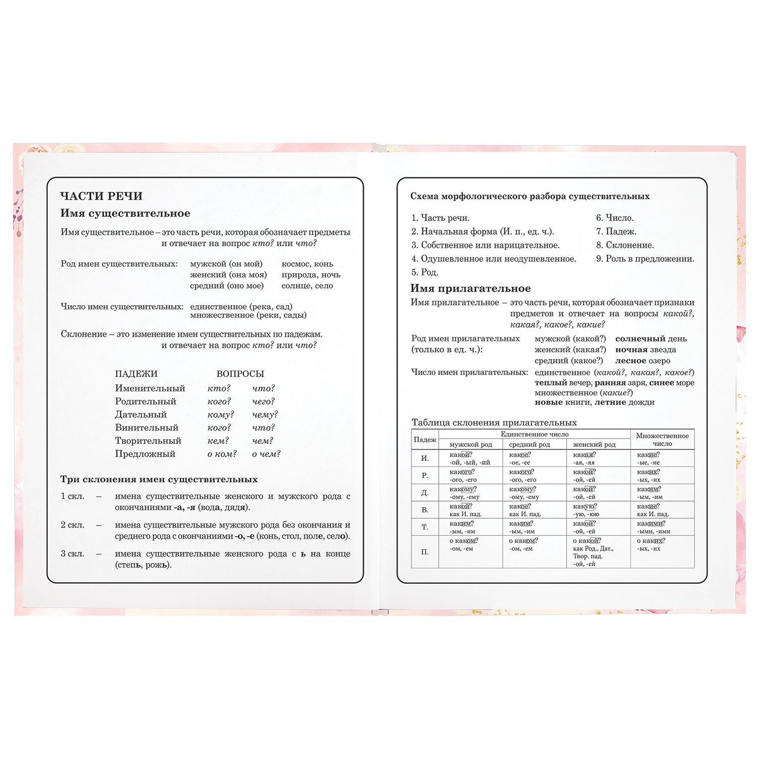 Предназначен для учащихся начальных классов. Твердая обложка надежно защищает бумагу и долго сохраняет привлекательный внешний вид. Изображения с помощью спецэффекта "глянцевая ламинация" становятся более яркими и насыщенными, исключается возможное истирание рисунка. Внутренний блок содержит 48 листов и состоит из офсетной белой бумаги плотностью 60 г/м2. В справочном материале собраны основные подсказки для учащихся.