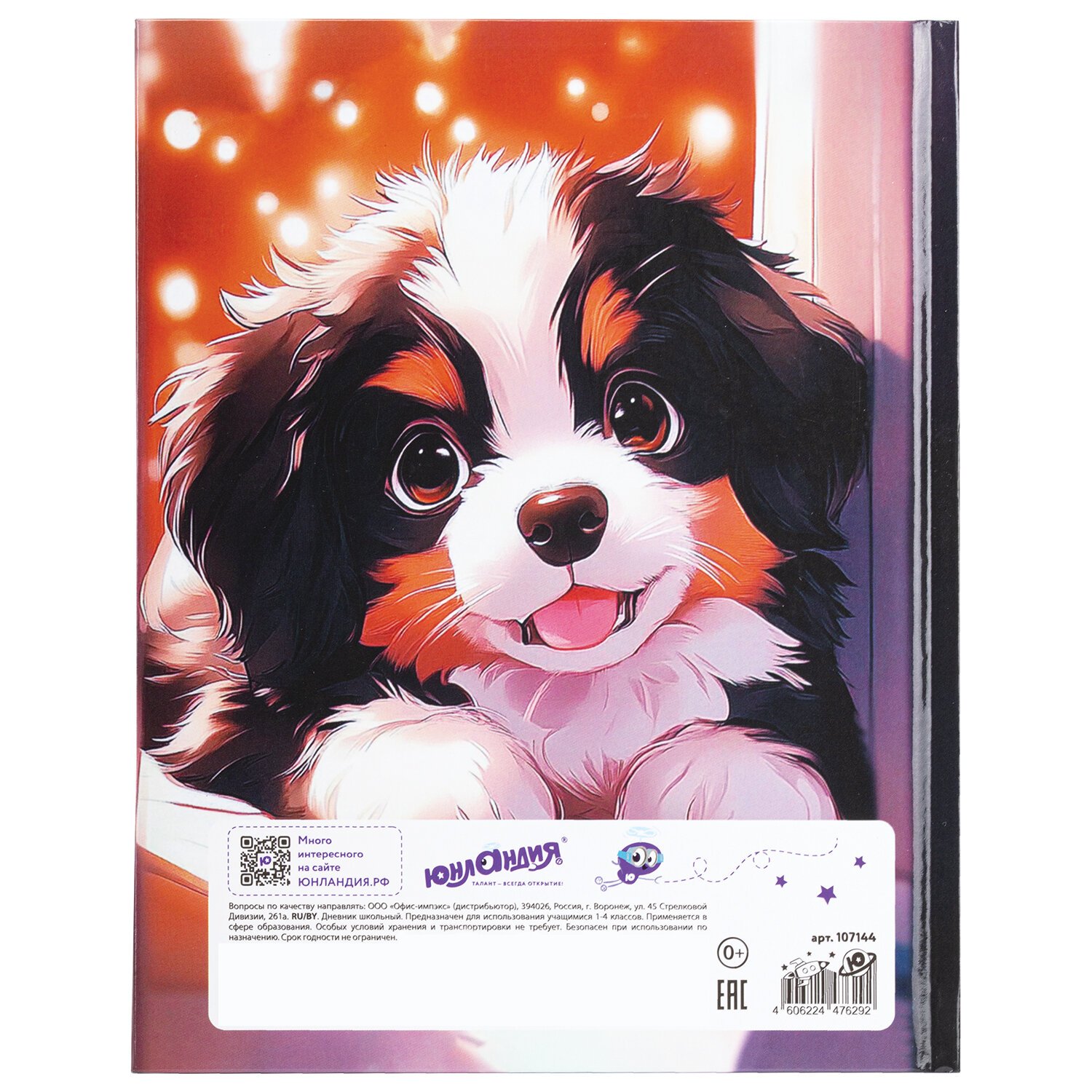 Дневник 1-4 класс 48 л., твердый, ЮНЛАНДИЯ, глянцевая ламинация, с подсказом, "Собачка", 107144