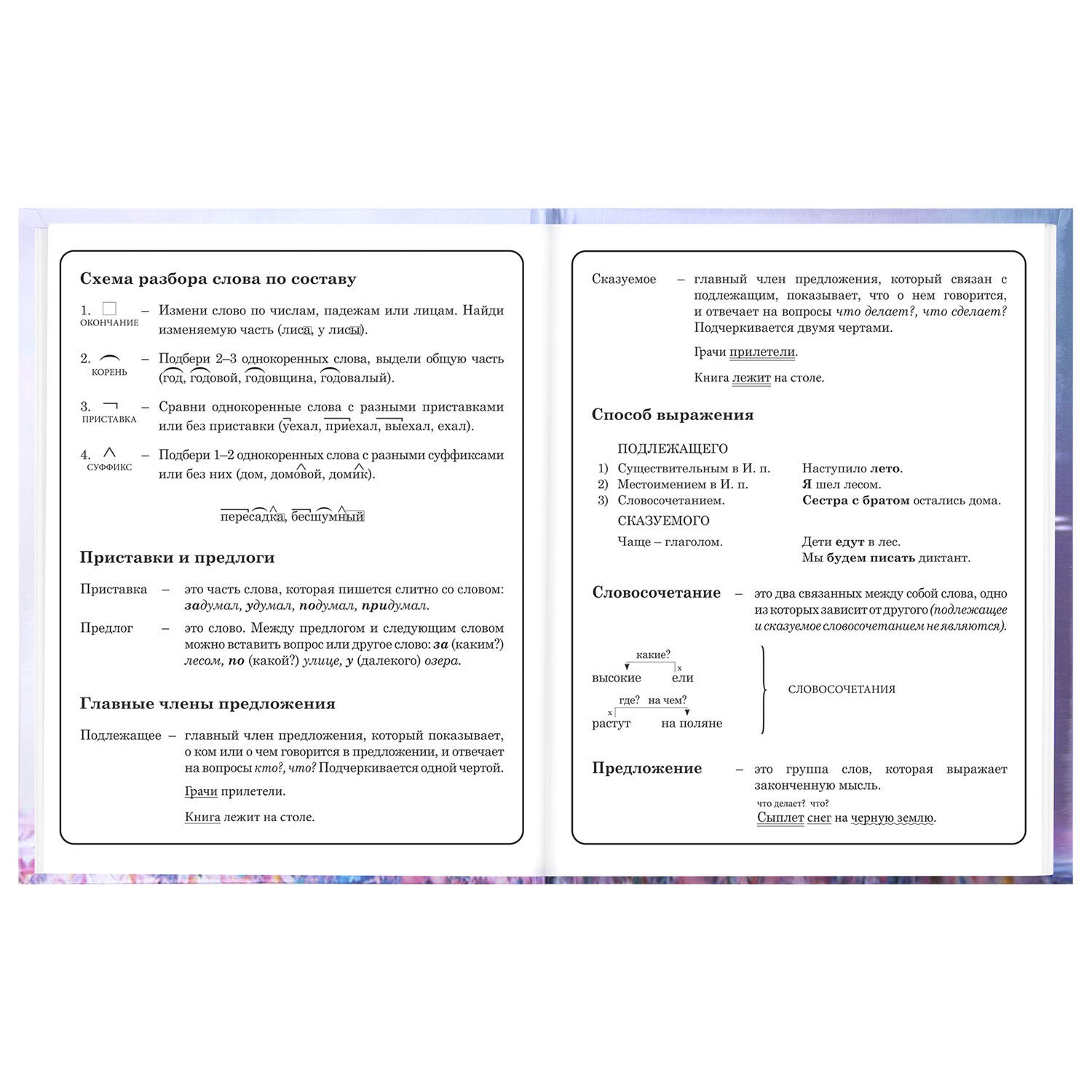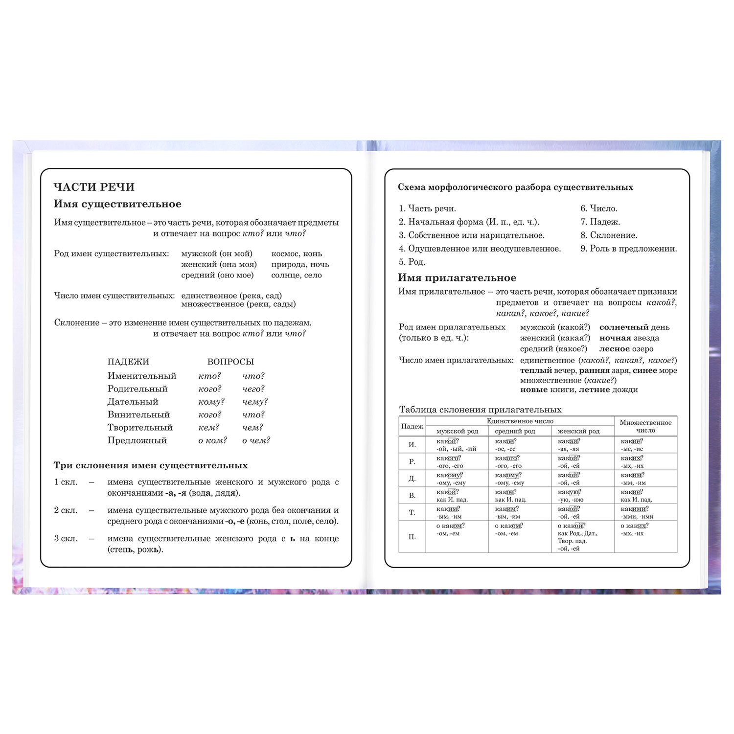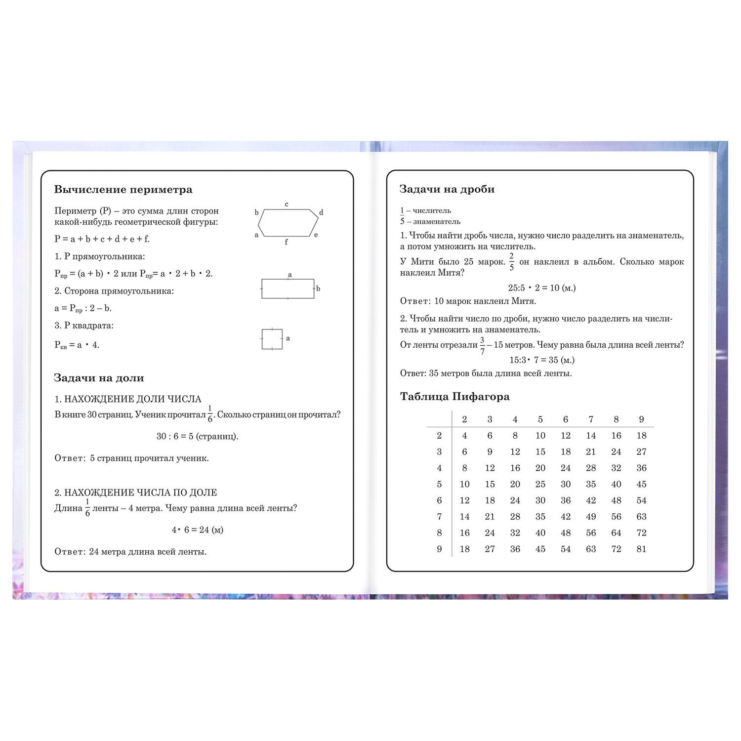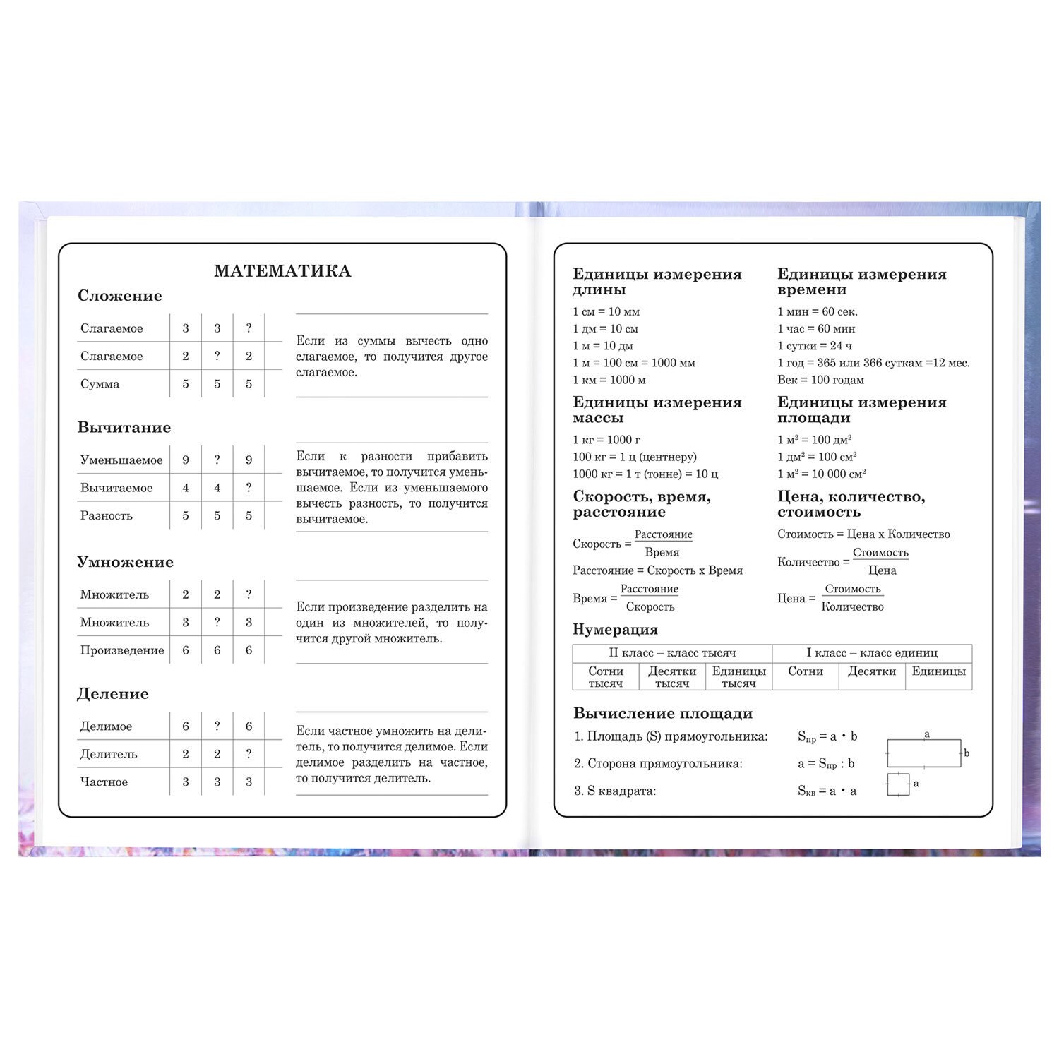 Предназначен для учащихся начальных классов. Твердая обложка надежно защищает бумагу и долго сохраняет привлекательный внешний вид. Изображения с помощью спецэффекта "глянцевая ламинация" становятся более яркими и насыщенными, исключается возможное истирание рисунка. Внутренний блок содержит 48 листов и состоит из офсетной белой бумаги плотностью 60 г/м2. В справочном материале собраны основные подсказки для учащихся.