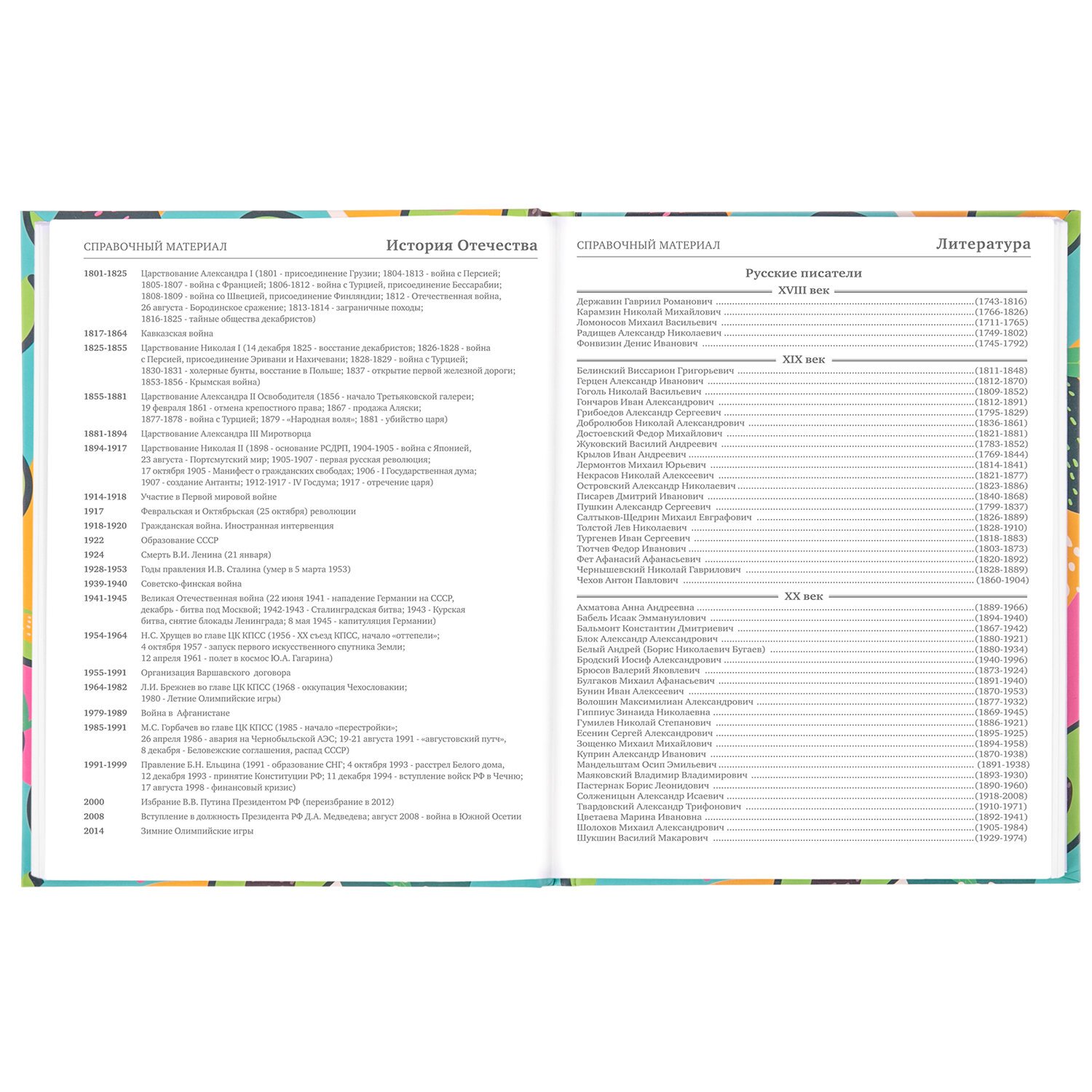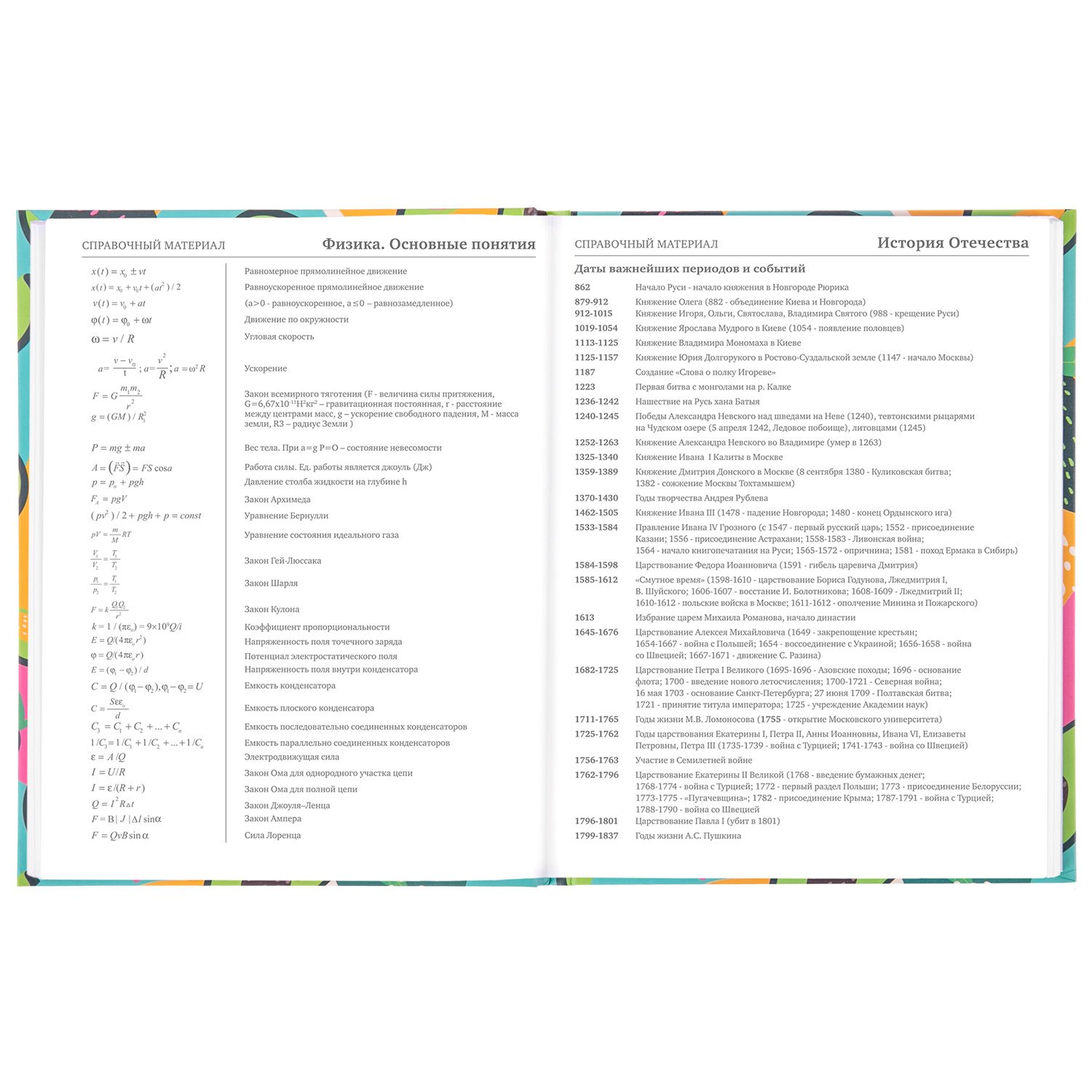 Предназначен для учащихся 5-11 классов. Твердая обложка надежно защищает бумагу и долго сохраняет привлекательный внешний вид, а матовая ламинация с блестками придает ей оригинальность и выразительность. Внутренний блок содержит 48 листов и состоит из офсетной белой бумаги плотностью 60 г/м2. В справочном материале собраны основные подсказки для учащихся.