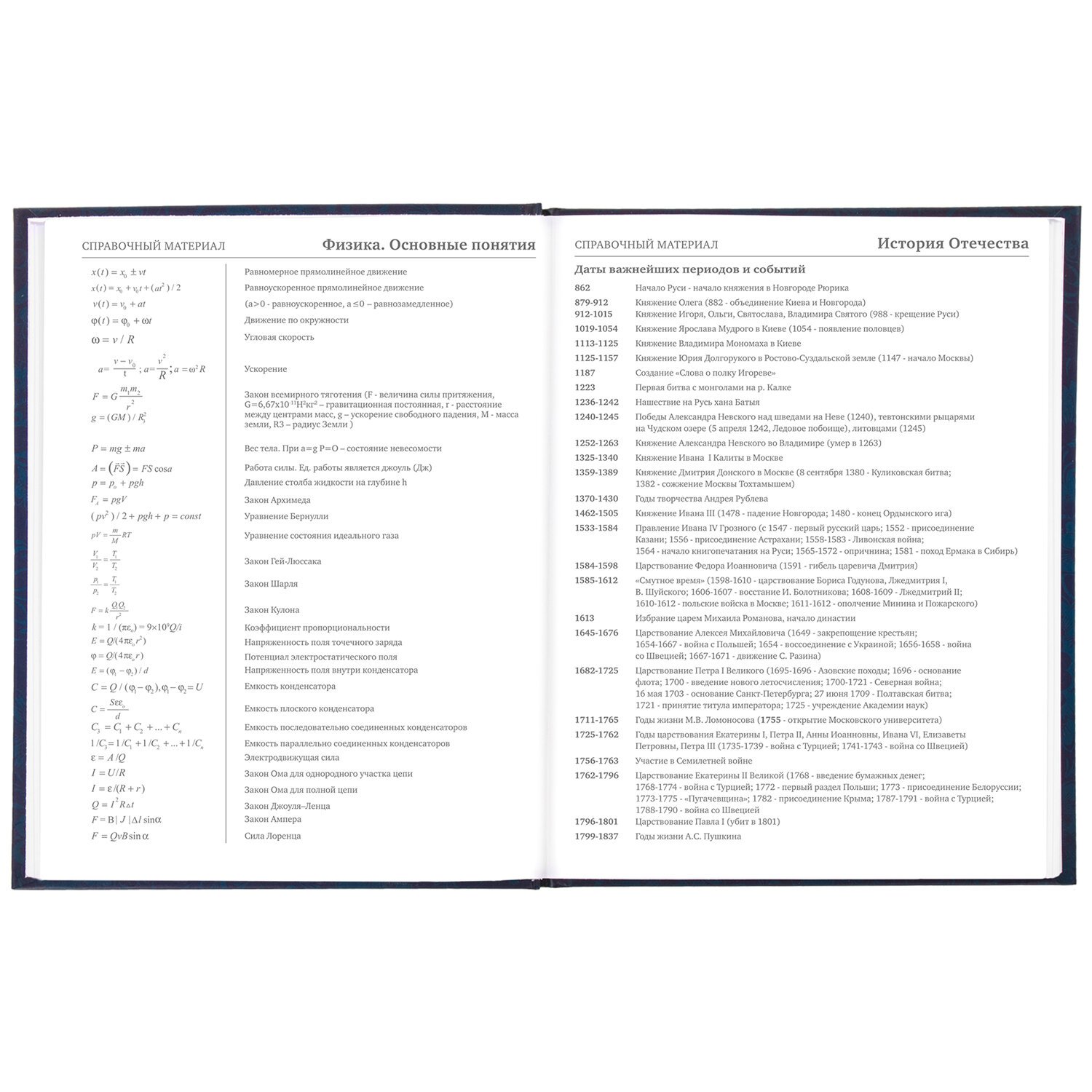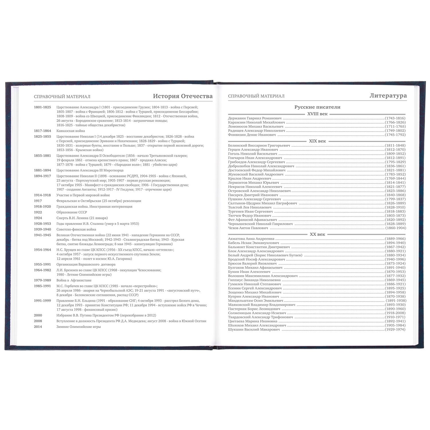 Предназначен для учащихся 5-11 классов. Твердая обложка надежно защищает бумагу и долго сохраняет привлекательный внешний вид, а тиснение фольгой придает ей оригинальность и выразительность. Внутренний блок содержит 48 листов и состоит из офсетной белой бумаги плотностью 60 г/м2. В справочном материале собраны основные подсказки для учащихся.