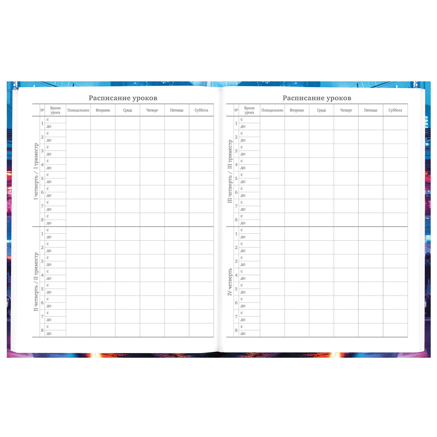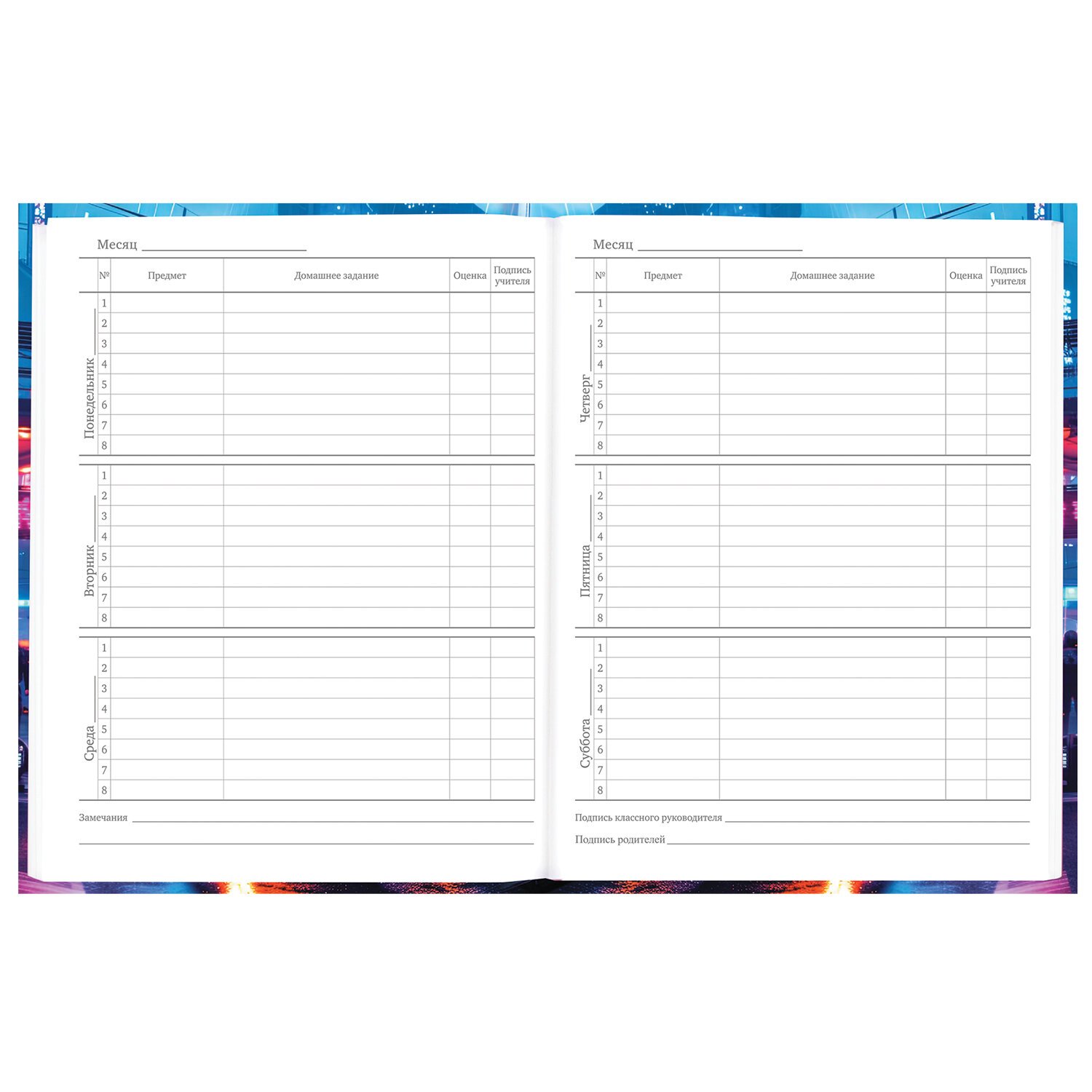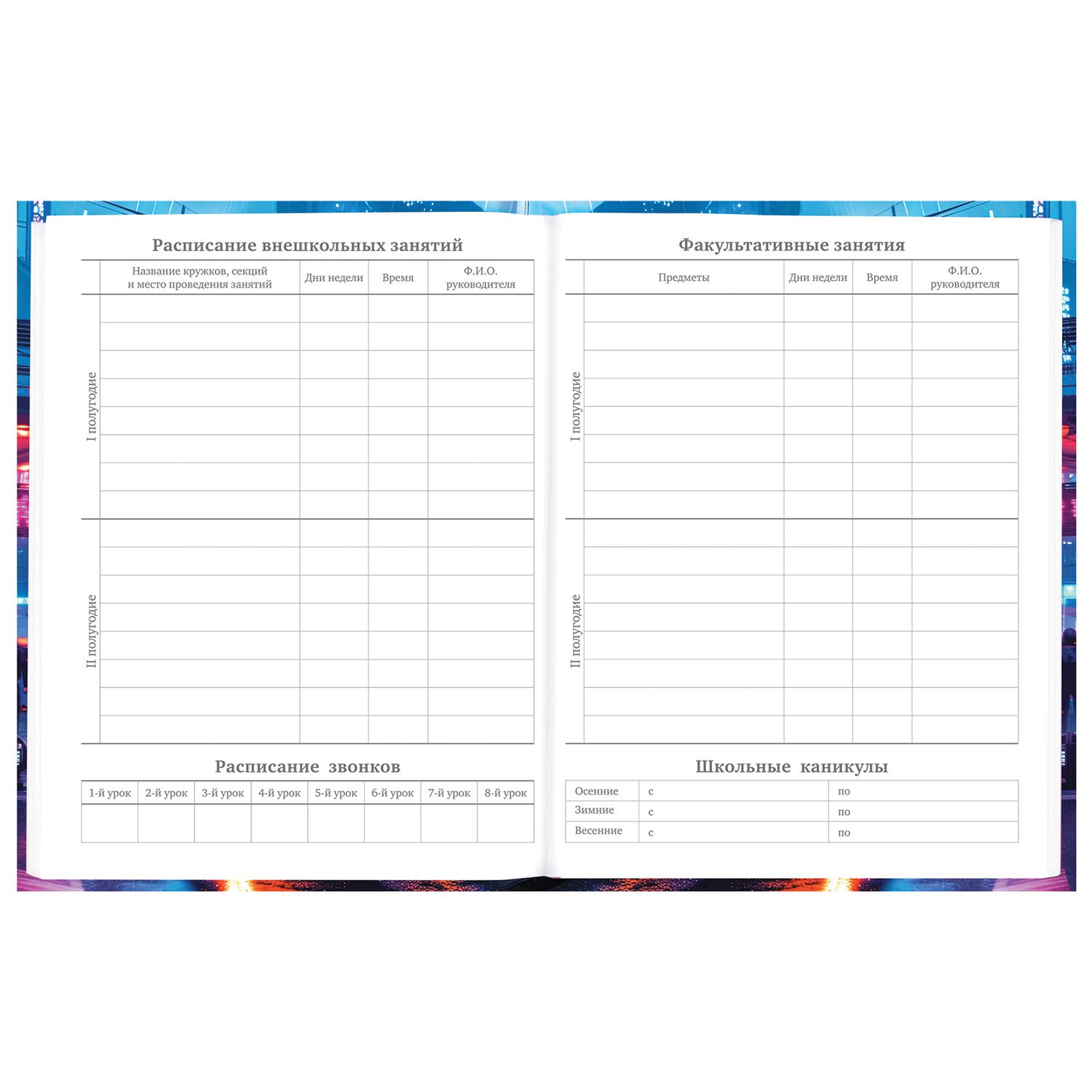 Предназначен для учащихся 5-11 классов. Твердая обложка надежно защищает бумагу и долго сохраняет привлекательный внешний вид. Благодаря глянцевой ламинации краски на изображении становятся более яркими и насыщенными, исключается возможное истирание рисунка. Внутренний блок содержит 48 листов офсетной белой бумаги плотностью 60 г/м2. Дневник снабжен полезным справочным материалом для учащихся.