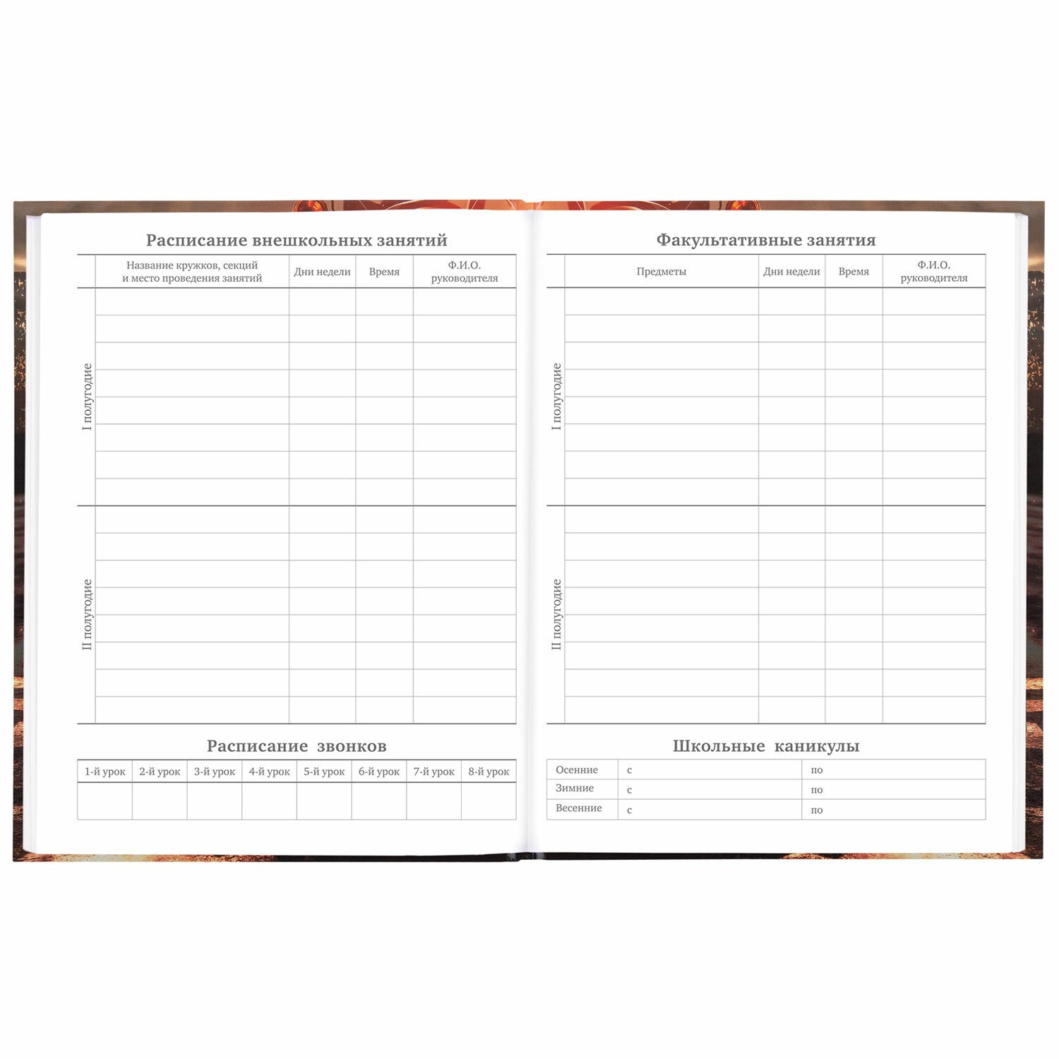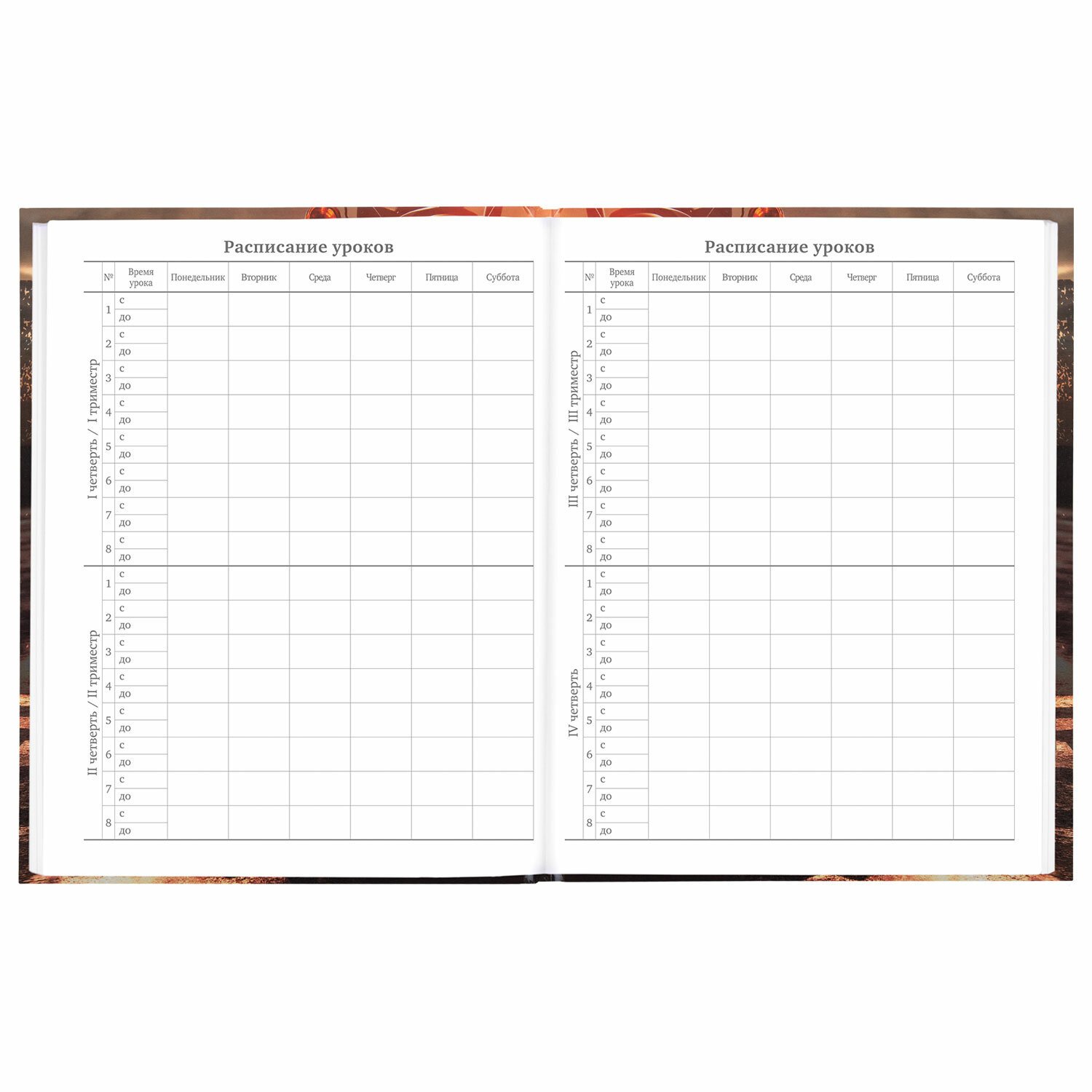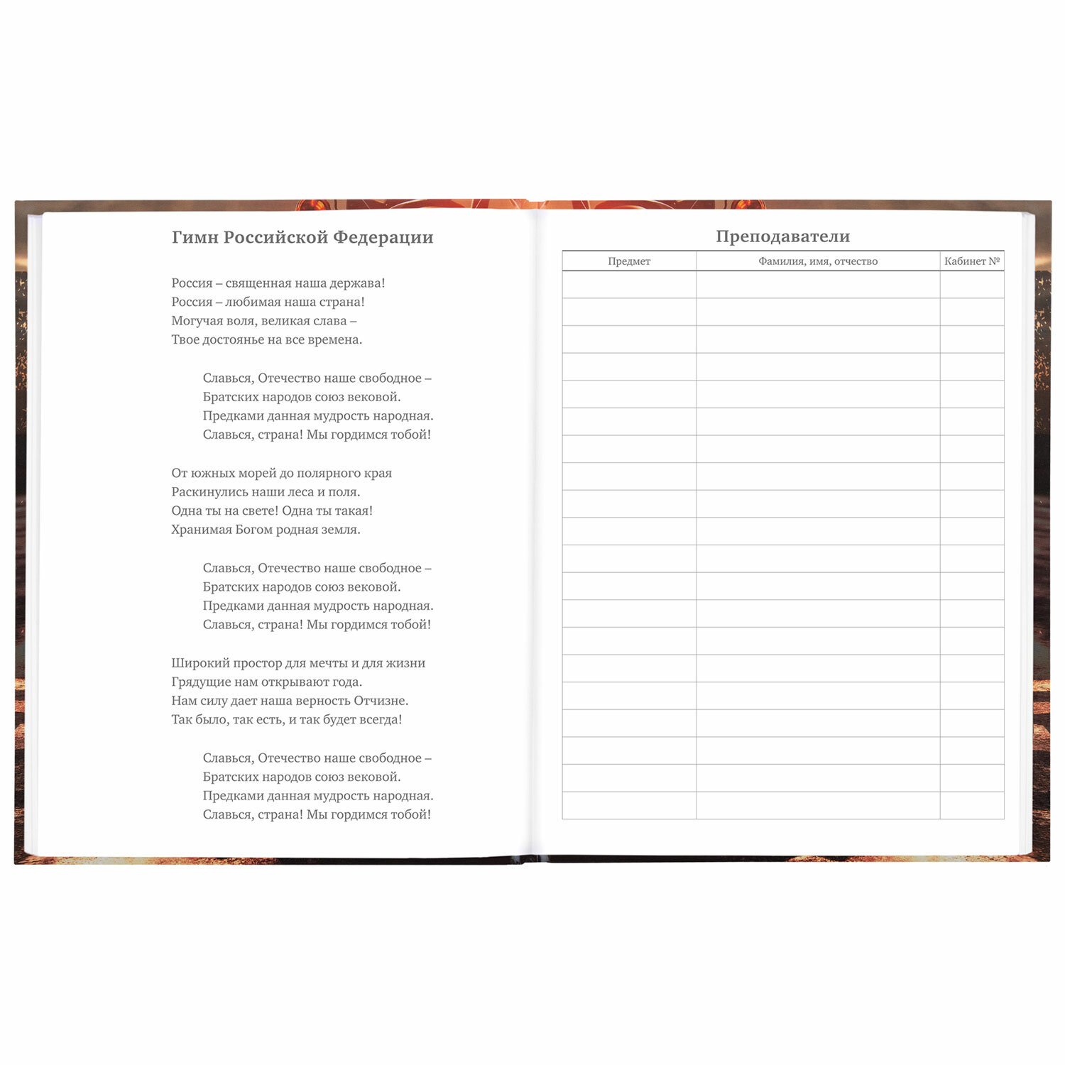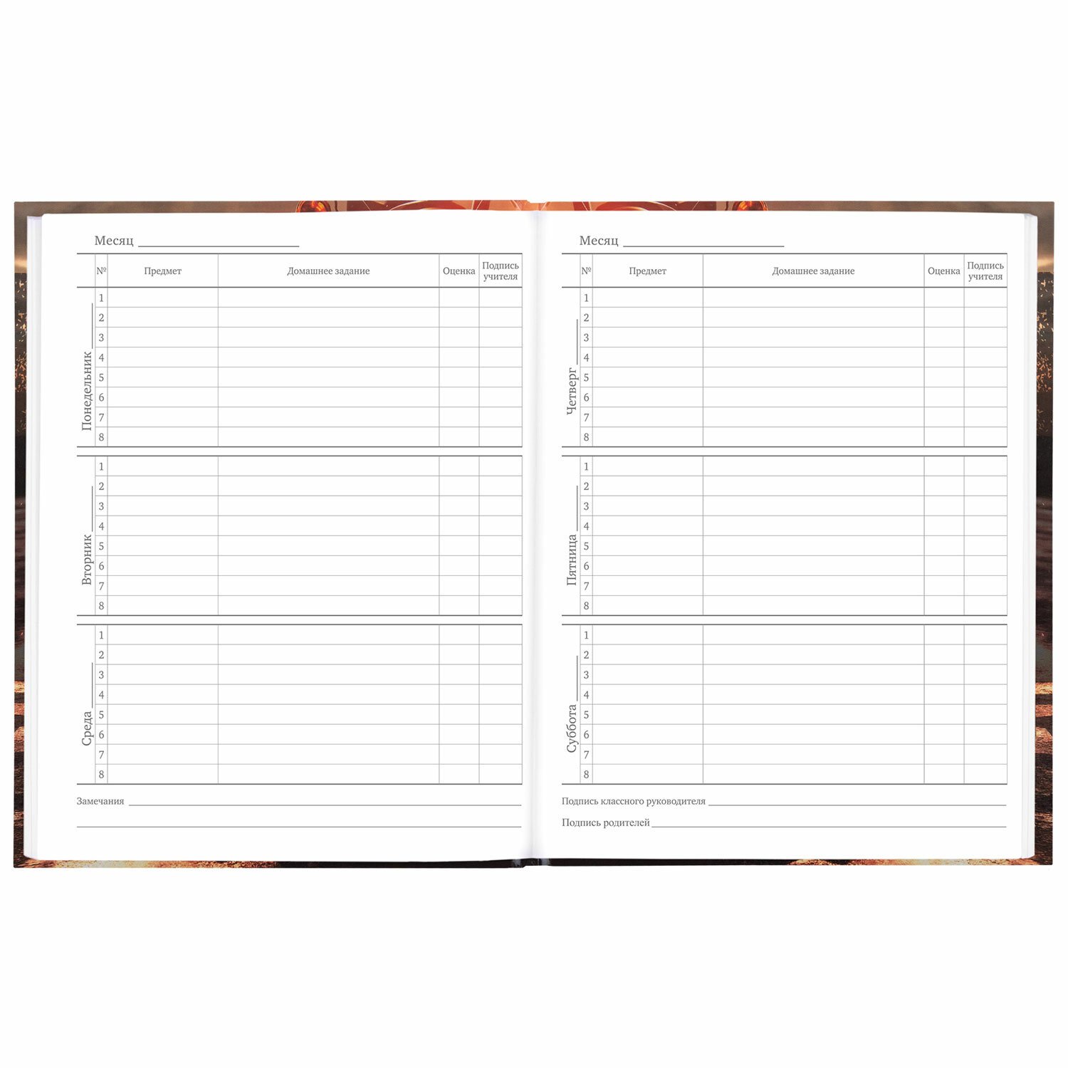Предназначен для учащихся 5-11 классов. Твердая обложка надежно защищает бумагу и долго сохраняет привлекательный внешний вид. Благодаря глянцевой ламинации краски на изображении становятся более яркими и насыщенными, исключается возможное истирание рисунка. Внутренний блок содержит 48 листов офсетной белой бумаги плотностью 60 г/м2. Дневник снабжен полезным справочным материалом для учащихся.