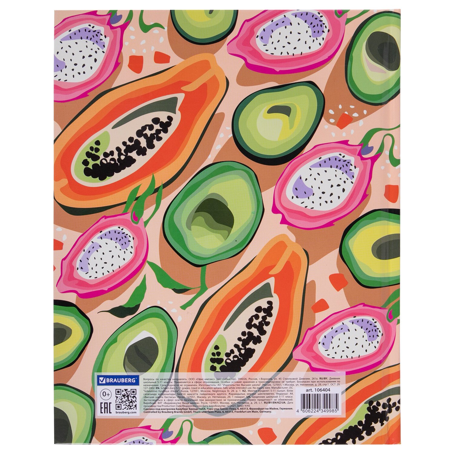 Дневник 5-11 класс 48 л., твердый, BRAUBERG, глянцевая ламинация, с подсказом, "Fruits", 106404