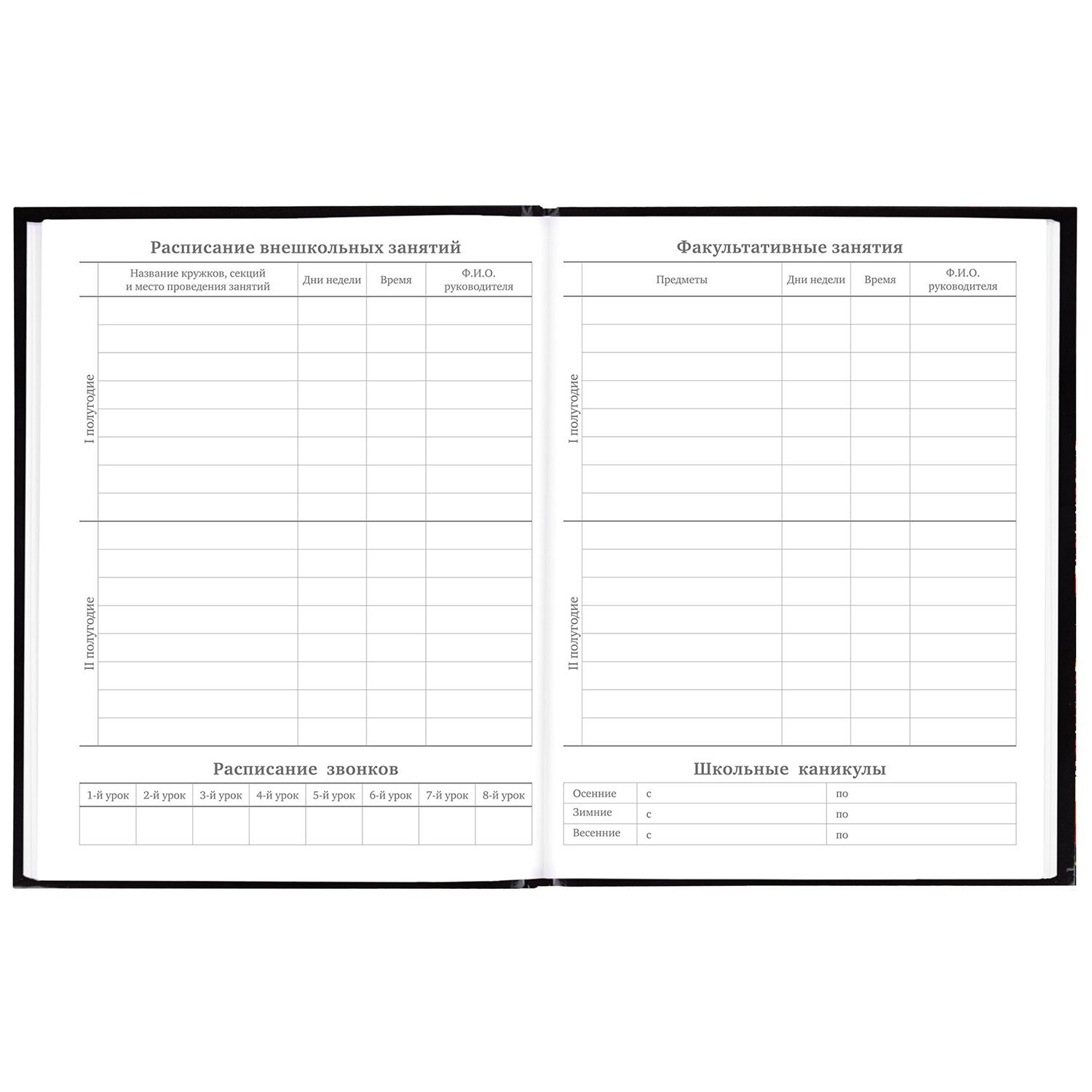 Предназначен для учащихся 5-11 классов. Твердая обложка надежно защищает бумагу и долго сохраняет привлекательный внешний вид. Благодаря глянцевой ламинации краски на изображении становятся более яркими и насыщенными, исключается возможное истирание рисунка. Внутренний блок содержит 48 листов офсетной белой бумаги плотностью 60 г/м2. Дневник снабжен полезным справочным материалом для учащихся.