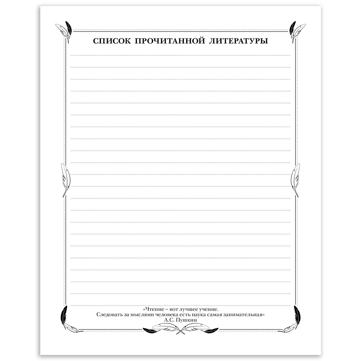 Читательский дневник предназначен для работы с произведениями для внеклассного чтения. Школьник оценивает сюжетную линию, составляет анализ и записывает в дневник выводы от прочитанного. Помимо стандартных полей, имеется поле для рисунка.