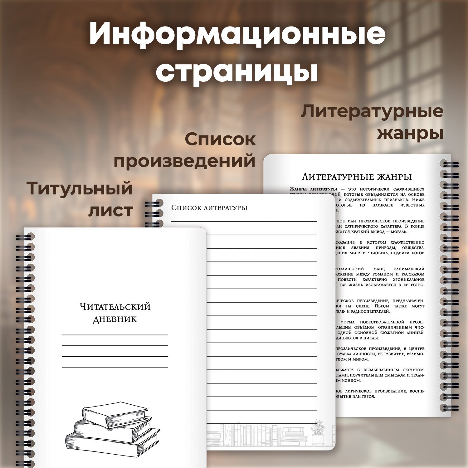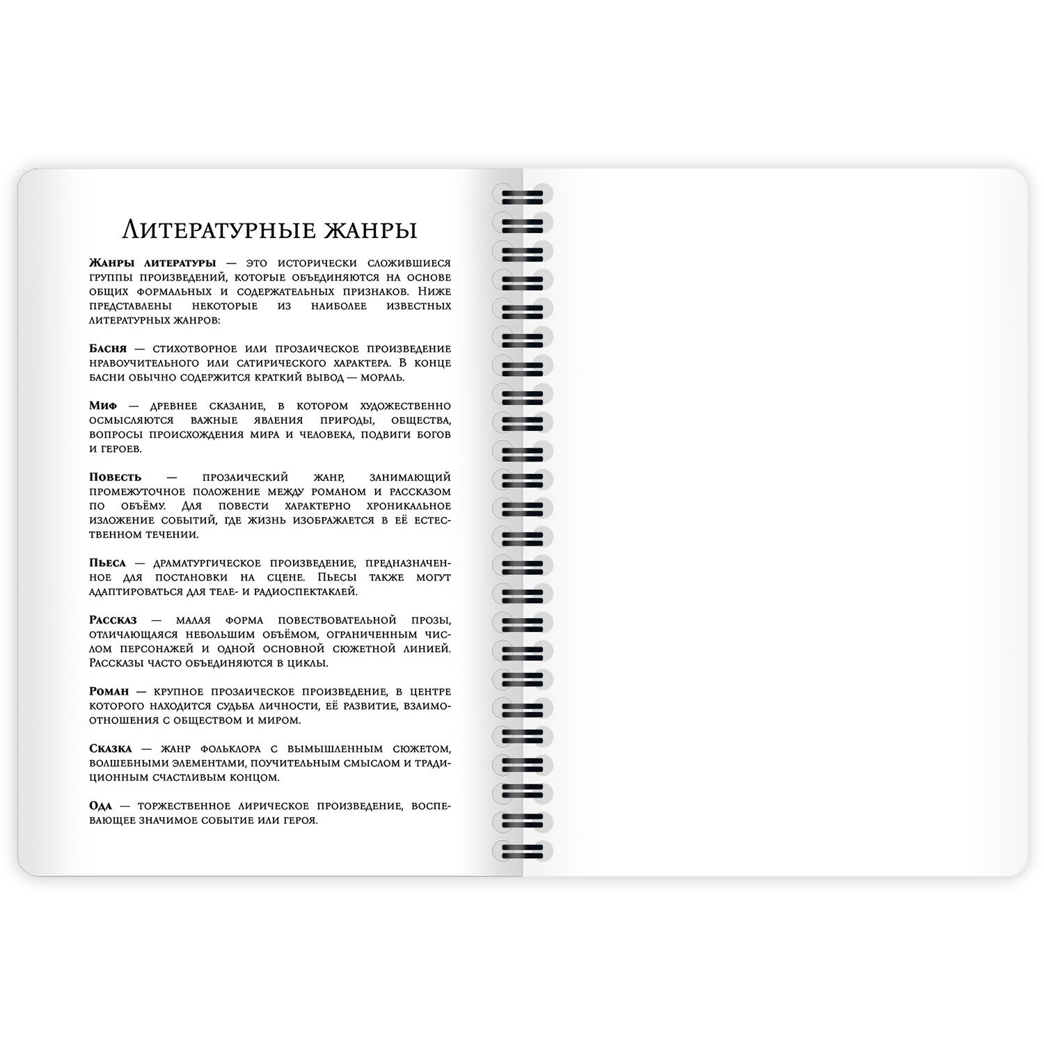 Для дополнительного удобства дневник включает справочный материал по литературным жанрам.