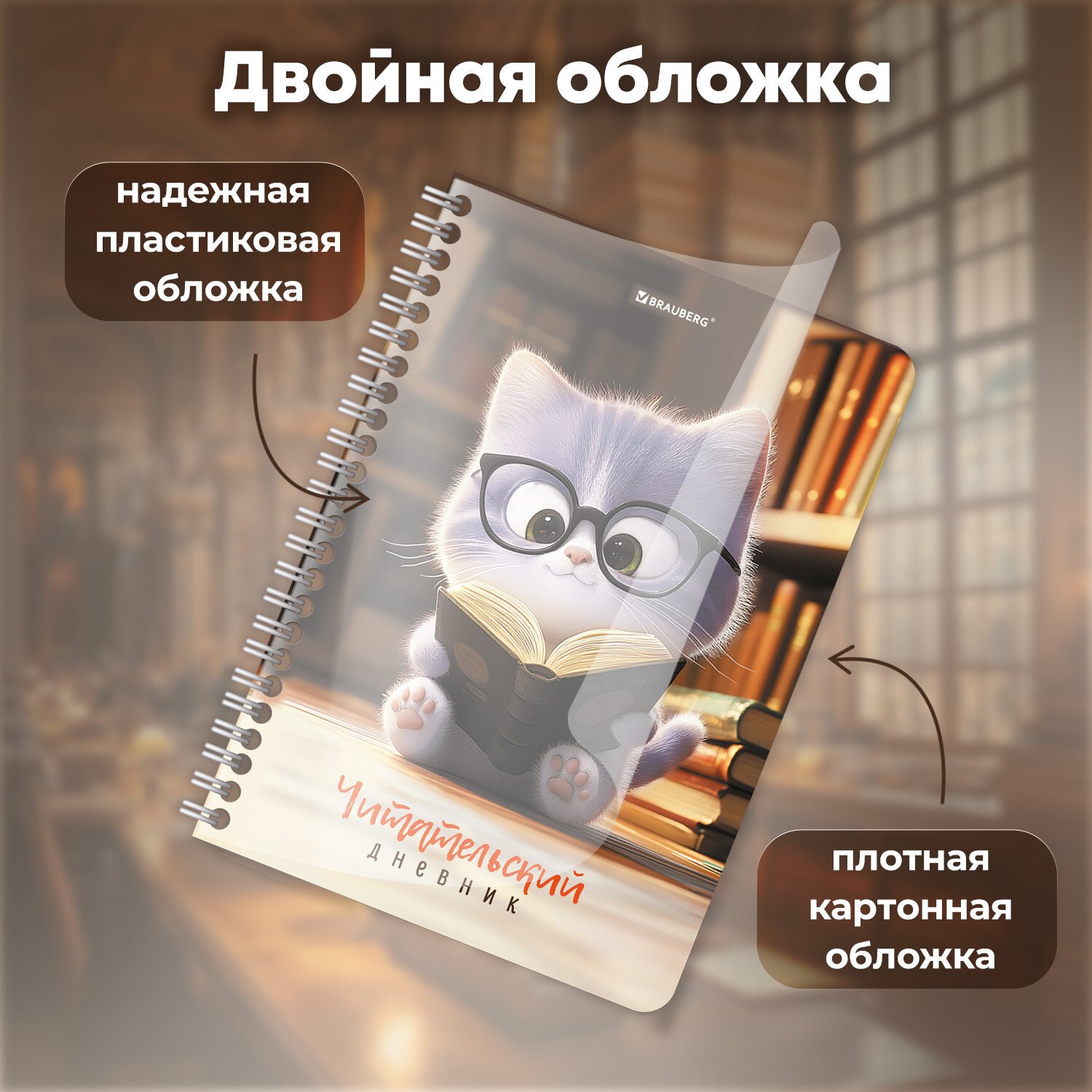 Дневник рассчитан на 55 произведений. Он помогает структурировать информацию и записывать впечатления от прочитанных книг. Идеально подходит для школьников с 1 по 11 класс. Надёжная двойная обложка — внешняя из высококачественного износостойкого прозрачного пластика и внутренняя из плотного картона — защищает страницы от повреждений. Крепление дневника - двойной металлический гребень, надежно скрепляет листы между собой. Внутренний блок содержит 58 листов офсетной белой бумаги повышенной плотности 80 г/м2, идеально подходящей для записей в течение всего учебного года.