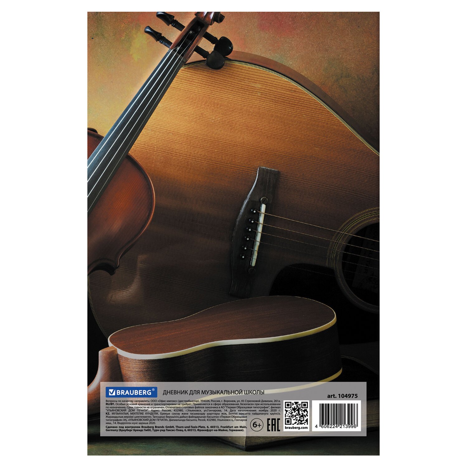 Дневник для музыкальной школы 140х210 мм, 48 л., твердый, BRAUBERG, справочный материал, "Гитара", 104974