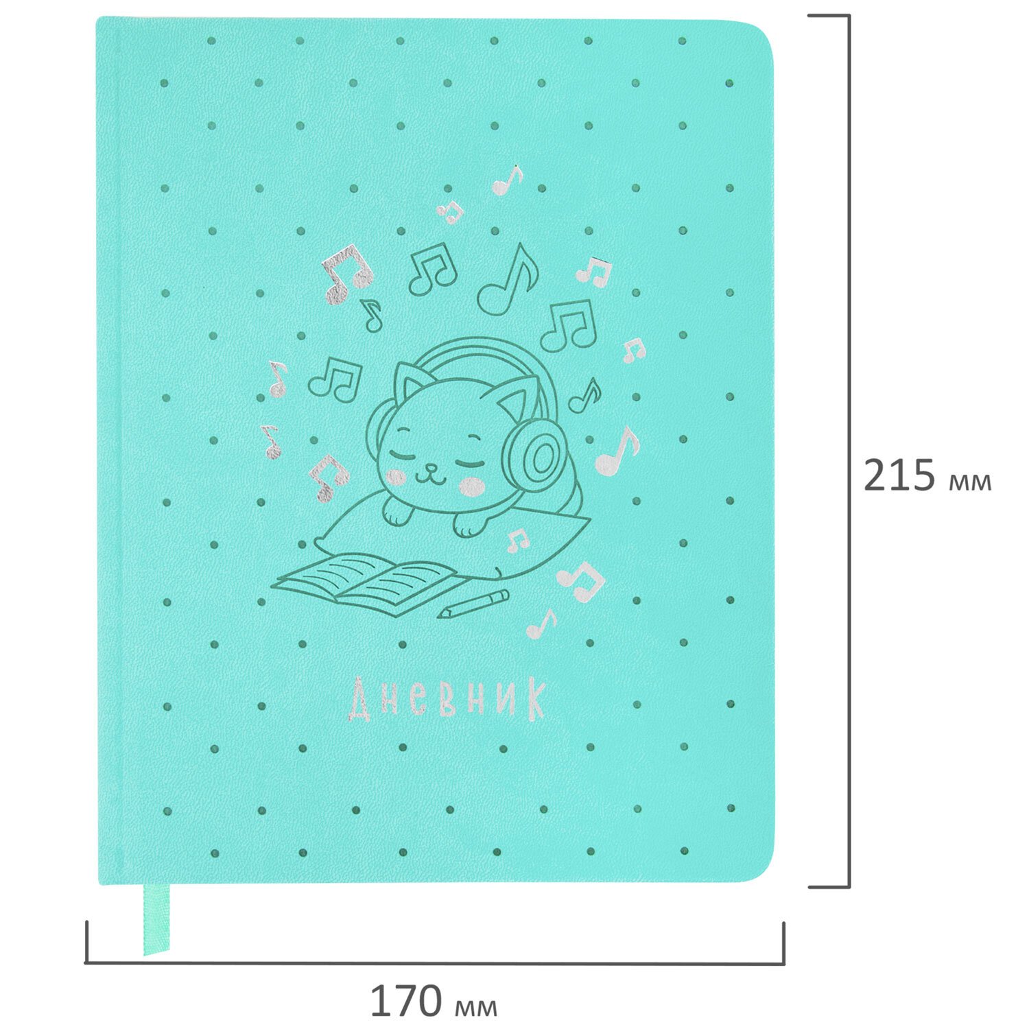 Дневник для музыкальной школы 48л, обложка кожзам твердая, фольга, BRAUBERG, мятный, КОТИК, 107367