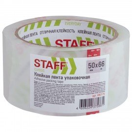 Клейкая лента упаковочная 50 мм x 66 м, прозрачная, толщина 40 микрон, STAFF EVERYDAY, 440082