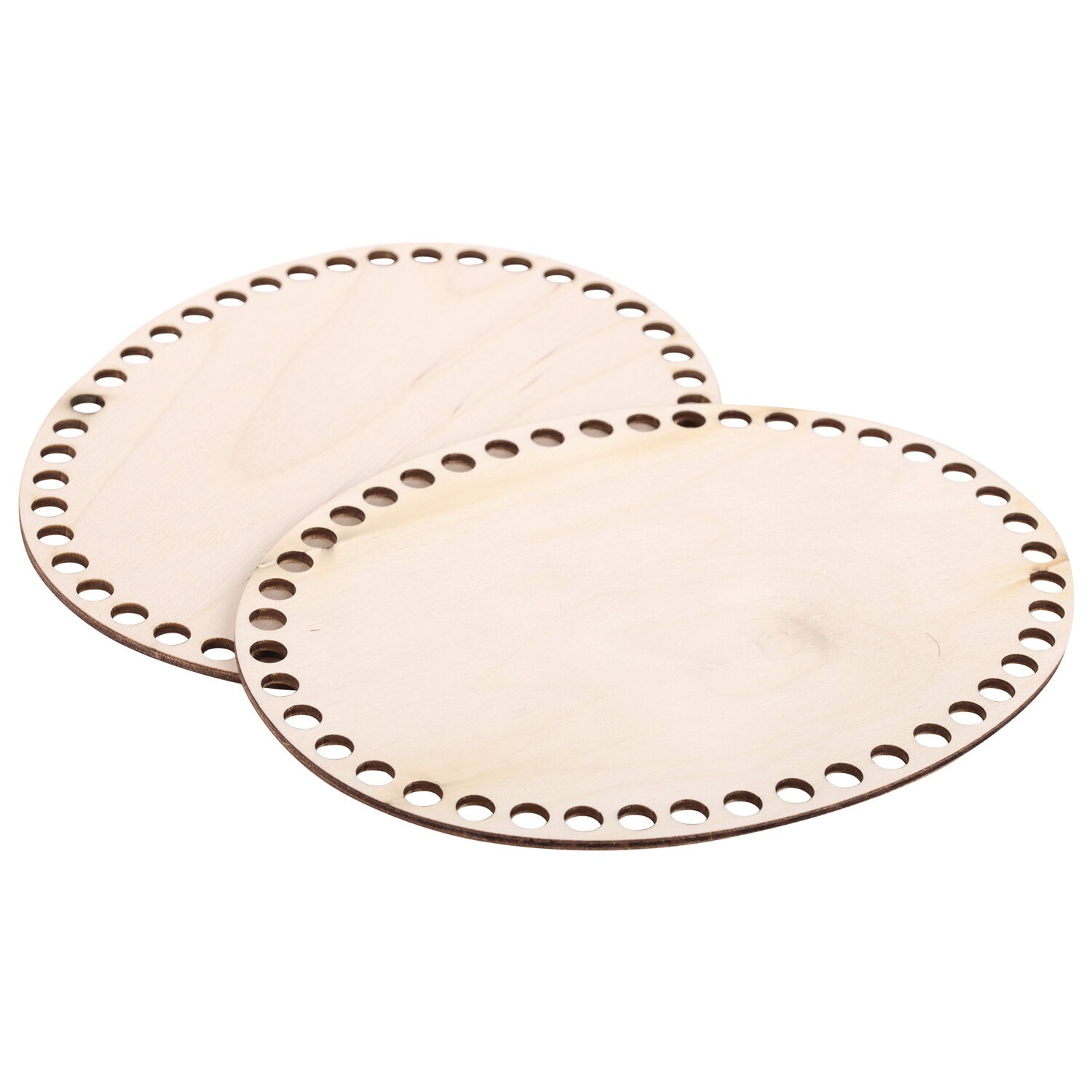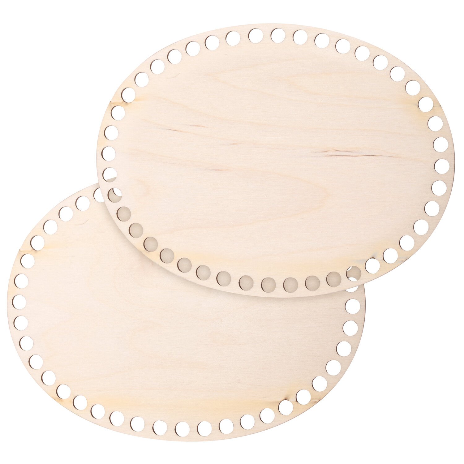 Донышко для вязания представляет собой гладкое и шлифованное с обеих сторон овальное деревянное основание размером 20х15 см и толщиной 3 мм, с 44 отверстиями по периметру, предназначенное для вязания крючком. Диаметр отверстий – 8 мм. В комплекте 2 штуки.