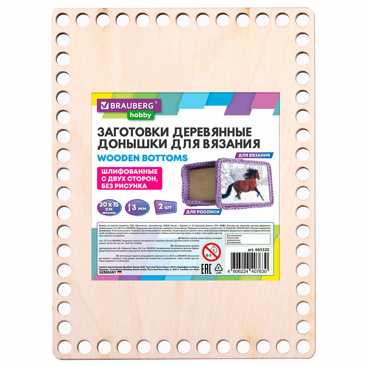 Донышки деревянные для вязания прямоугольные, 2 шт., 20х15 см, BRAUBERG HOBBY, 665320