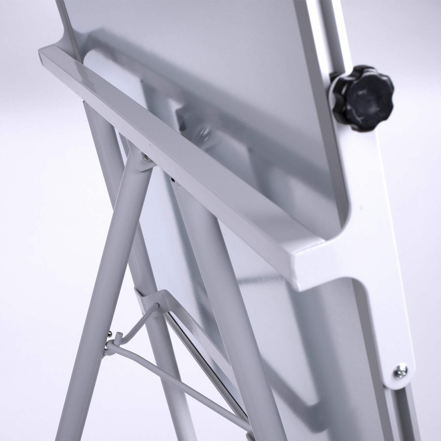 Белое лаковое покрытие предназначено для письма специальными маркерами для белой доски. Металлическая поверхность позволяет размещать объявления при помощи магнитов. Размер доски – 70х100 см. Регулируется по высоте от 110 см до 185 см. Устанавливается на треноге. В комплект входит лоток для аксессуаров. Блокнот крепится при помощи двух пластиковых подвижных крючков. Перед началом работы необходимо удалить защитную пленку с рабочей поверхности доски-флипчарта.