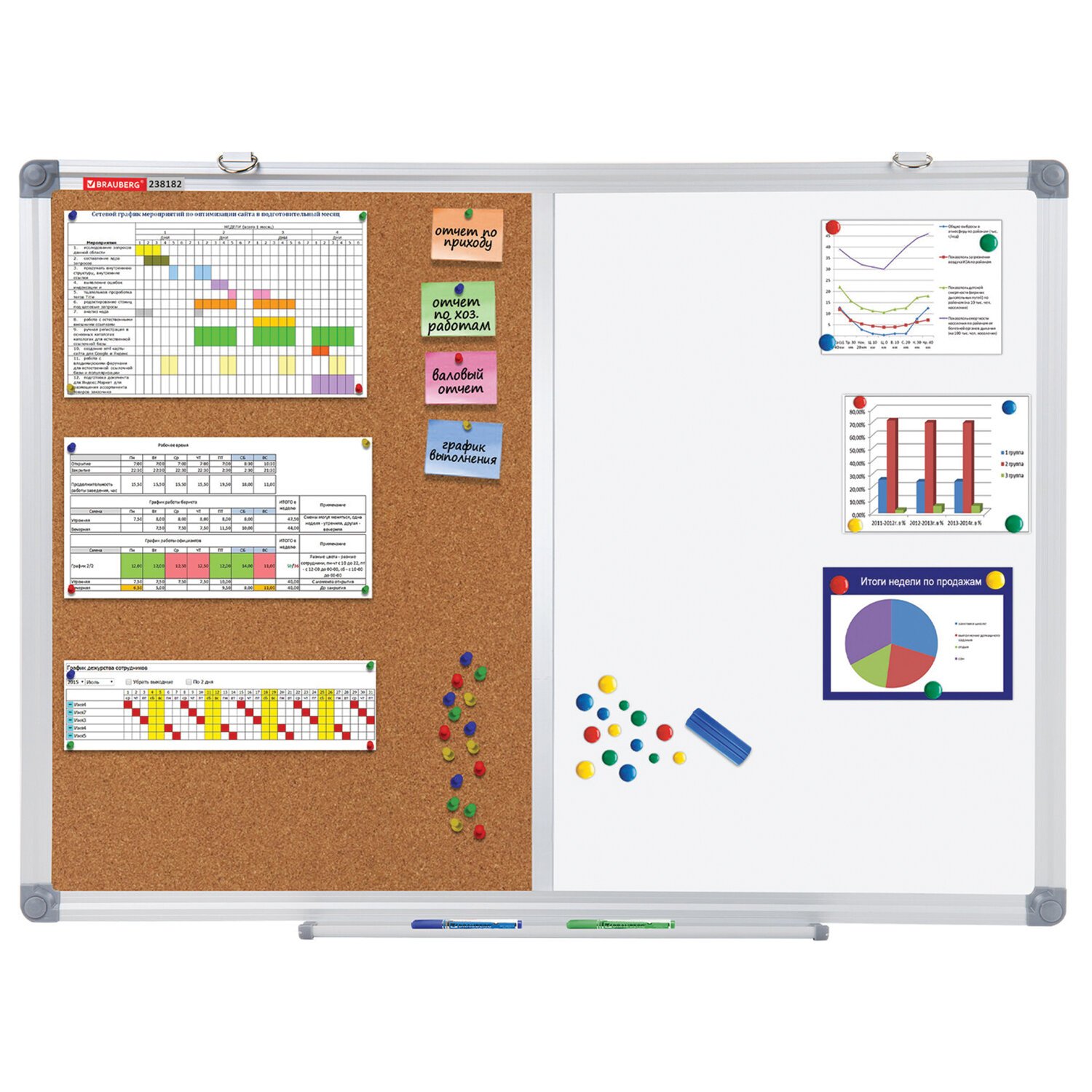 Доска комбинированная: магнитно-маркерная, пробковая для объявлений 90х120 см, BRAUBERG Extra, 238184