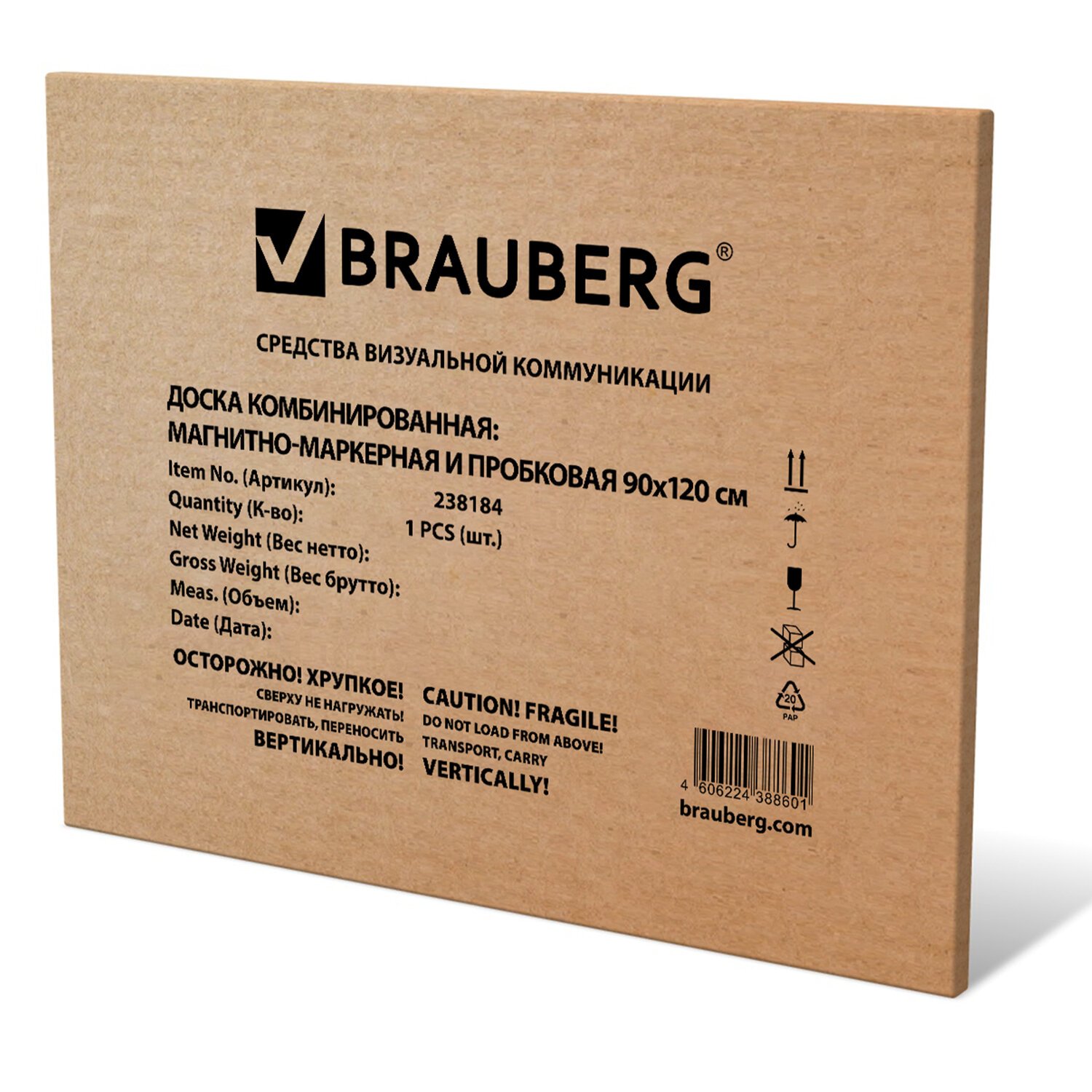 Доска комбинированная: магнитно-маркерная, пробковая для объявлений 90х120 см, BRAUBERG Extra, 238184
