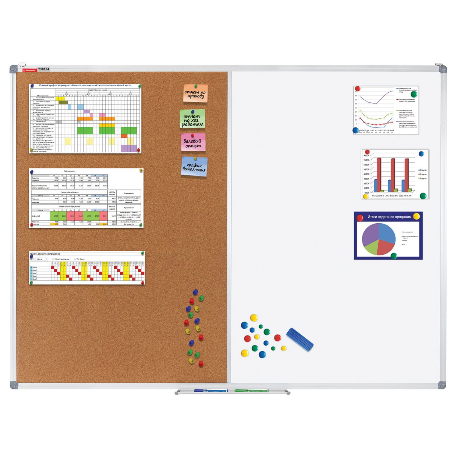 Доска комбинированная: магнитно-маркерная, пробковая для объявлений, 90х120 см, РОССИЯ, BRAUBERG, 236865
