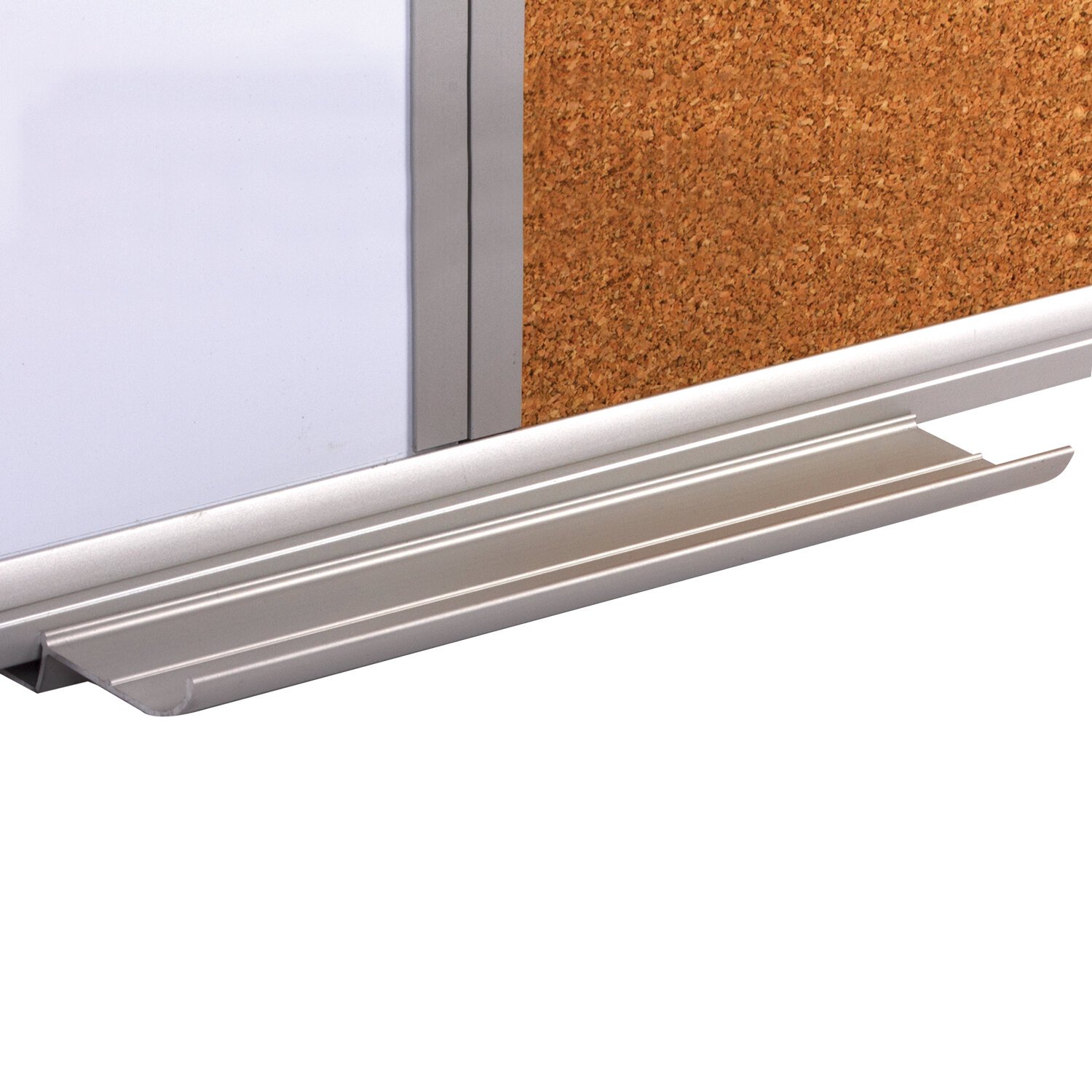 Сухостираемо-магнитная лакированная поверхность, соединенная с помощью алюминиевого профиля с пробковой поверхностью. Имеет улучшенную алюминиевую рамку и укрепленные уголки. Размер доски - 90х120 см. Предусмотрен горизонтальный монтаж. Крепится к стене, элементы крепления и полка для принадлежностей входят в комплект. Гарантия 10 лет. На магнитной поверхности доски можно размещать информацию с помощью магнитов, также она подходит для письма маркером. На пробковой поверхности информационной доски можно прикрепить различные бумажные материалы, такие, как заметки, визитные карточки и т.п. Отверстия в пробке "закрываются" сразу же после извлечения кнопки. Таким образом, доска прослужит на протяжении долгих лет, несмотря на частое использование.