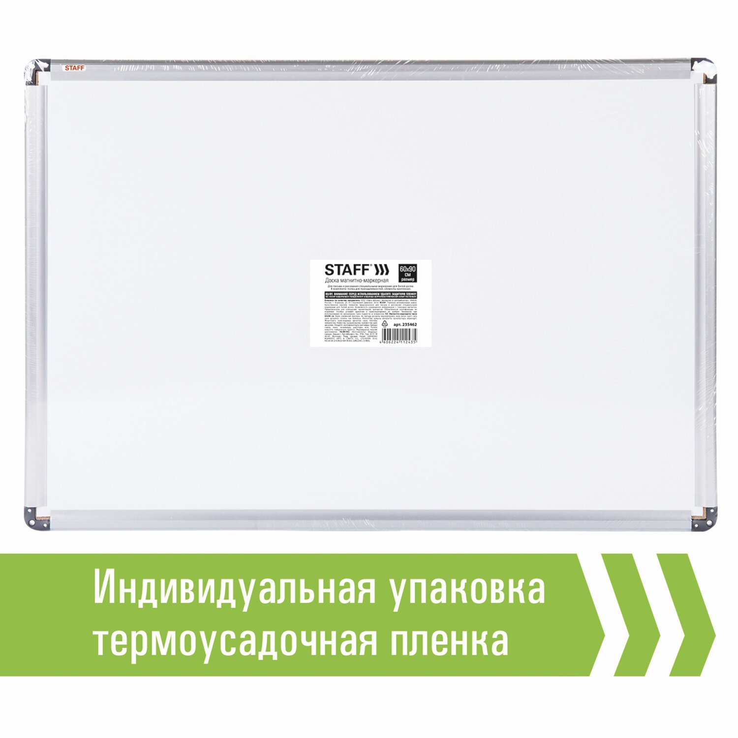Доска магнитно-маркерная 60х90 см, алюминиевая рамка, ГАРАНТИЯ 10 ЛЕТ, STAFF, 235462